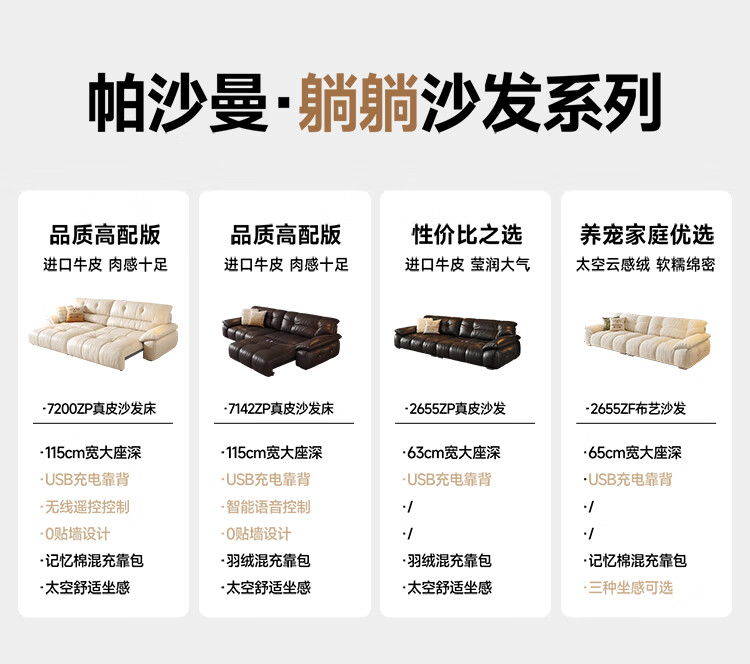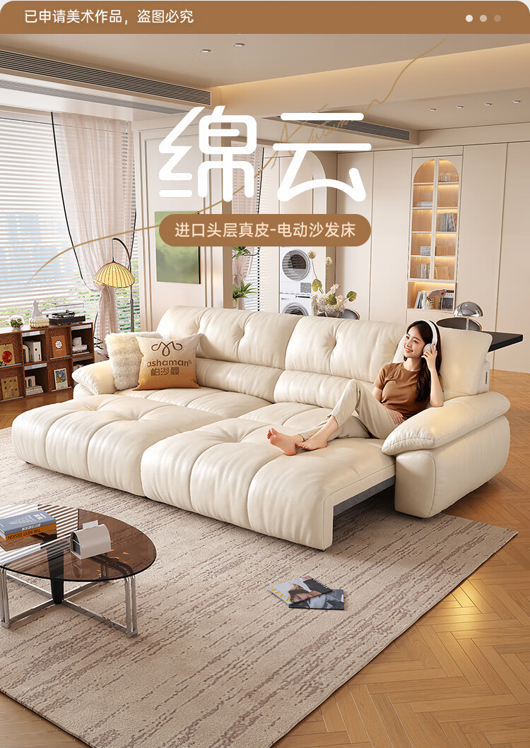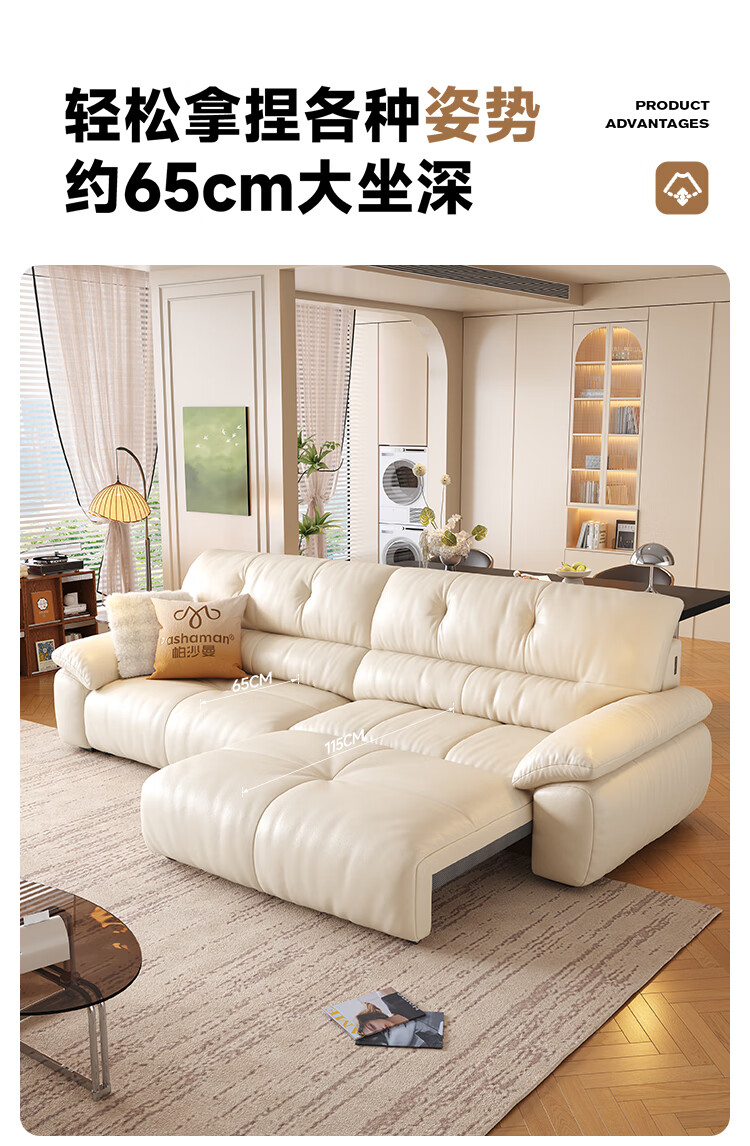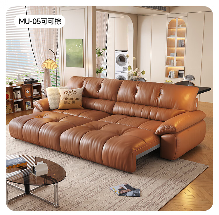 帕沙曼法式复古真皮电动沙发头层牛皮客厅小户型帆船伸缩直排沙发7200ZP 坐感王【三电动】3.06米多人位 【舒享版】MU真皮(轻弹棉+竹炭海绵)
