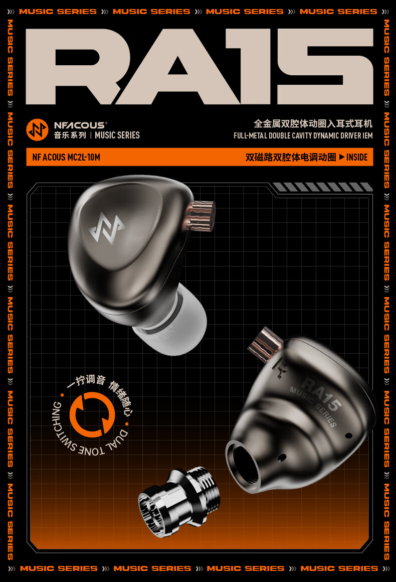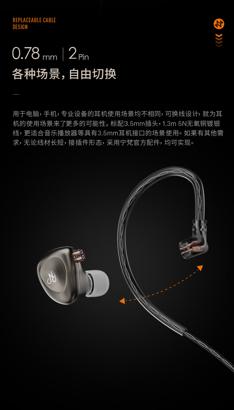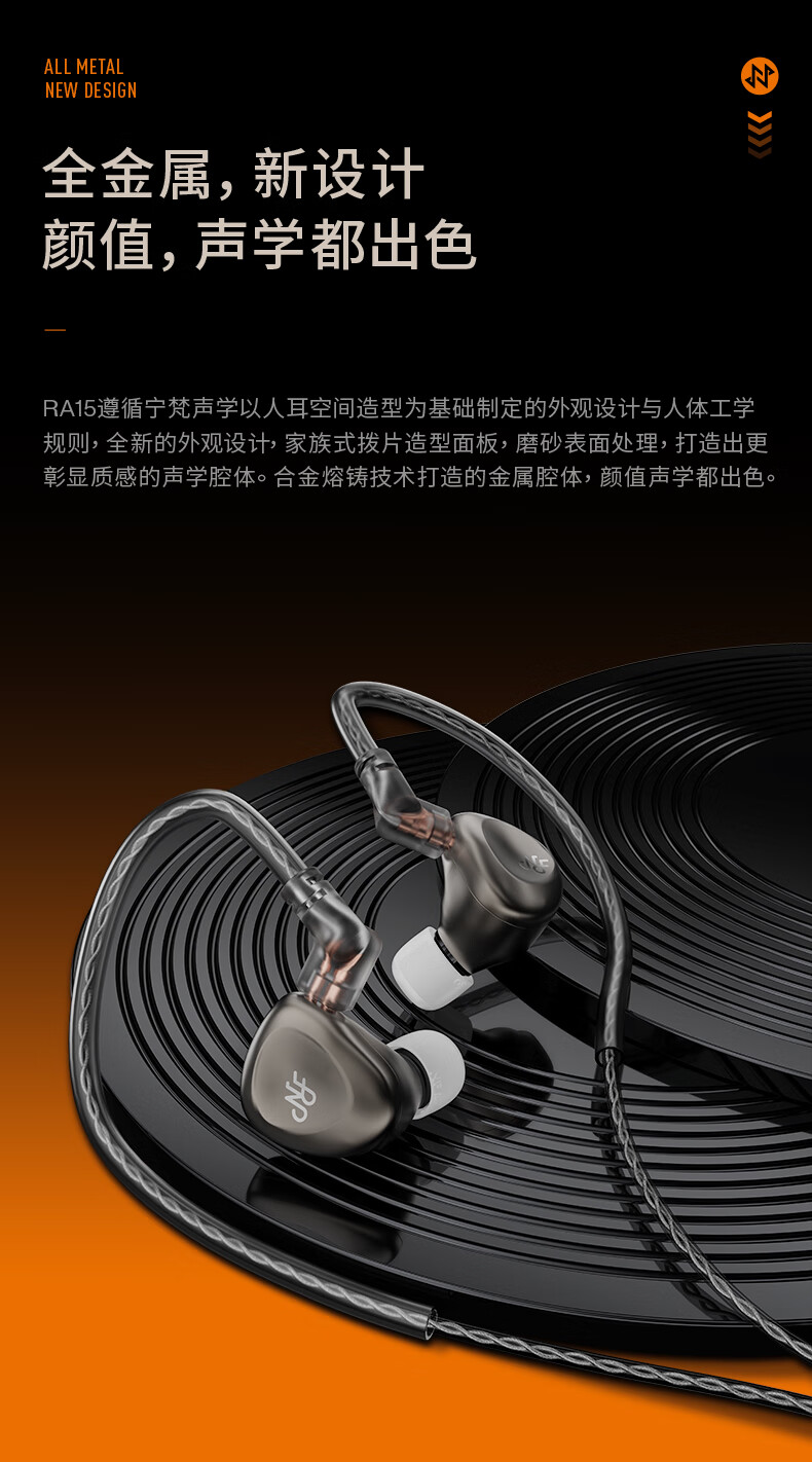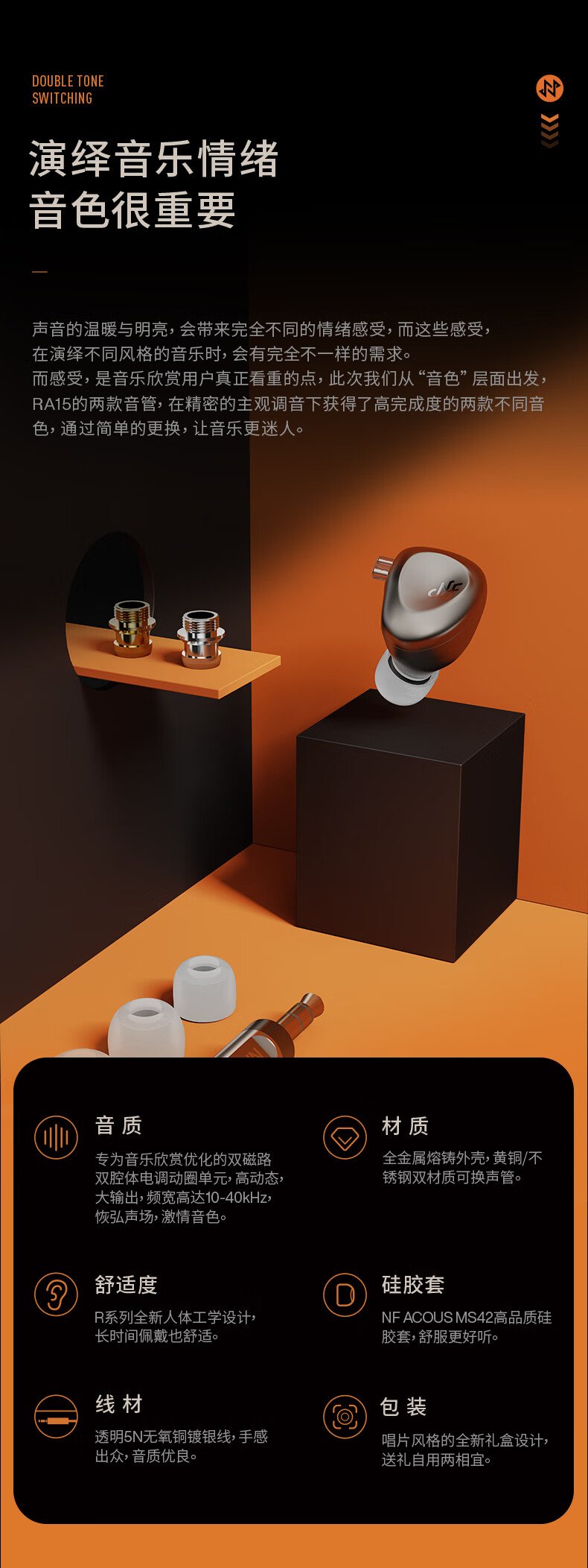 宁梵声学NFaudio RA15可换音管音乐耳机 HIFI耳机 监听耳机 游戏耳机 流行首选 灰色