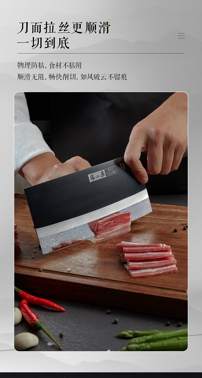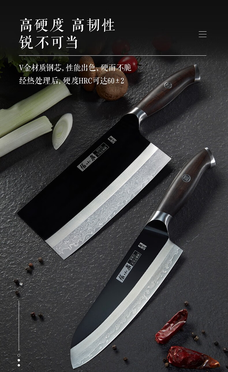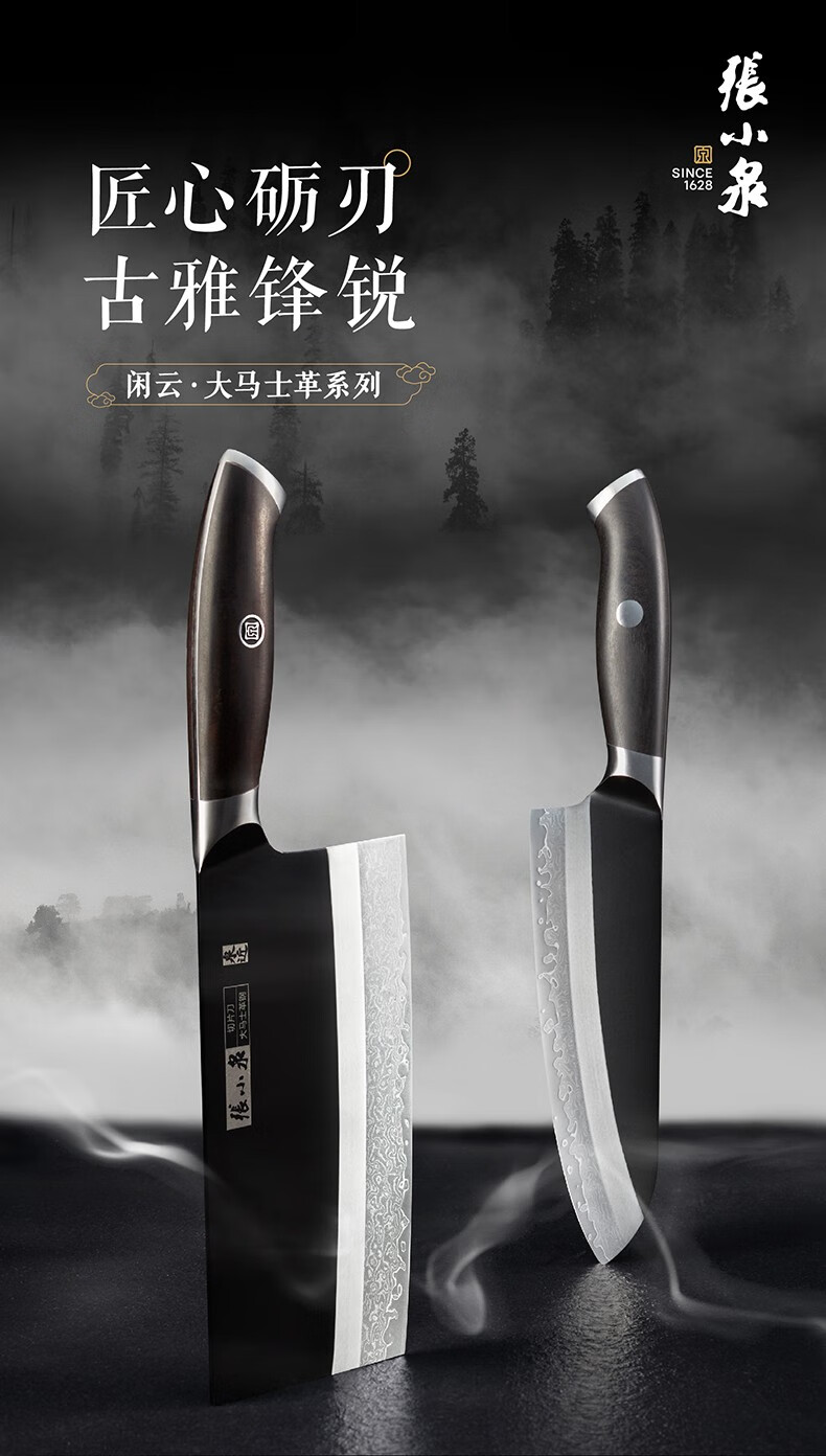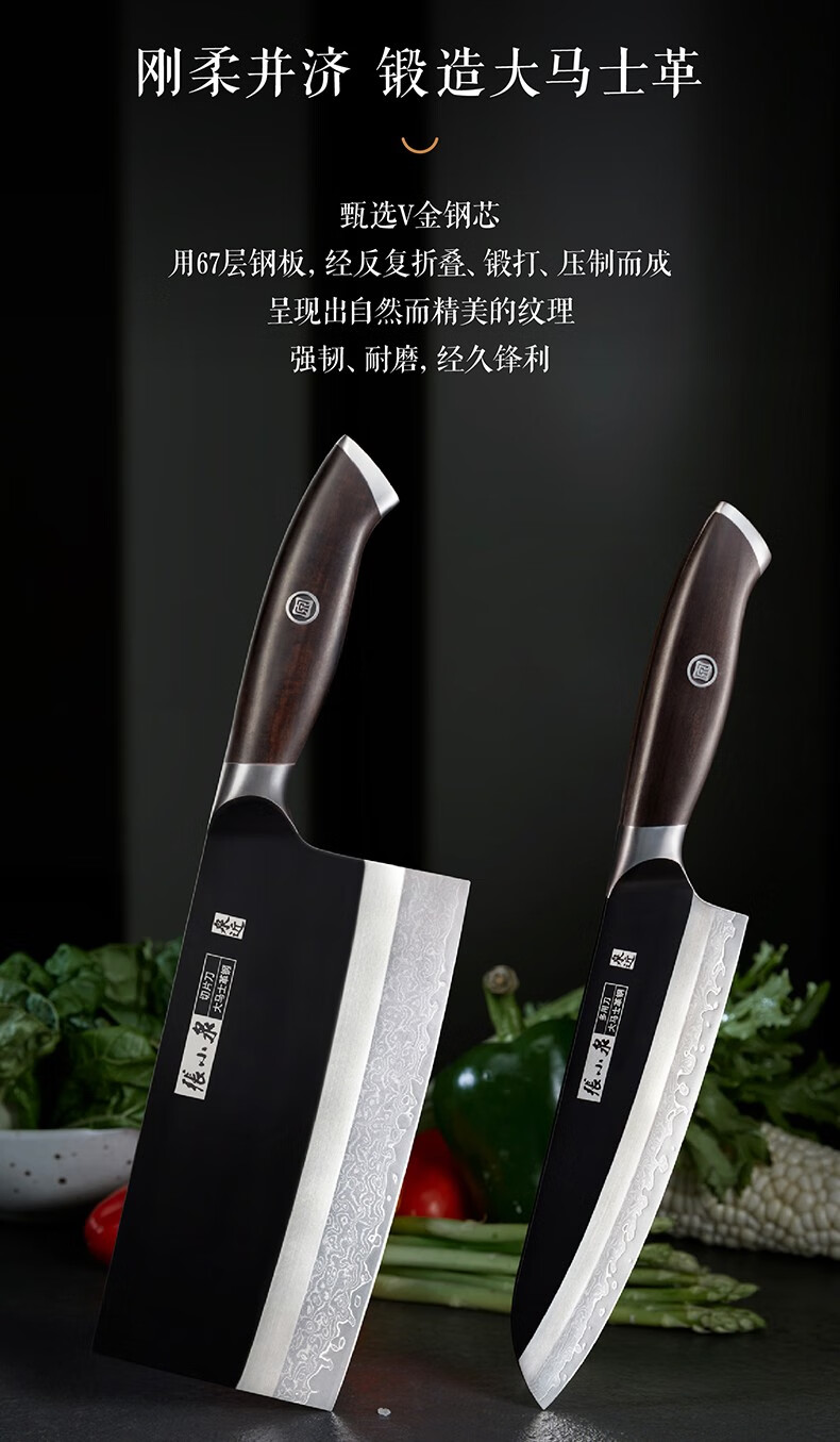张小泉闲云系列大马士革钢刀家用菜刀切片刀肉片刀具 切片+小厨刀二件套