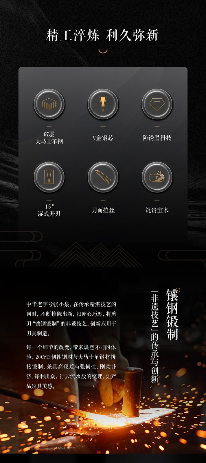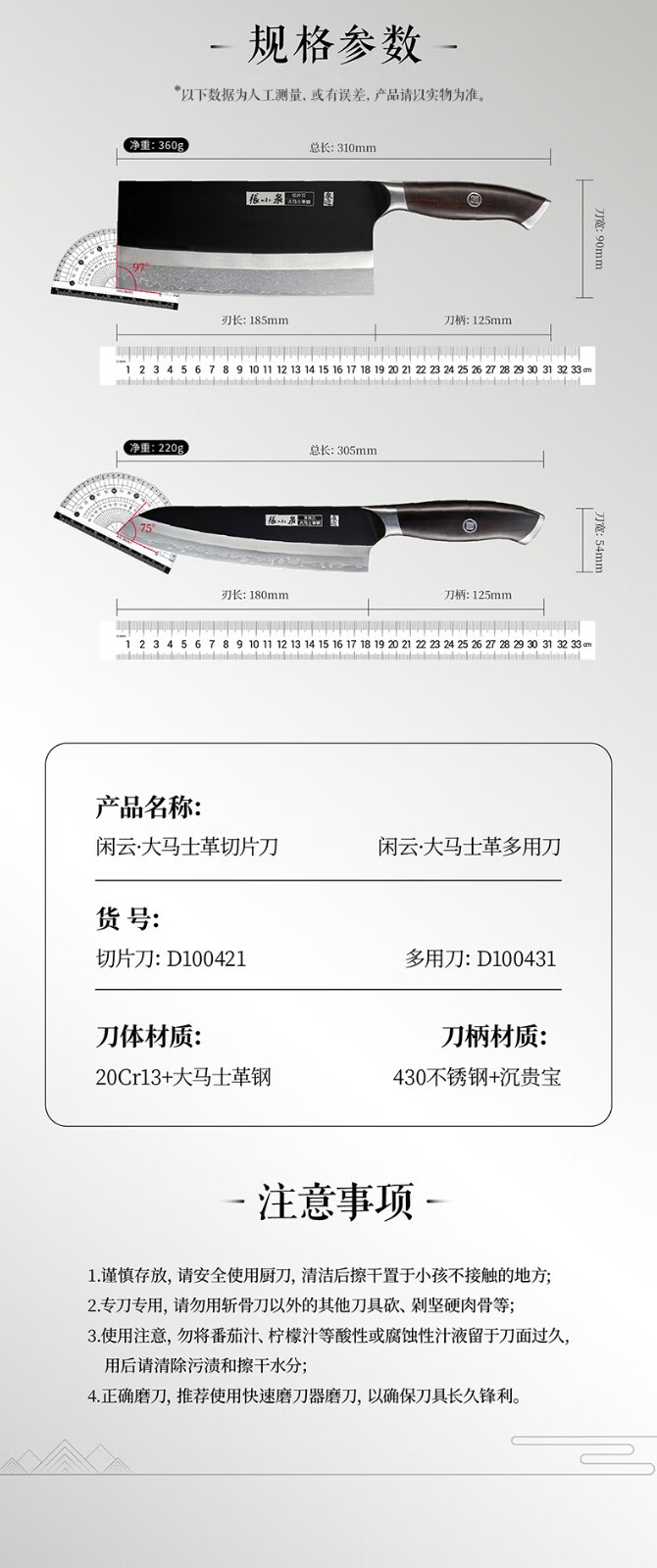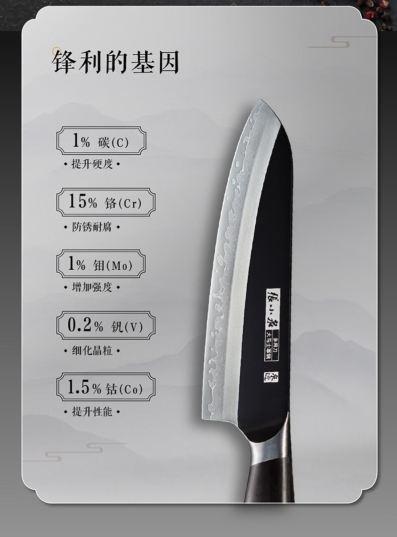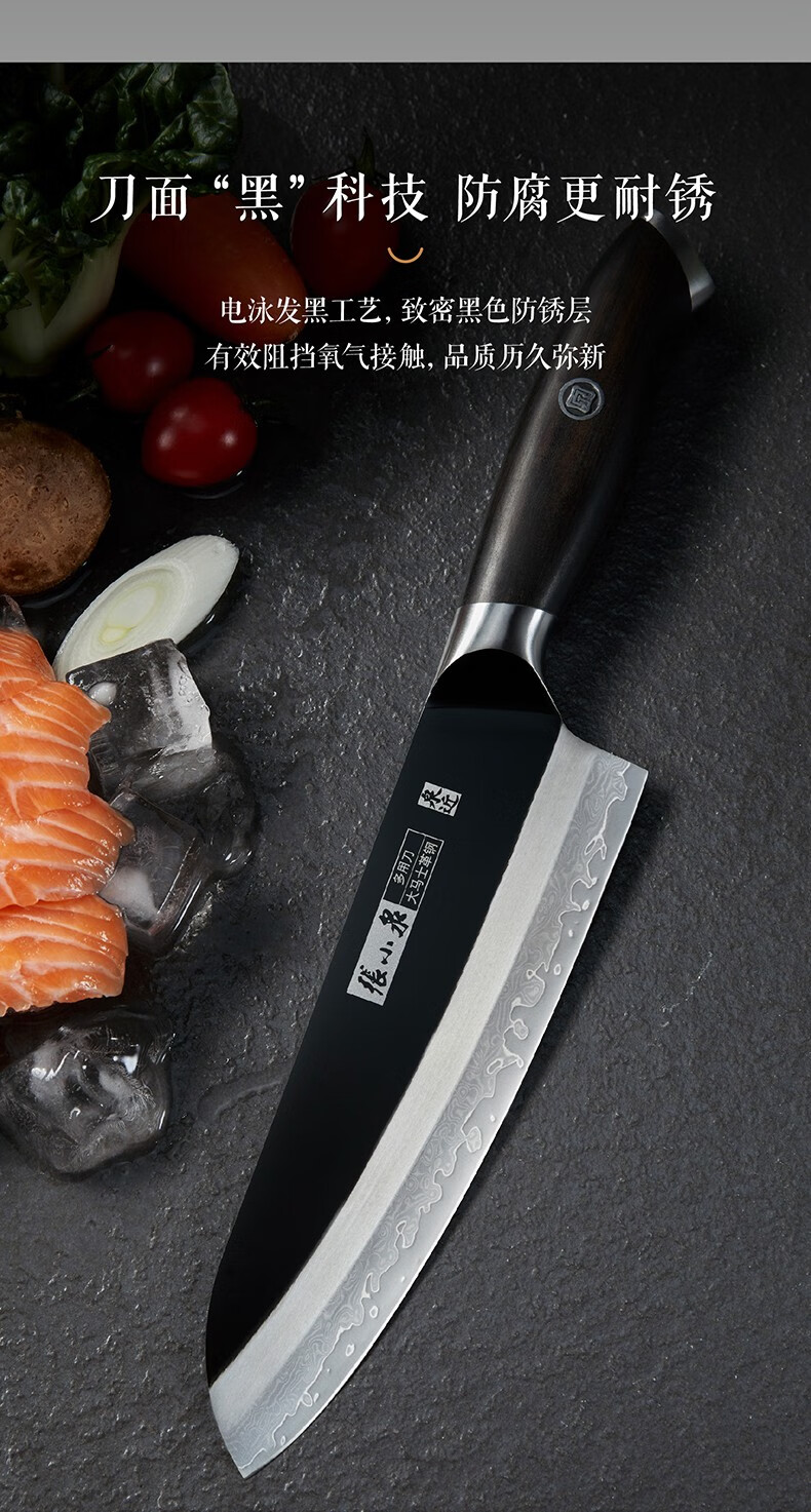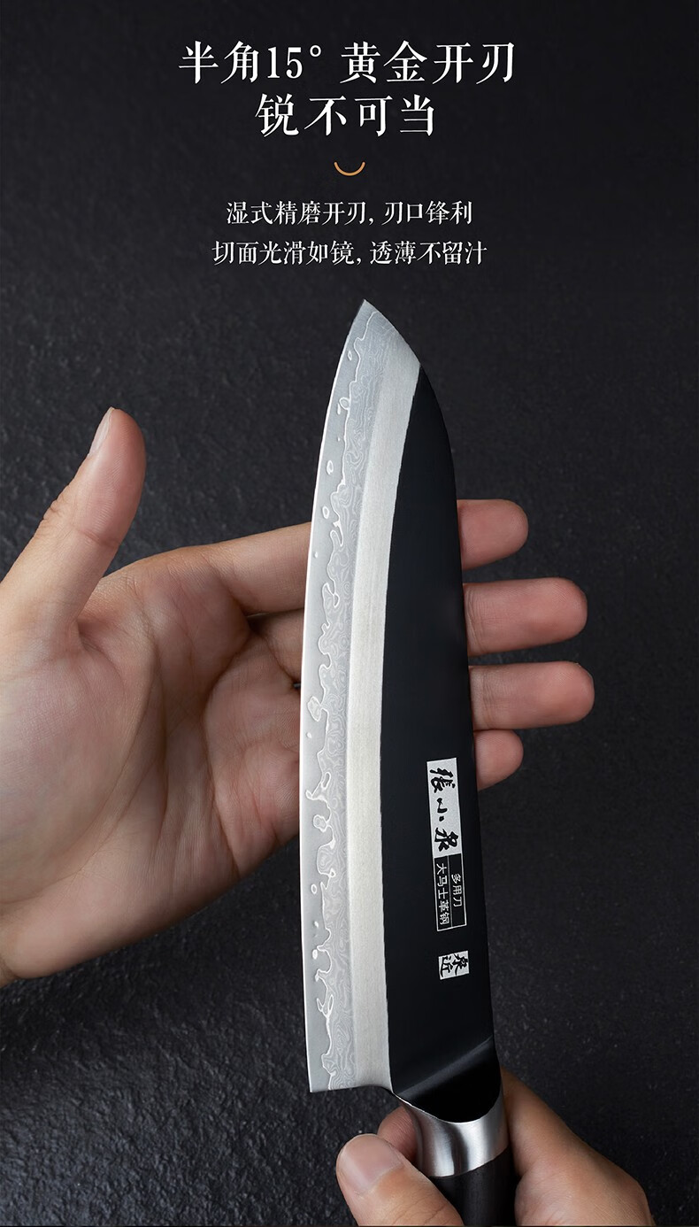 张小泉闲云系列大马士革钢刀家用菜刀切片刀肉片刀具 切片+小厨刀二件套