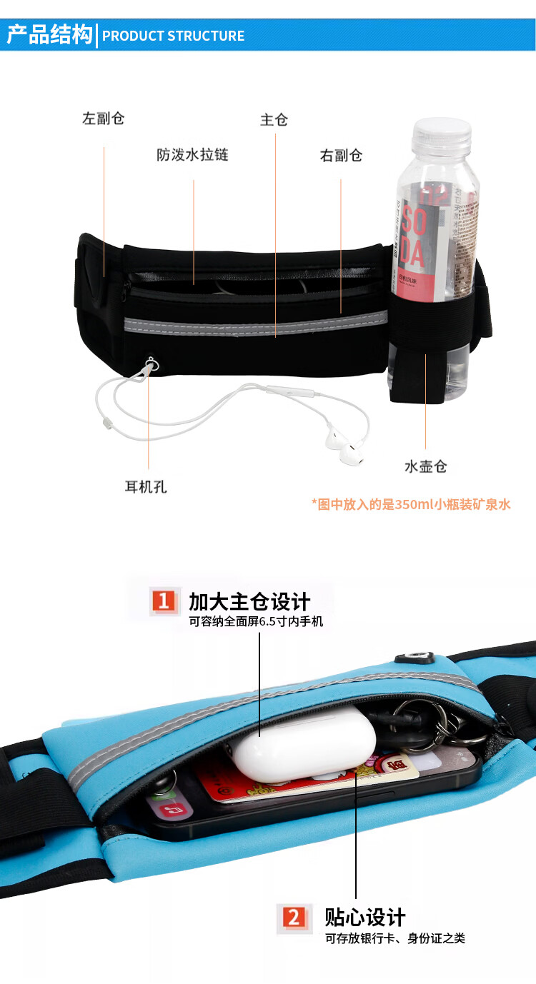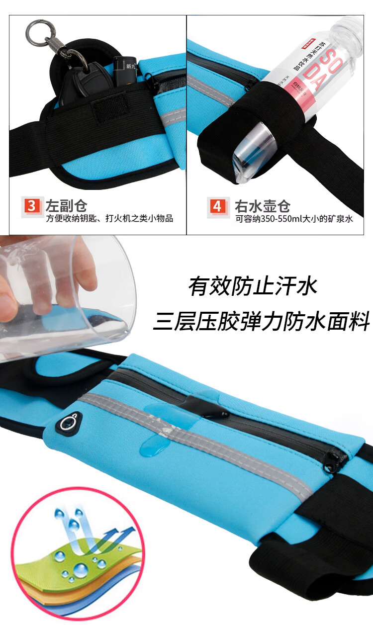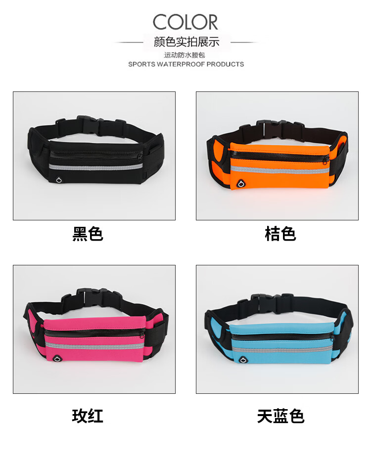 跑步腰包多功能防水防盗贴身手机腰带女男式运动健身新款健身装备 四色混装【4个装】 无规格