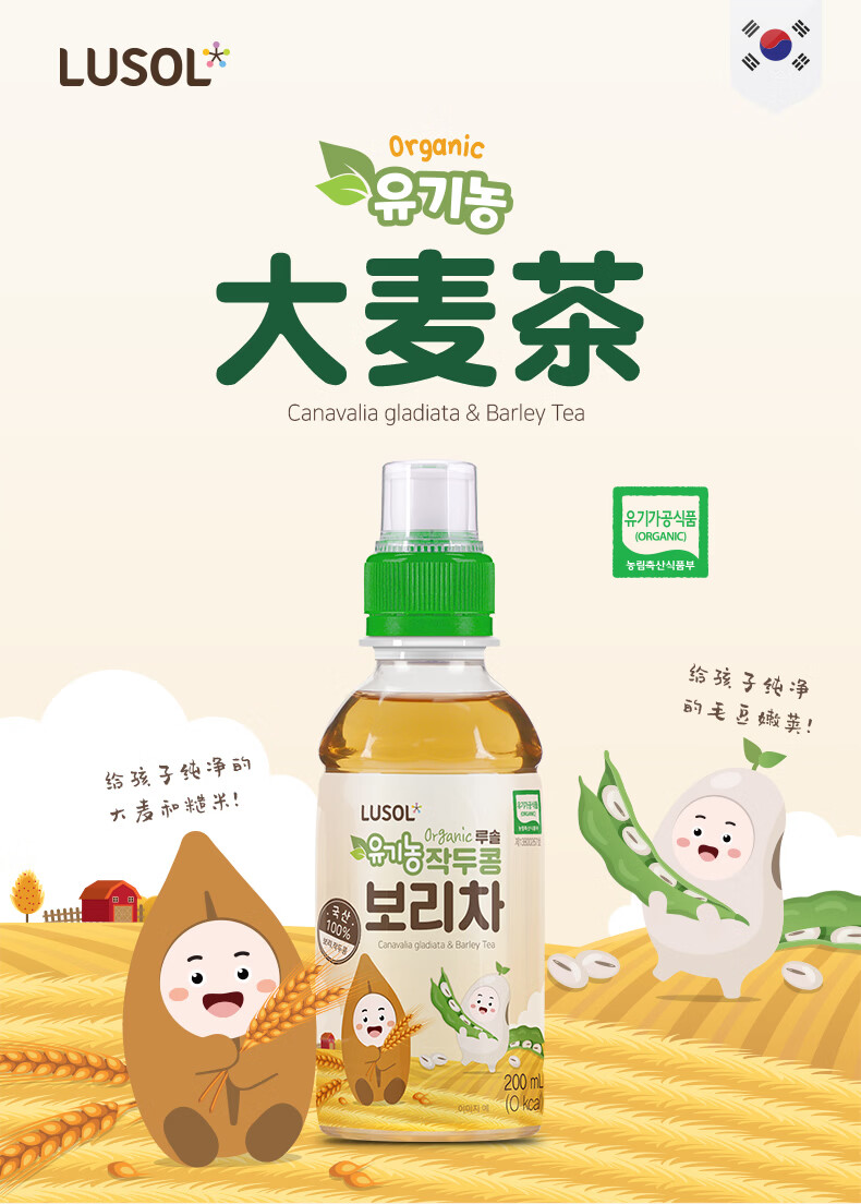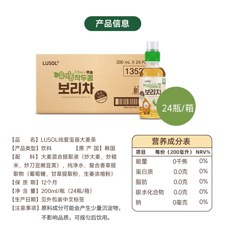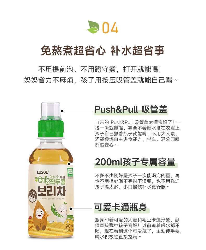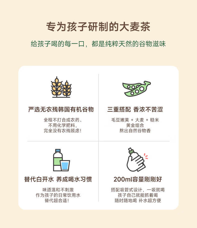 纯爱宝蓓大麦茶儿童饮品按压式安全瓶盖配料简单营养又补水200ml/瓶 大麦茶 200ml*3瓶 组合装