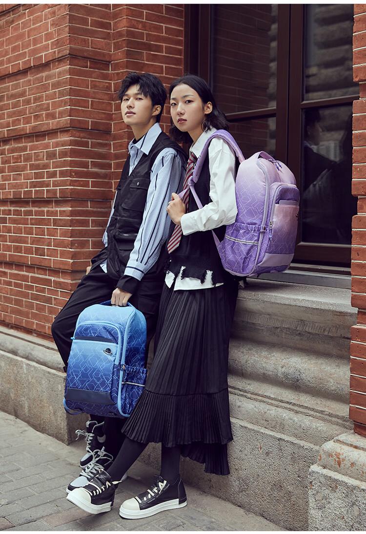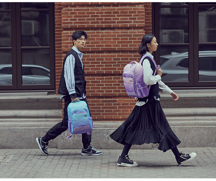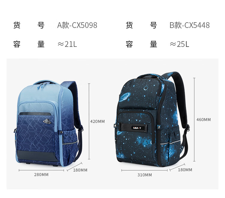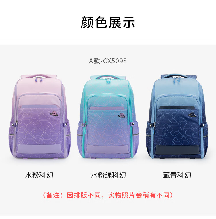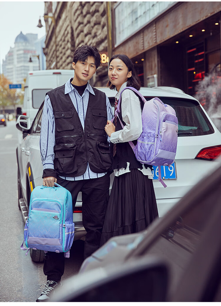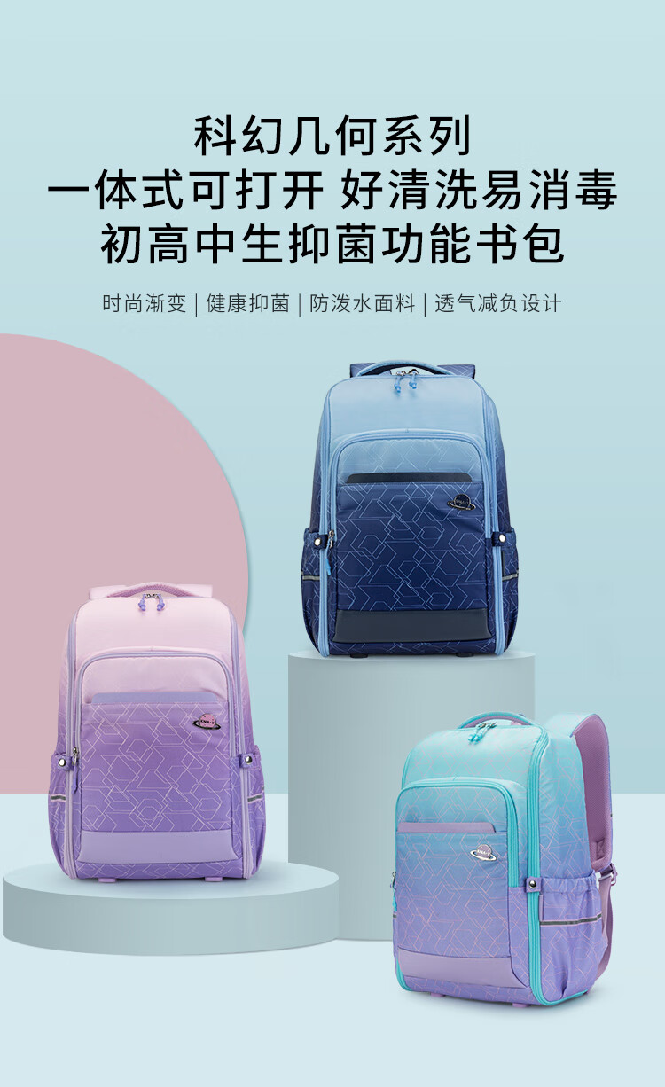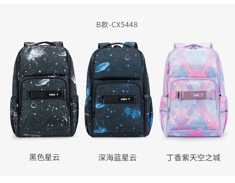 卡拉羊25L一体式可打开初高中生双肩包大容量多隔层书包CX5098 B款-丁香紫天空之城