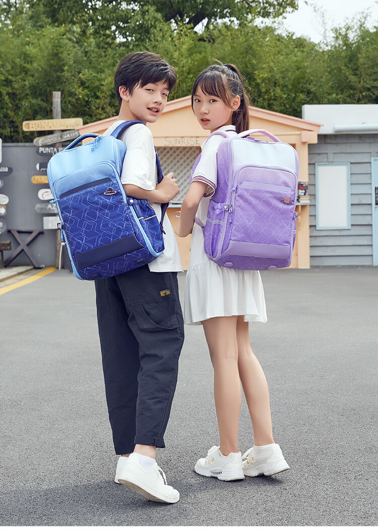 卡拉羊小学生1-6年级防下坠减负风琴书包大容量高颜值双肩包儿童书包 【精灵】藏青 【容量20L】身高135cm以上