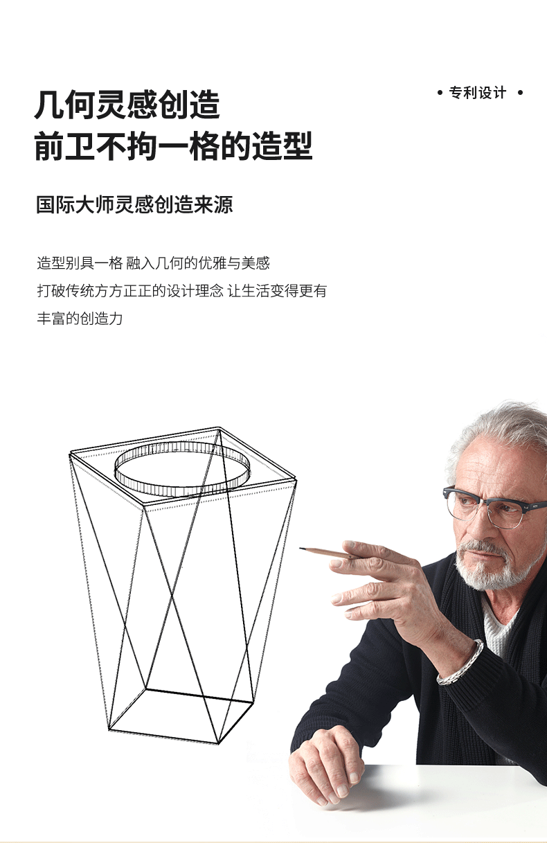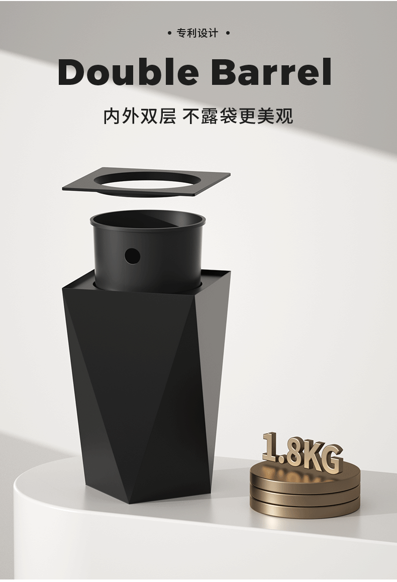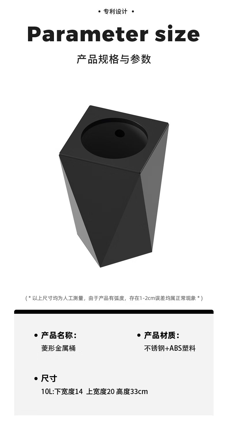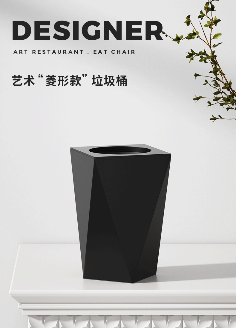科灵创意菱形垃圾桶家用客厅卧室卫生间厕所高档酒店商用纸篓多边无盖 【2025新升级木纹压圈】 质感黑/ 木纹压圈款- 10L