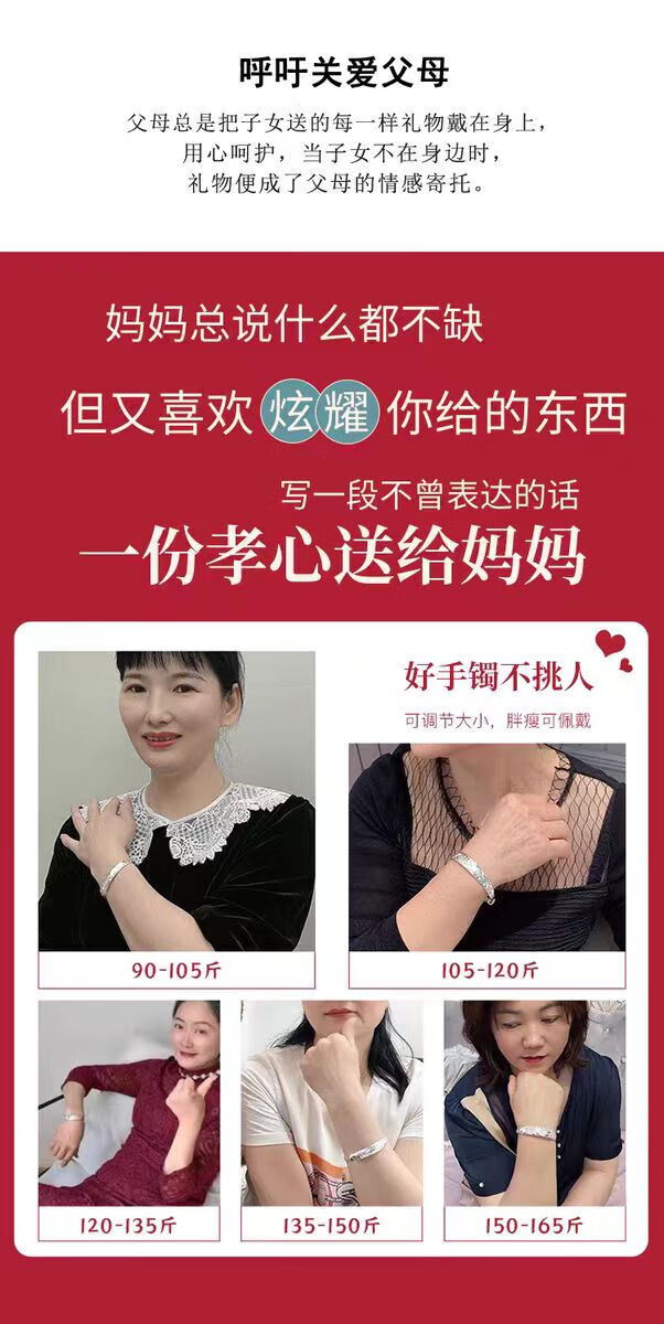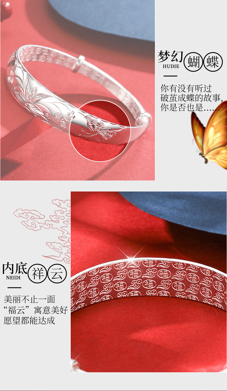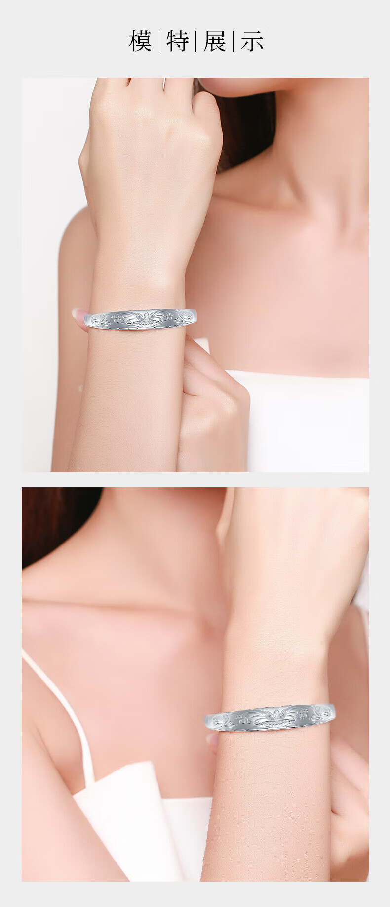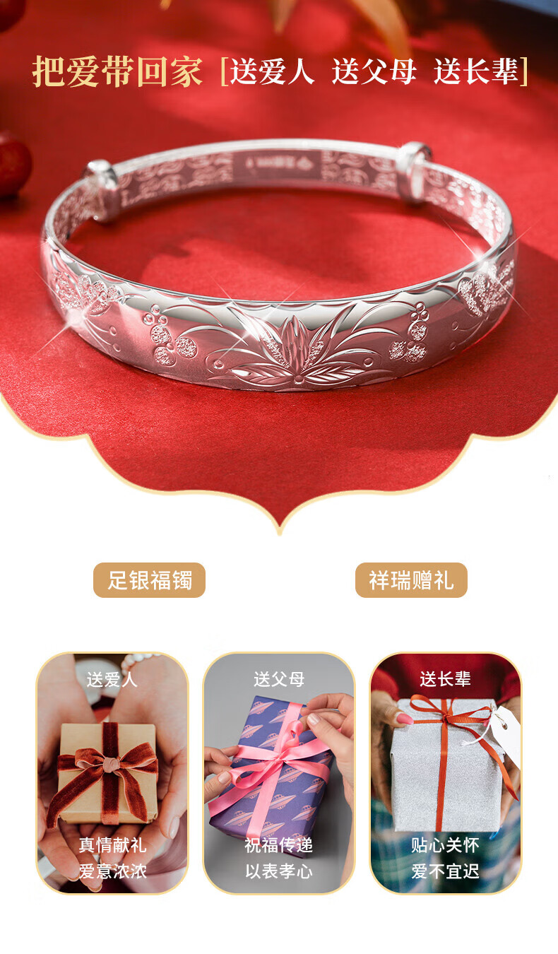 妈妈款银手镯女繁花似锦9999足银实心银镯子送奶奶丈母娘 蓬莲心经古法25(证书+礼盒
