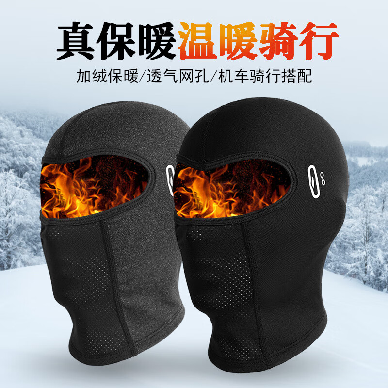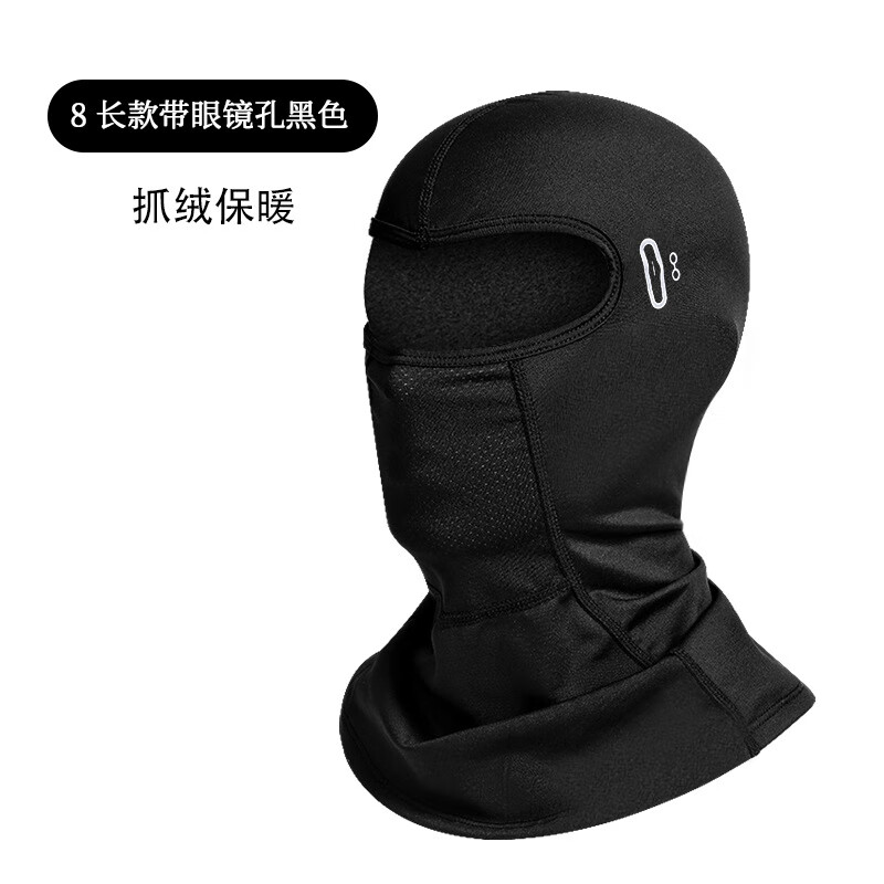 【优选】保暖骑行面罩摩托车头盔头套巴拉克拉法帽防风脖套防寒滑 黑色8008长款带眼镜孔 均码