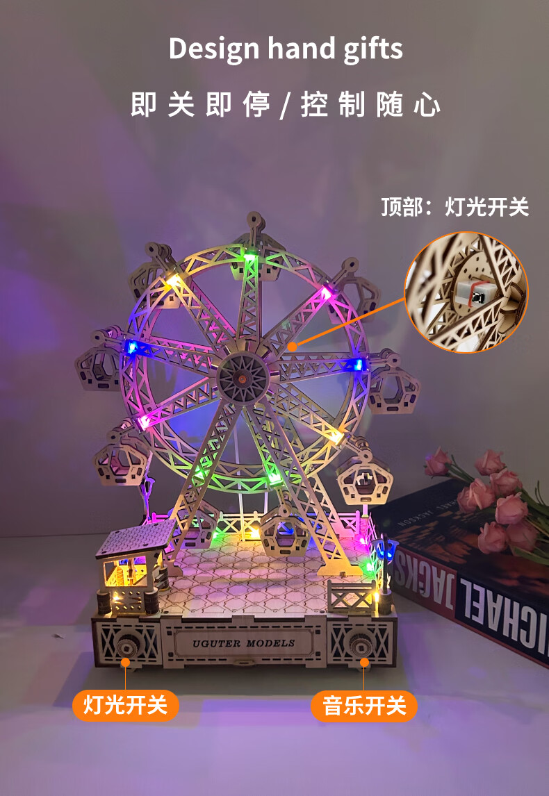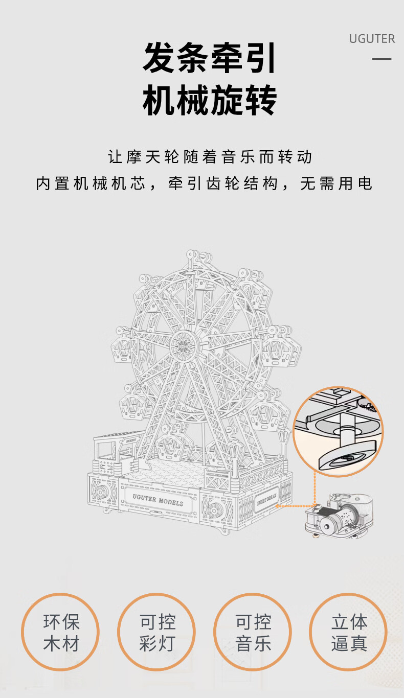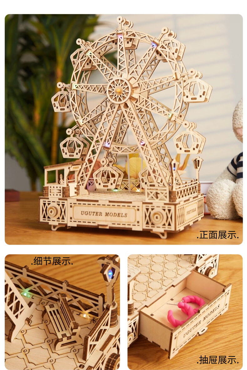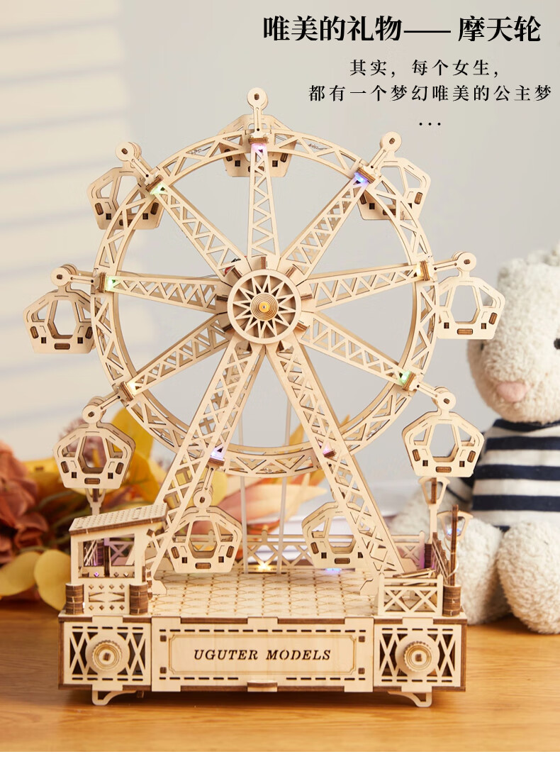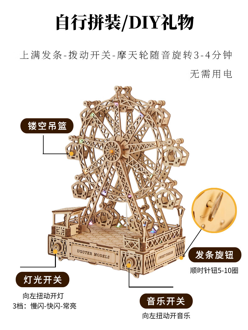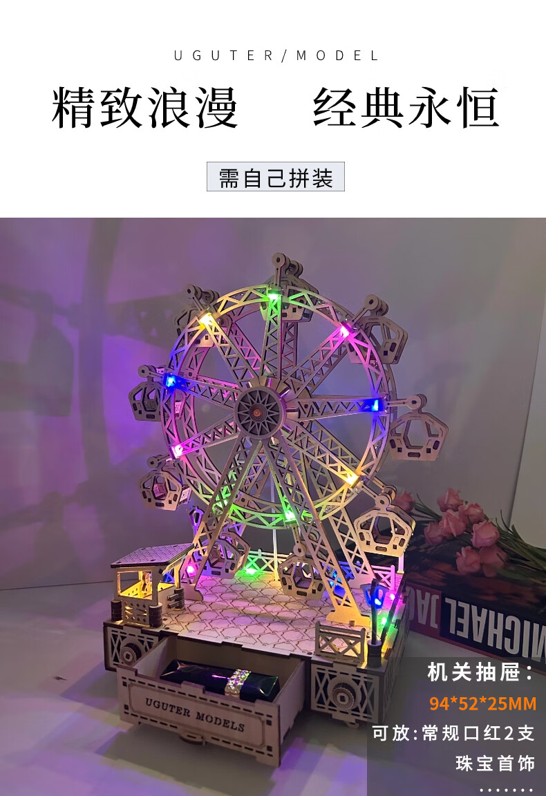 有格diy手工拼装七夕生日礼物摩天轮八音盒音乐盒木质立体拼图送女生 幸福摩天轮-我心永恒(送礼袋)