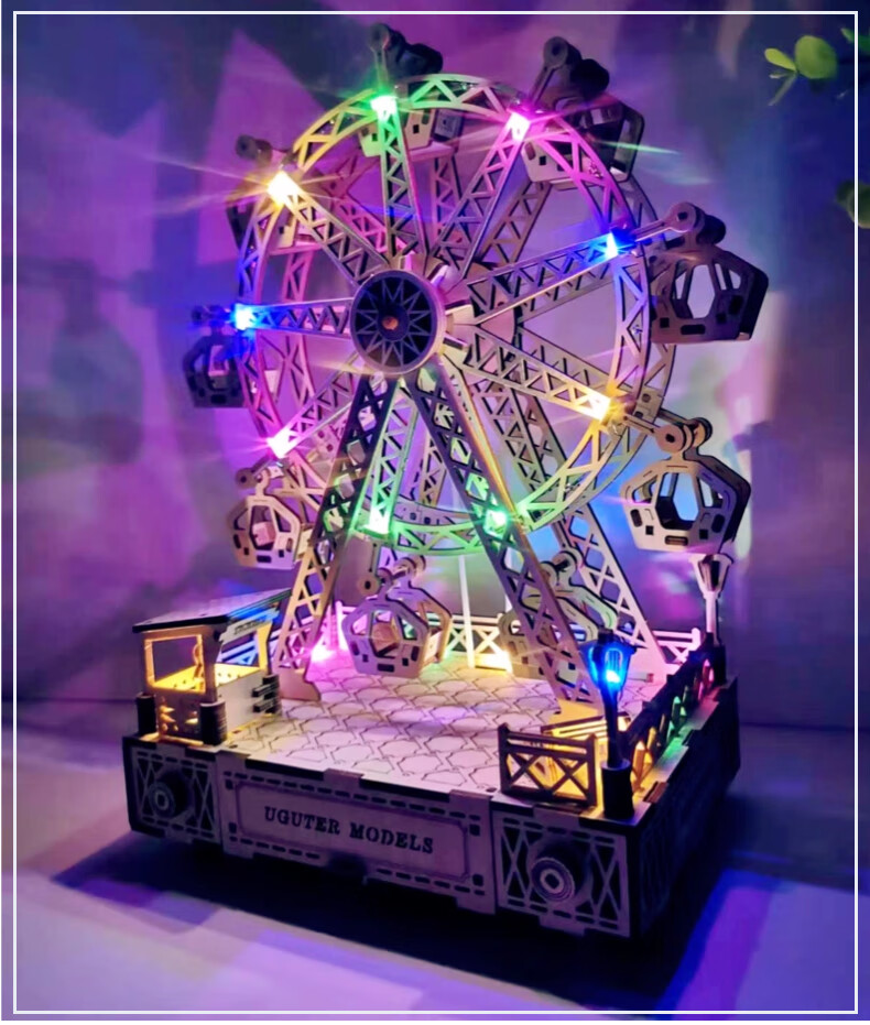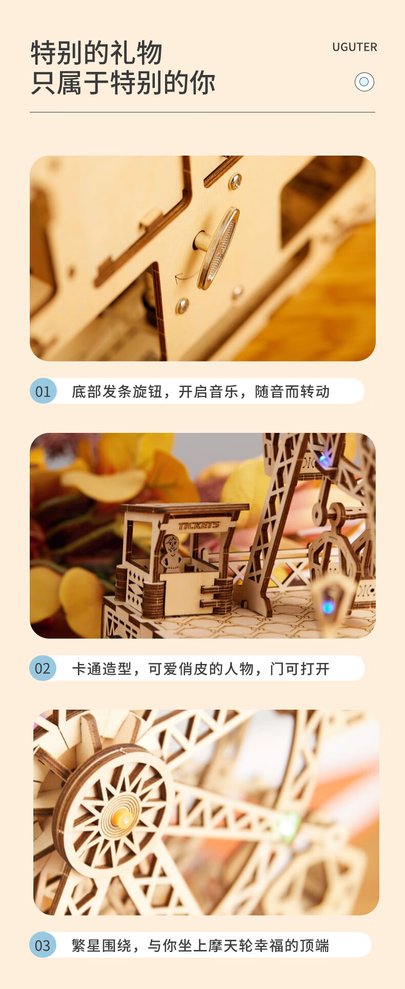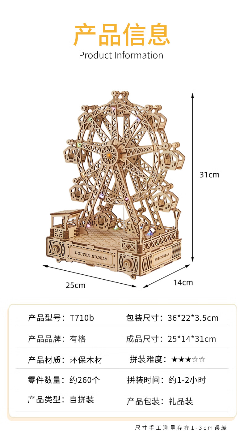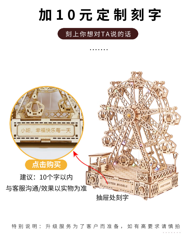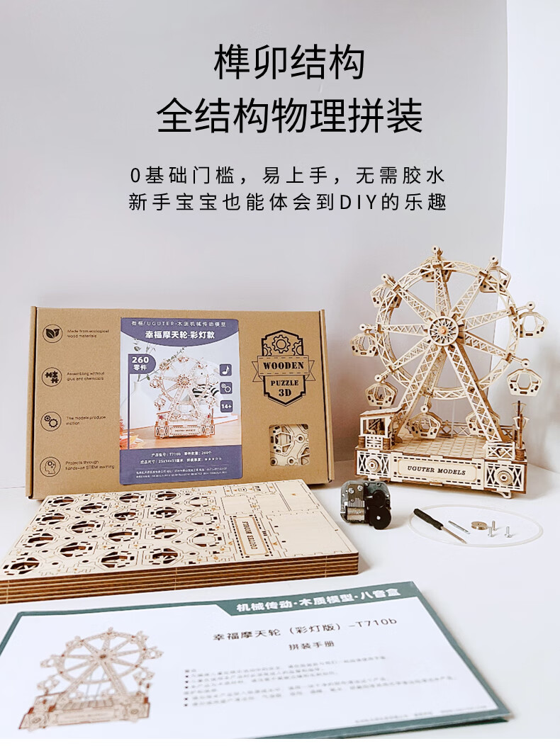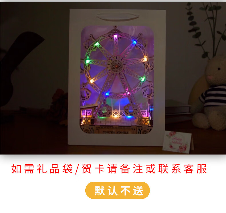 有格diy手工拼装七夕生日礼物摩天轮八音盒音乐盒木质立体拼图送女生 幸福摩天轮-我心永恒(送礼袋)