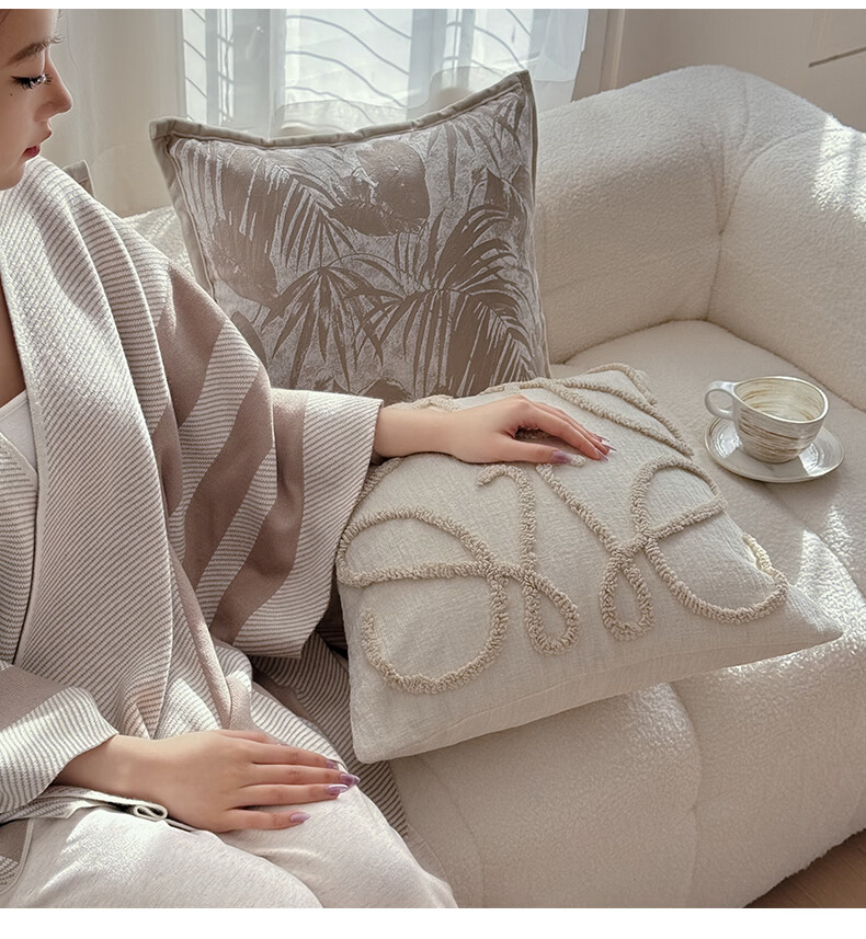 名创优品(MINISO)法式中古风抱枕套含芯沙发卧室靠枕轻奢高级感床上腰靠垫 浮雕-流云【45*45cm单枕套】 45cm*45cm 枕套