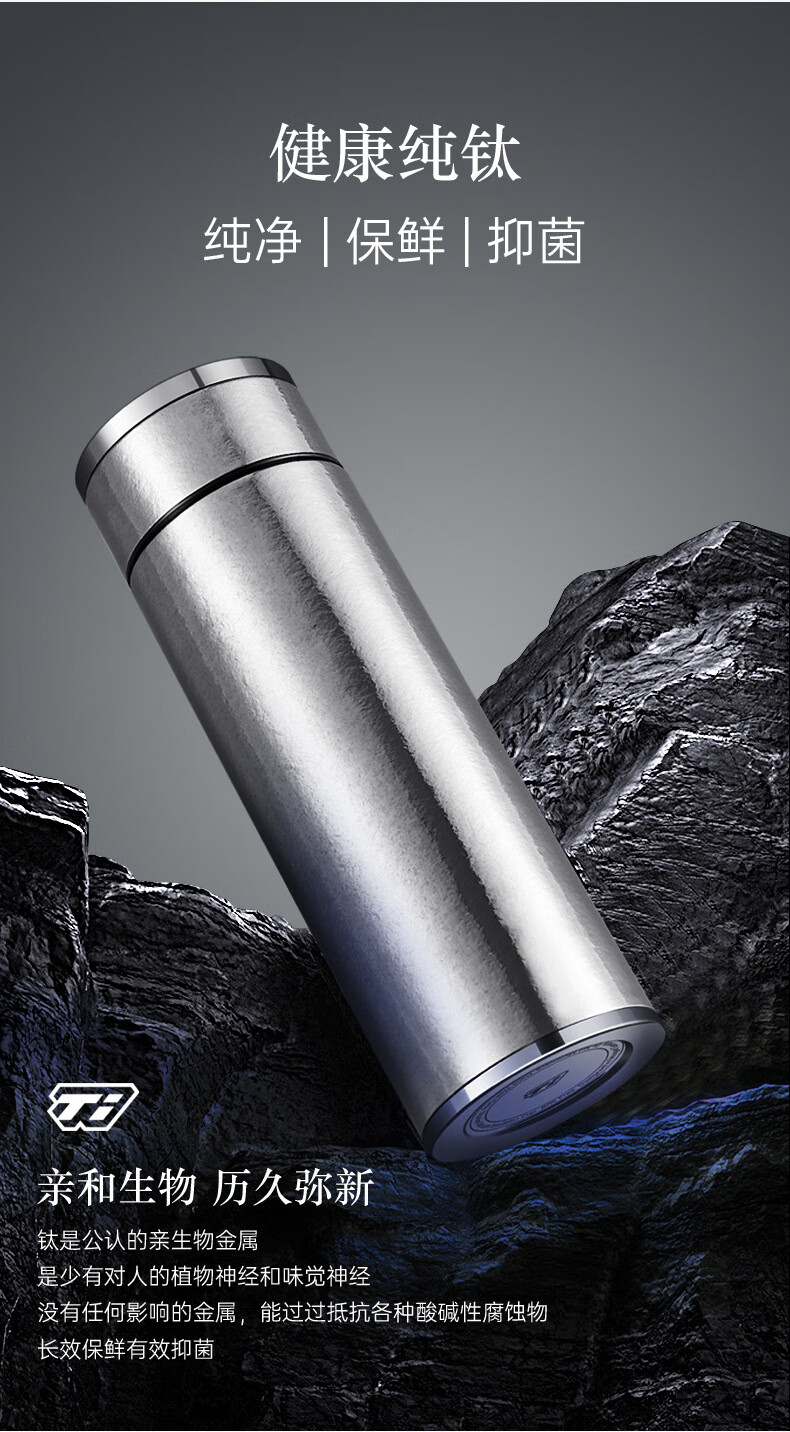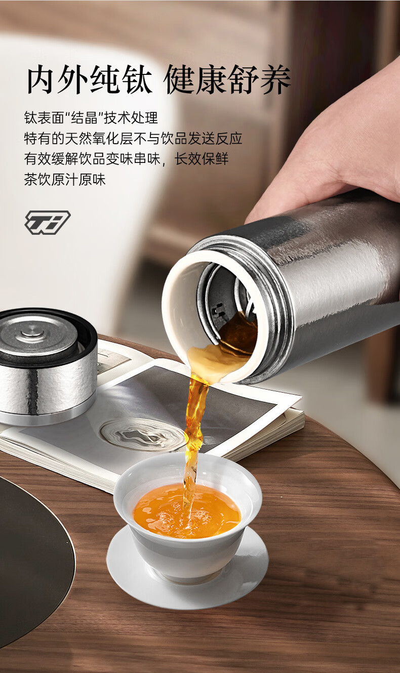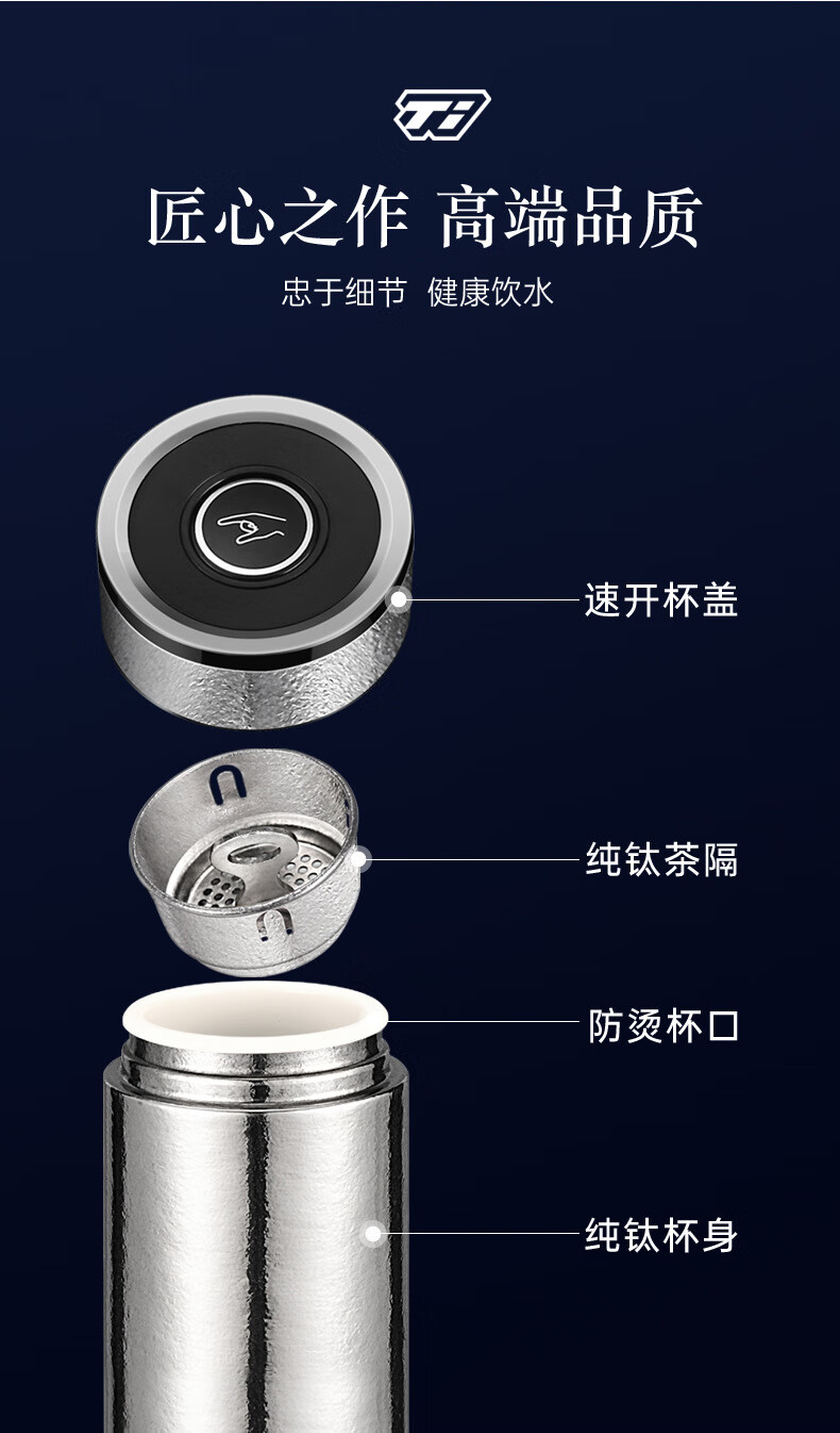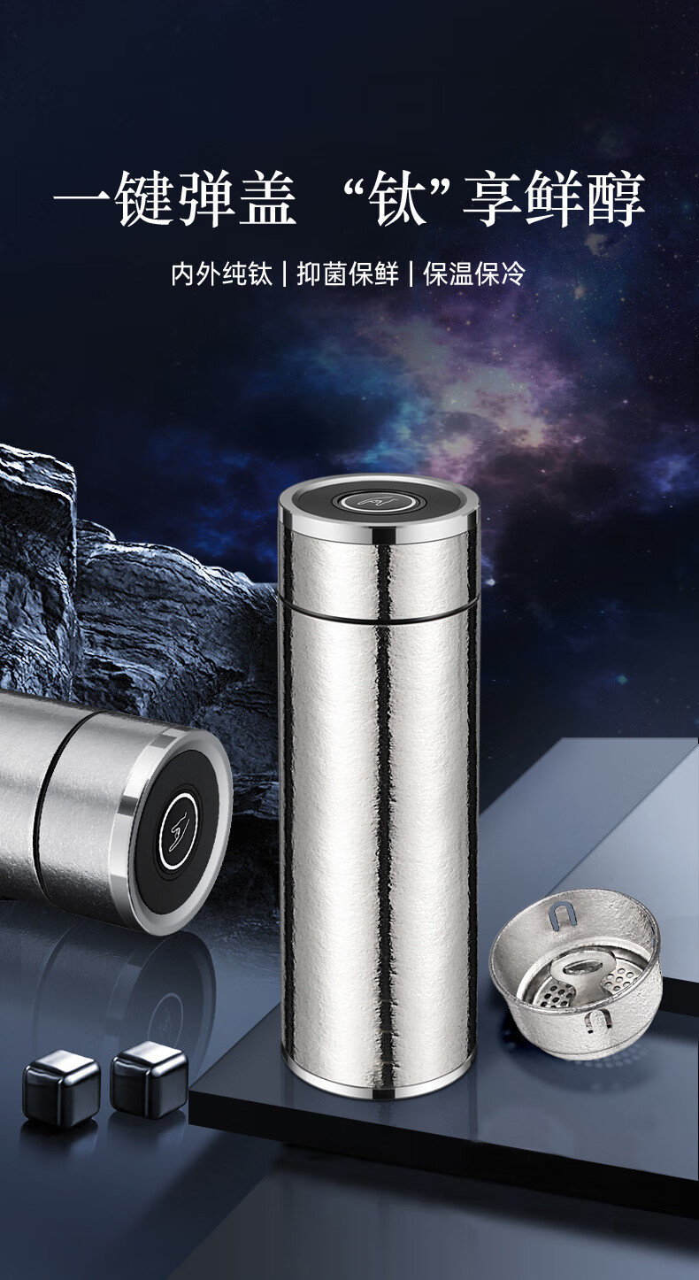 WFFPM德国品牌纯钛一键速开保温杯男士养生水杯大容量便捷泡茶钛杯 银色 450ml 66*210mm