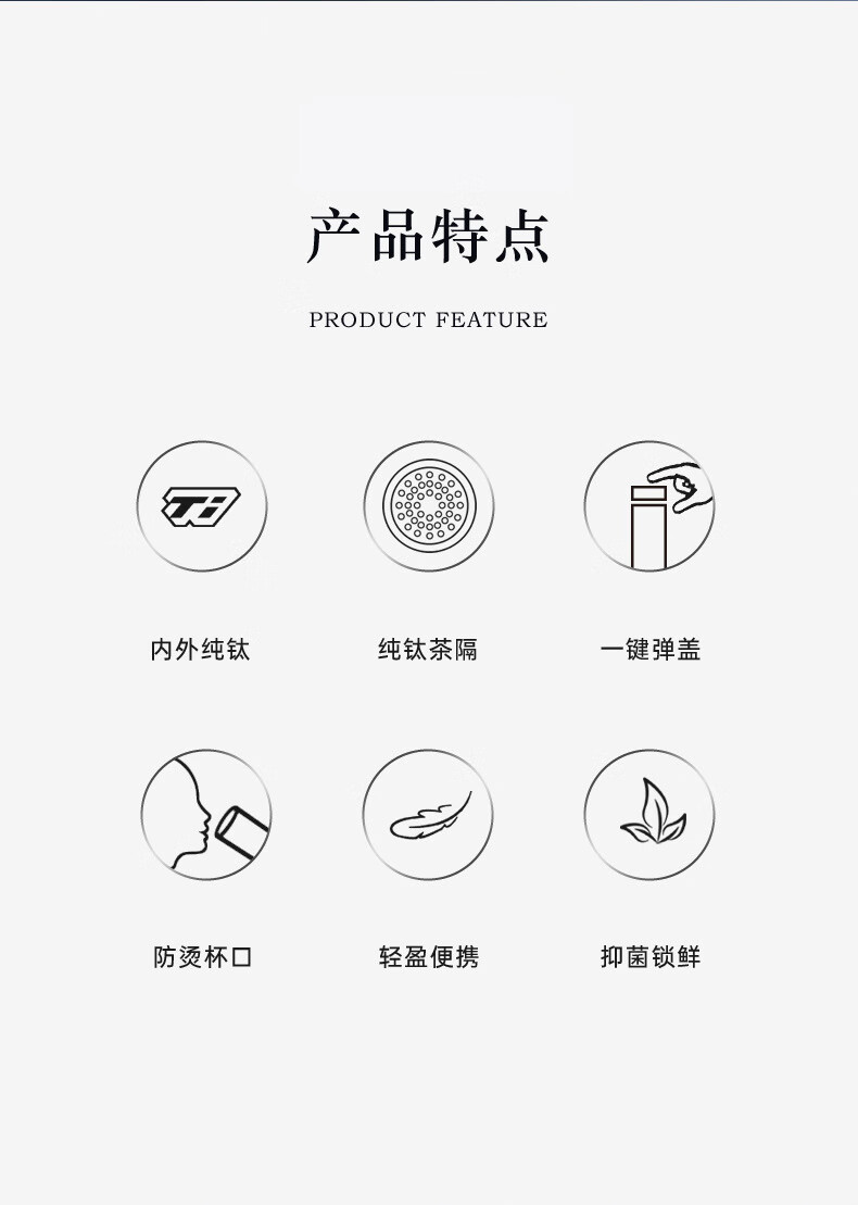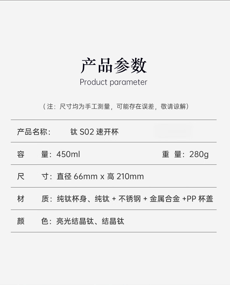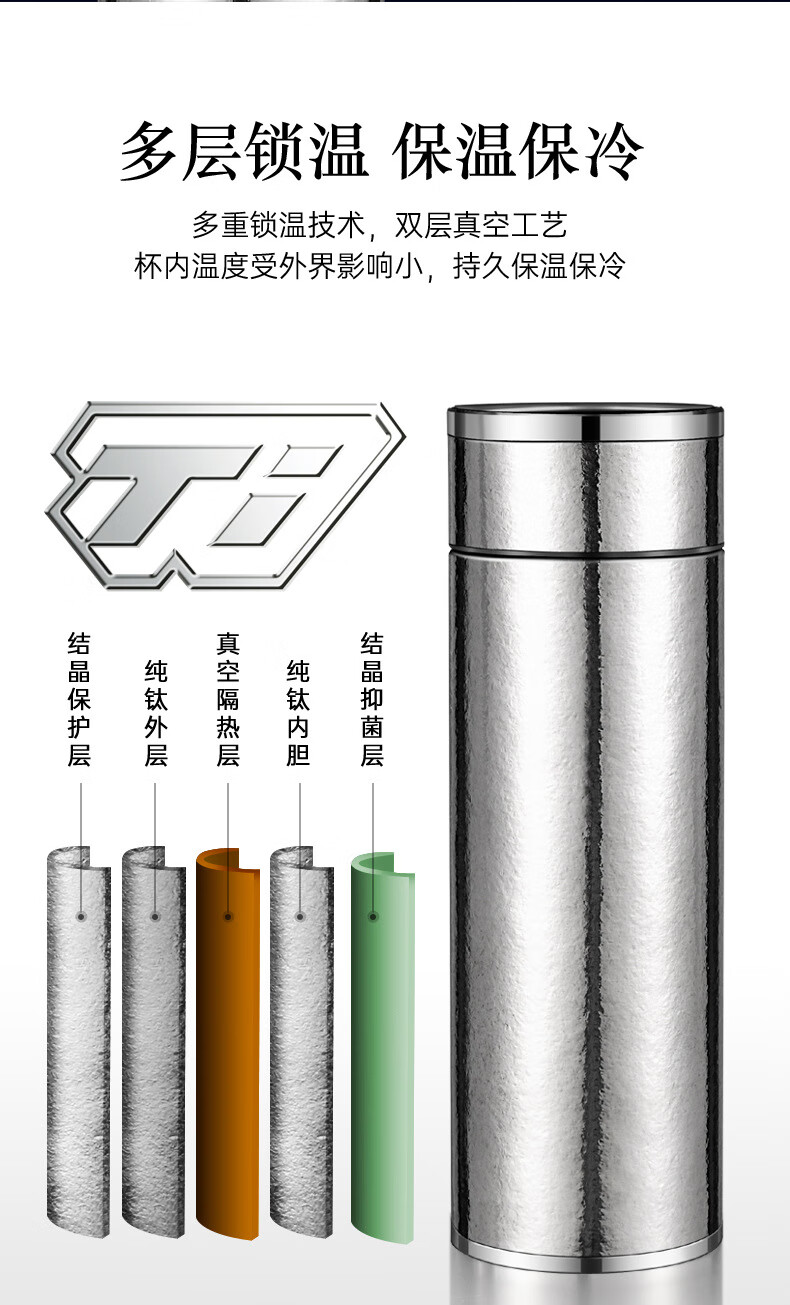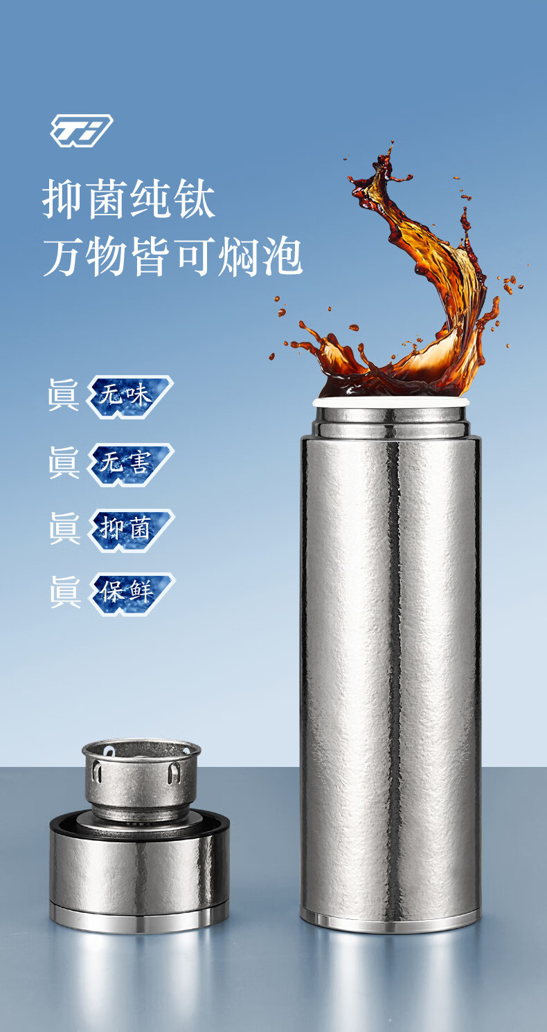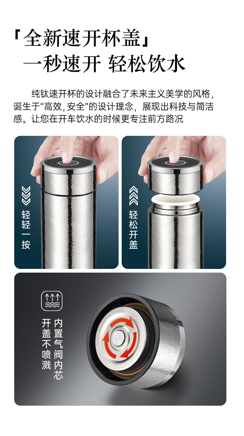 WFFPM德国品牌纯钛一键速开保温杯男士养生水杯大容量便捷泡茶钛杯 银色 450ml 66*210mm