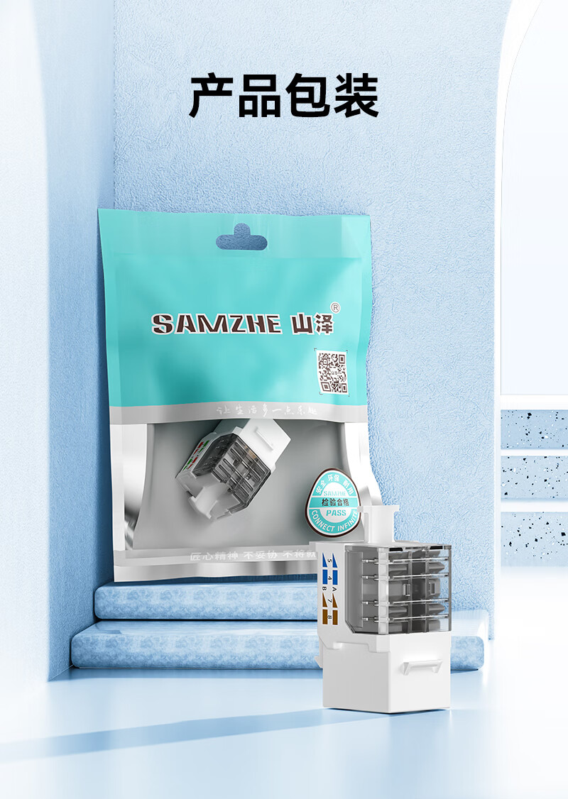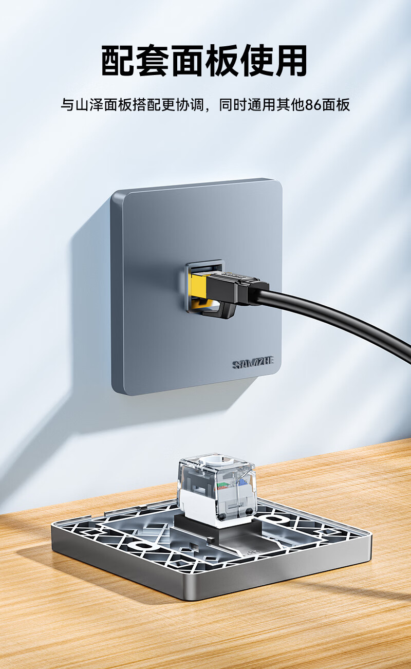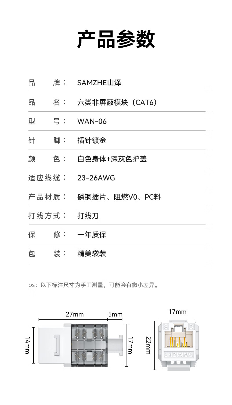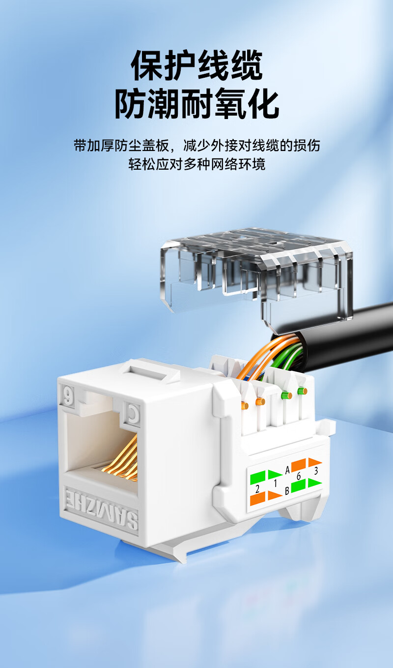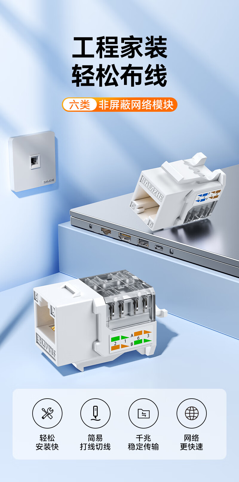 山泽六类网络模块 CAT6千兆网线插座面板模块 RJ45水晶头母座电脑网线镀金连接头直通头 工程版 WAN-06