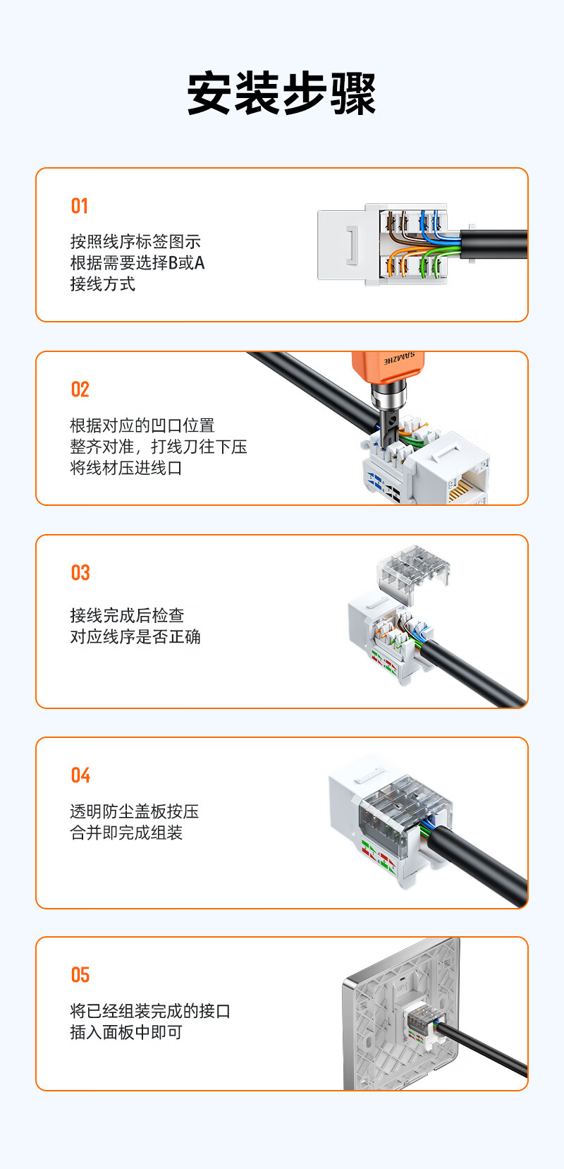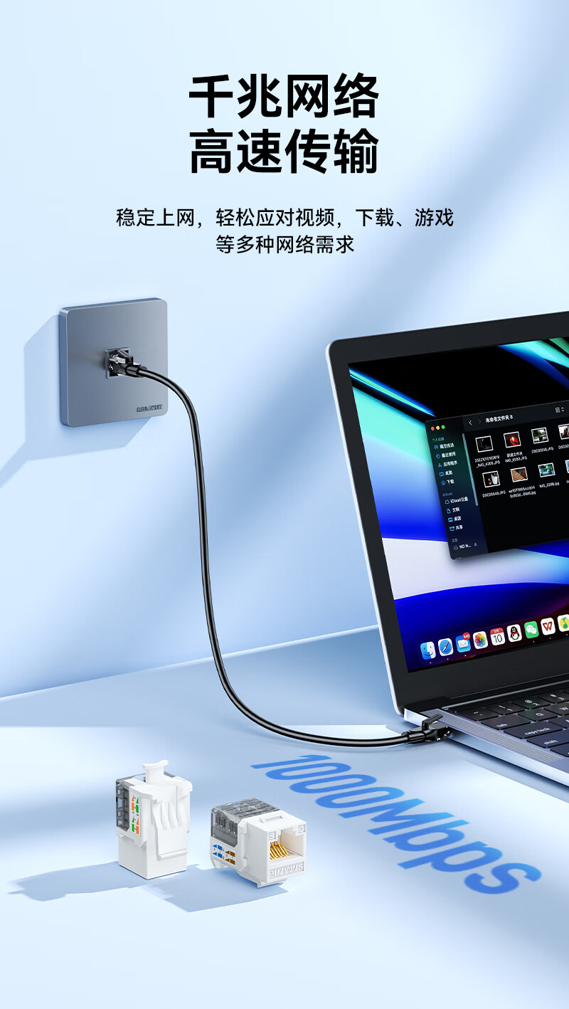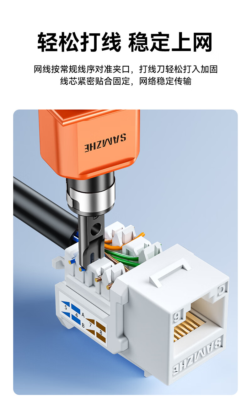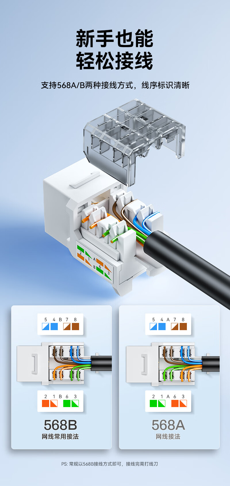 山泽六类网络模块 CAT6千兆网线插座面板模块 RJ45水晶头母座电脑网线镀金连接头直通头 工程版 WAN-06