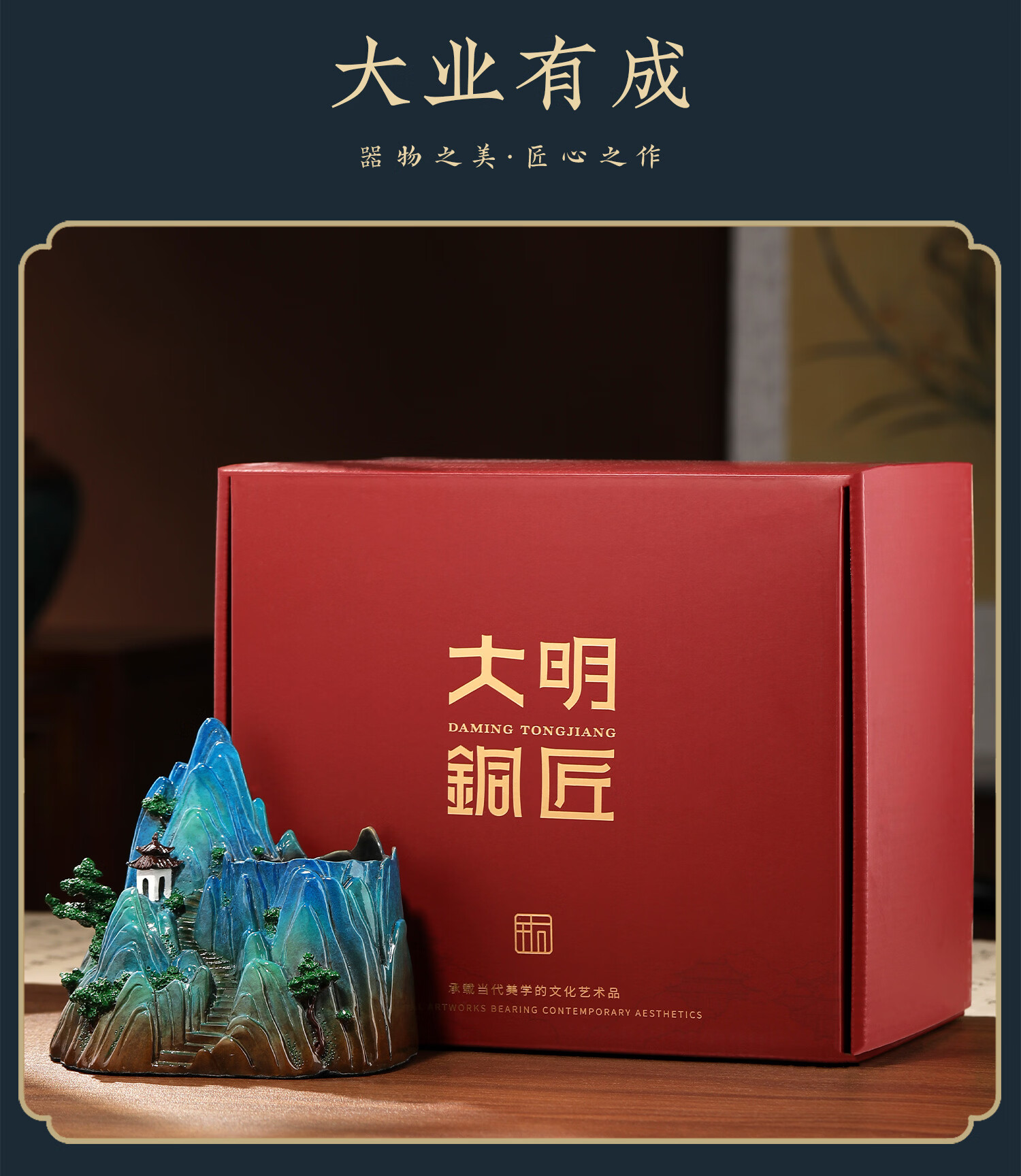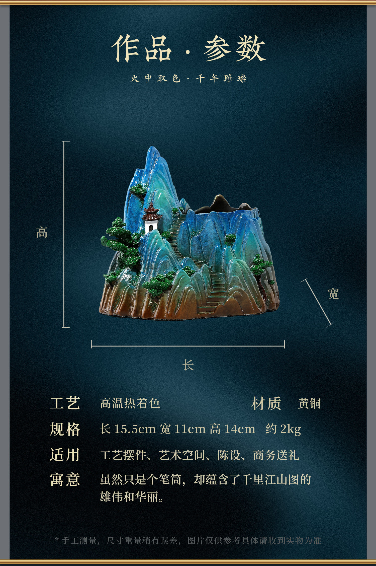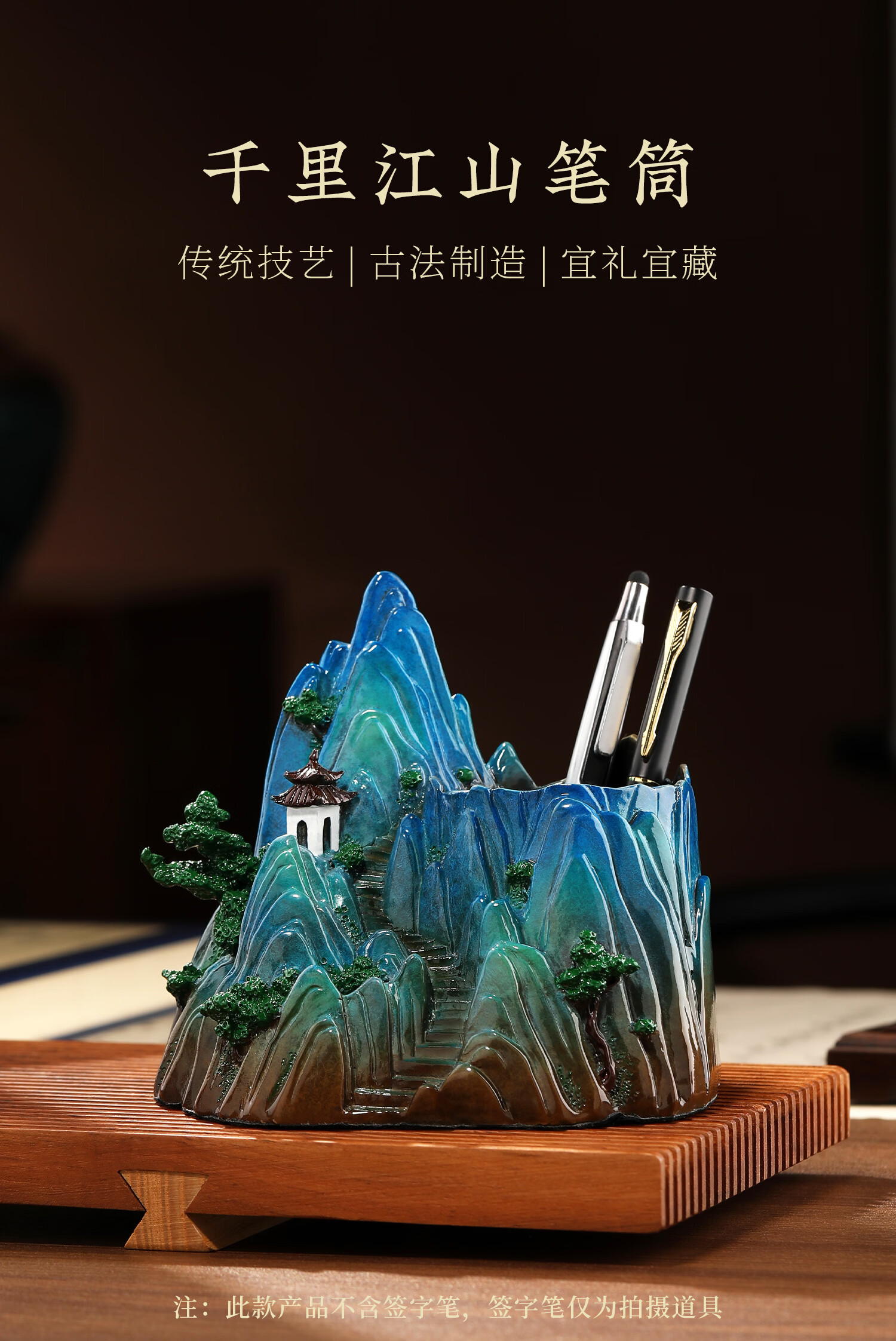 大明铜匠千里江山黄铜笔筒摆件工艺品书房办公桌创意装饰送老师学生礼物 定制款定制费