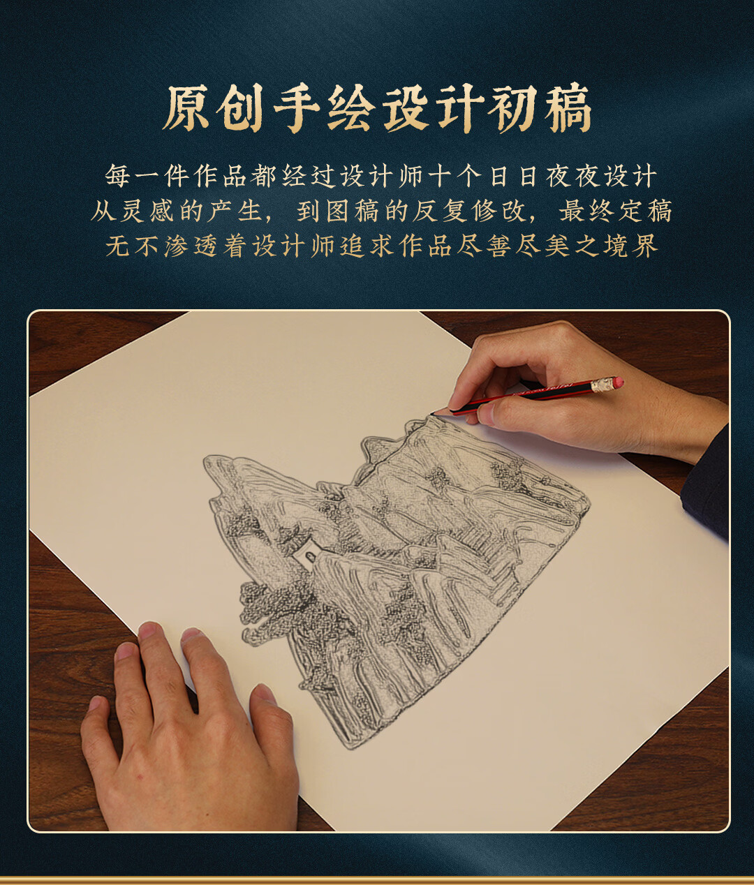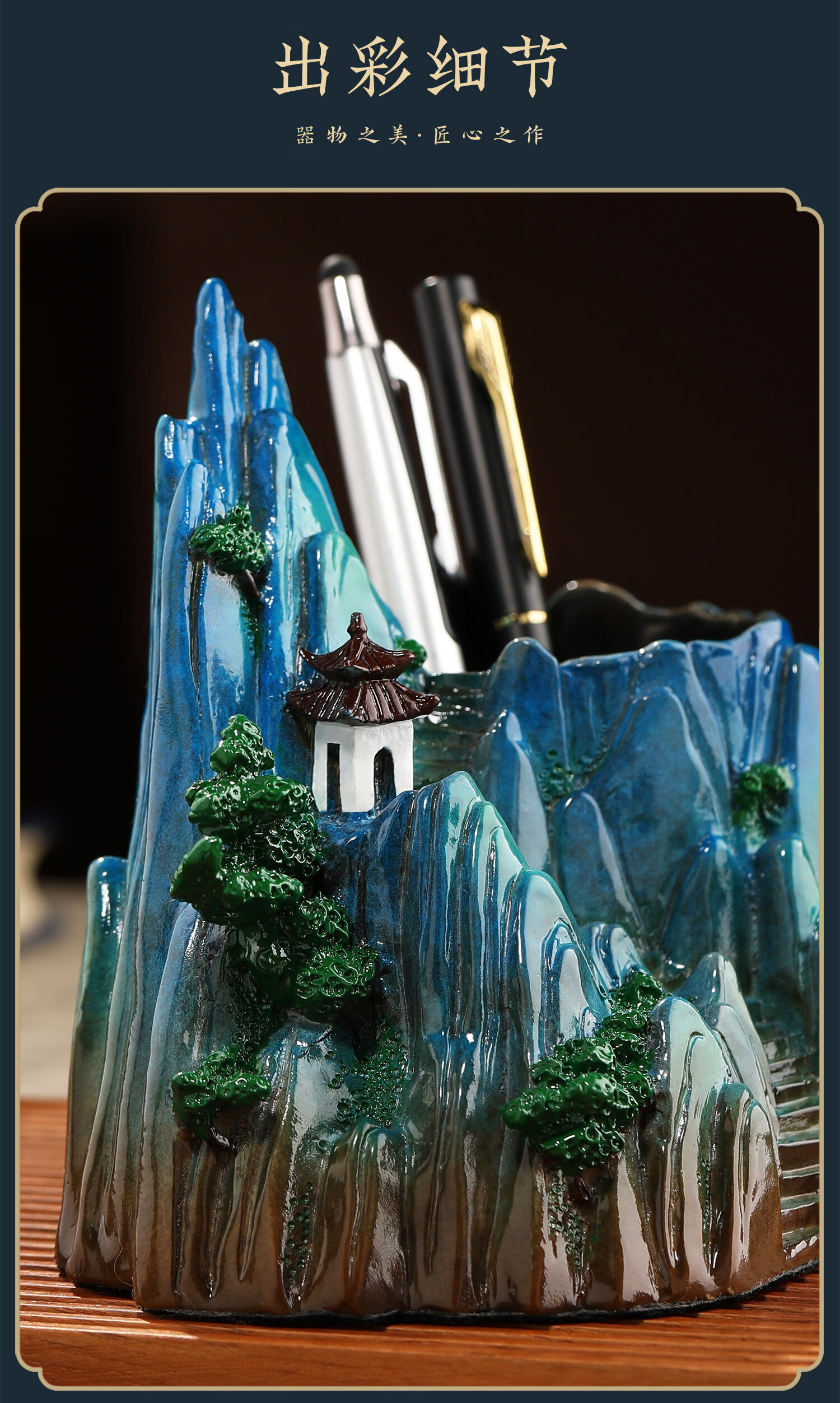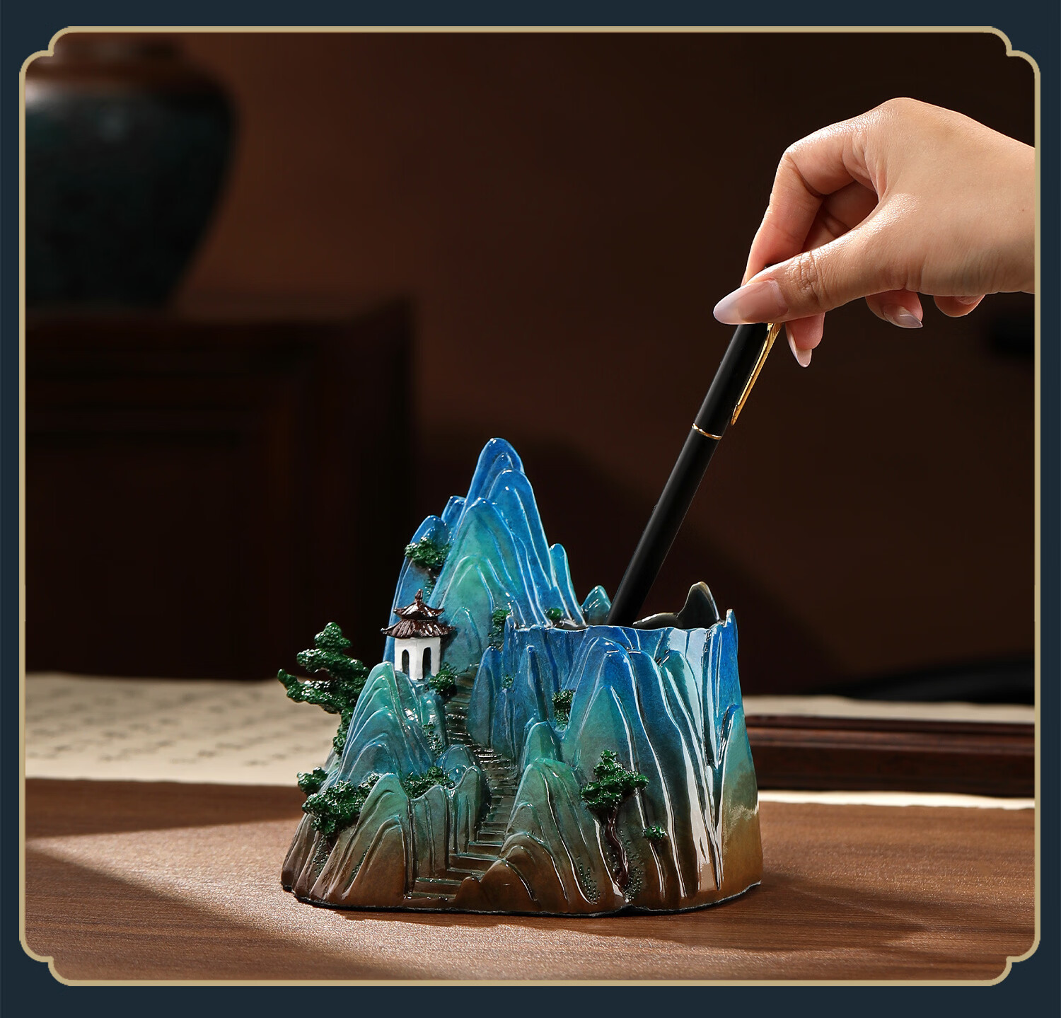 大明铜匠千里江山黄铜笔筒摆件工艺品书房办公桌创意装饰送老师学生礼物 定制款定制费