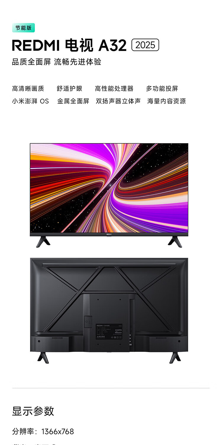 小米(MI)REDMI 电视32英寸 金属全面屏 双扬立体声 A 32 2025节能版 小米电视机 L32RA-RAE 国家补贴 32英寸
