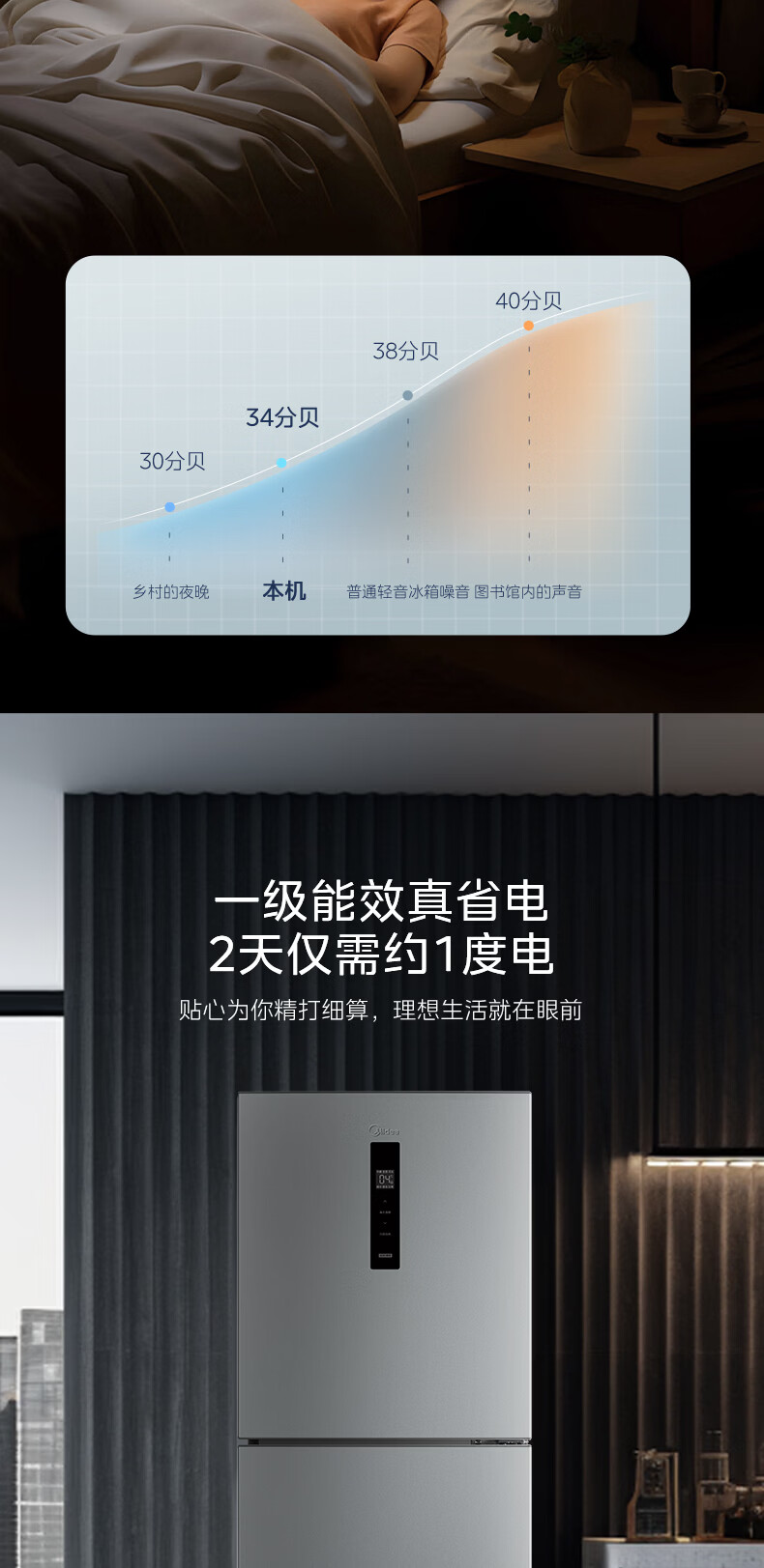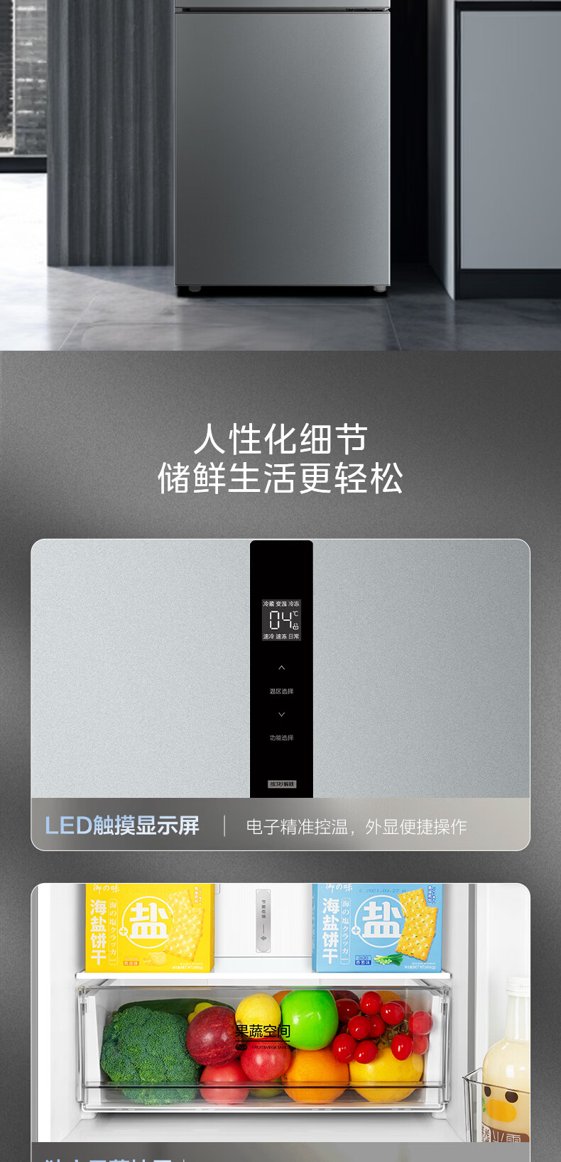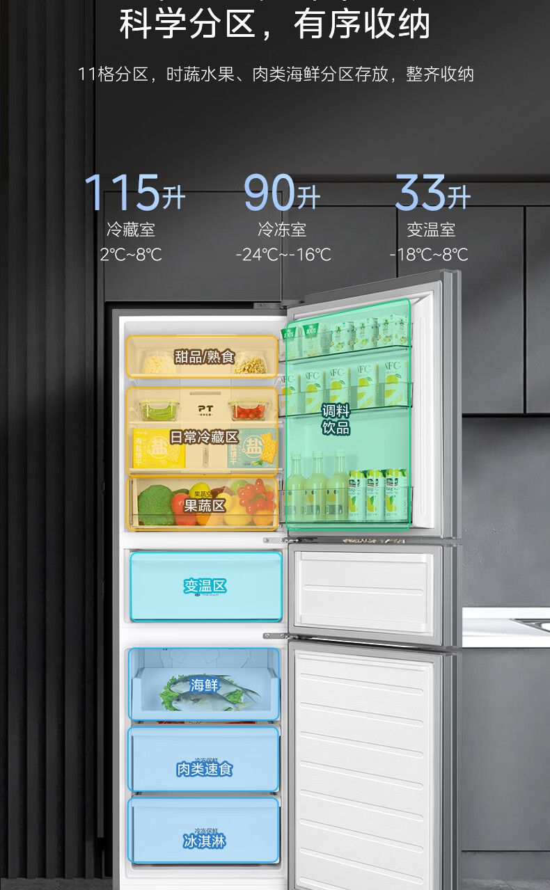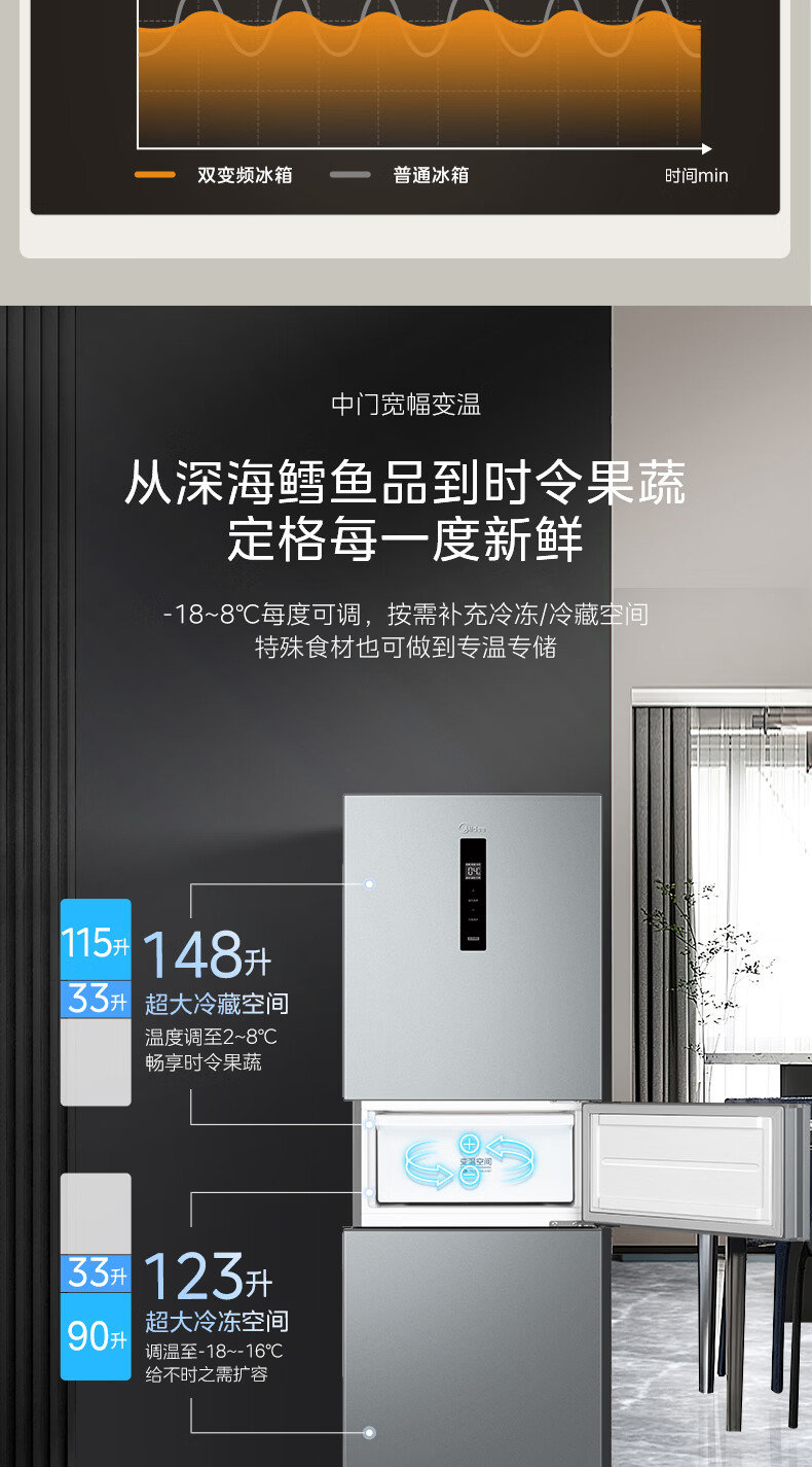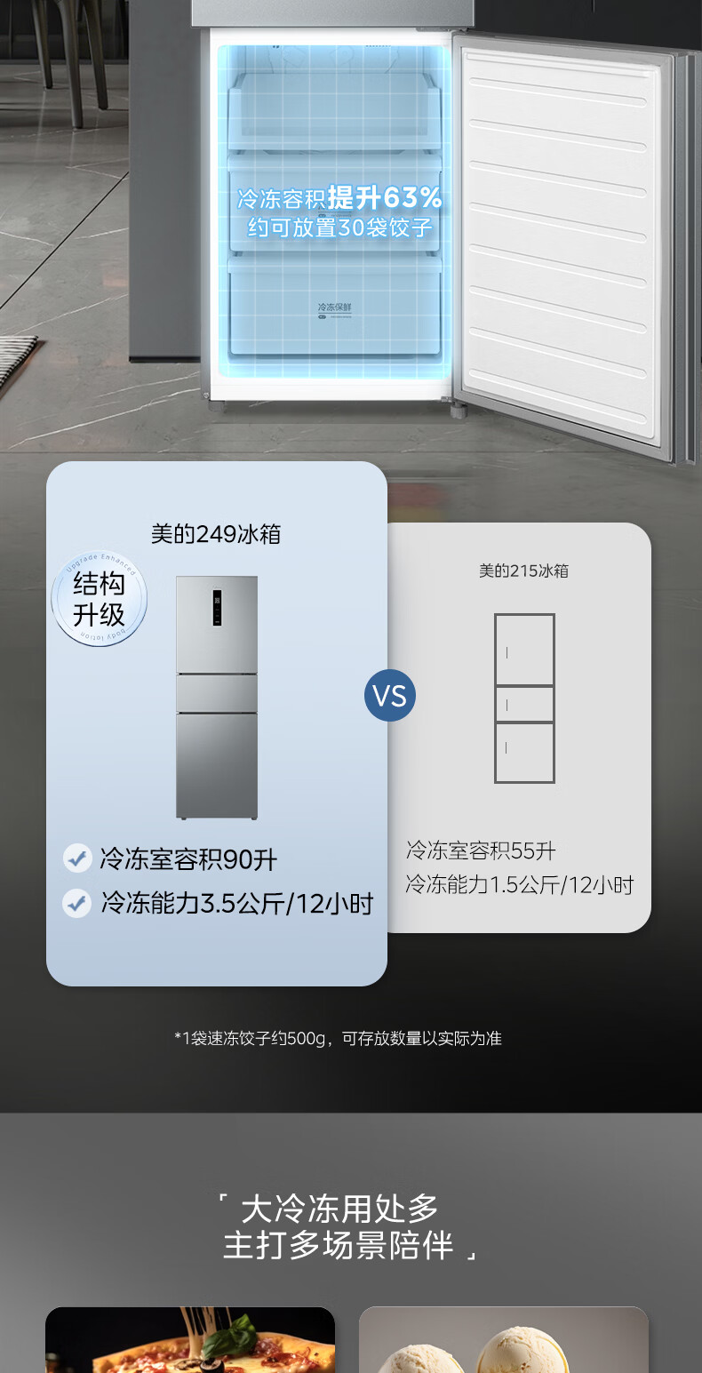 美的(Midea)238升三门冰箱灰色小型风冷家用变频一级能效宿舍租房以旧换新小冰箱MR-249WTPE【国家补贴】