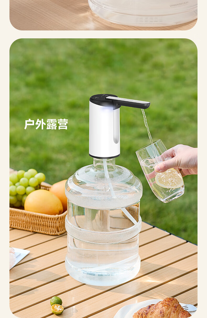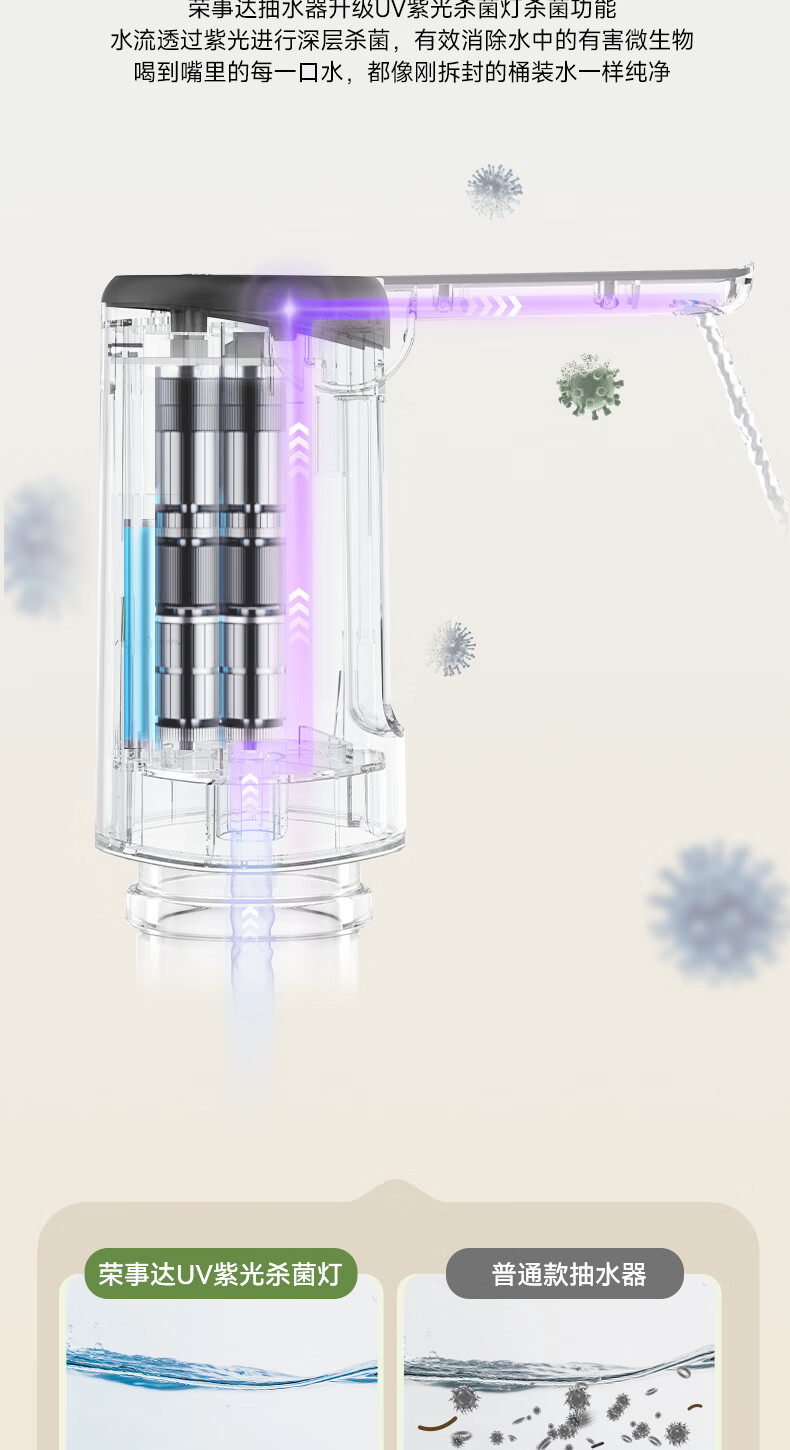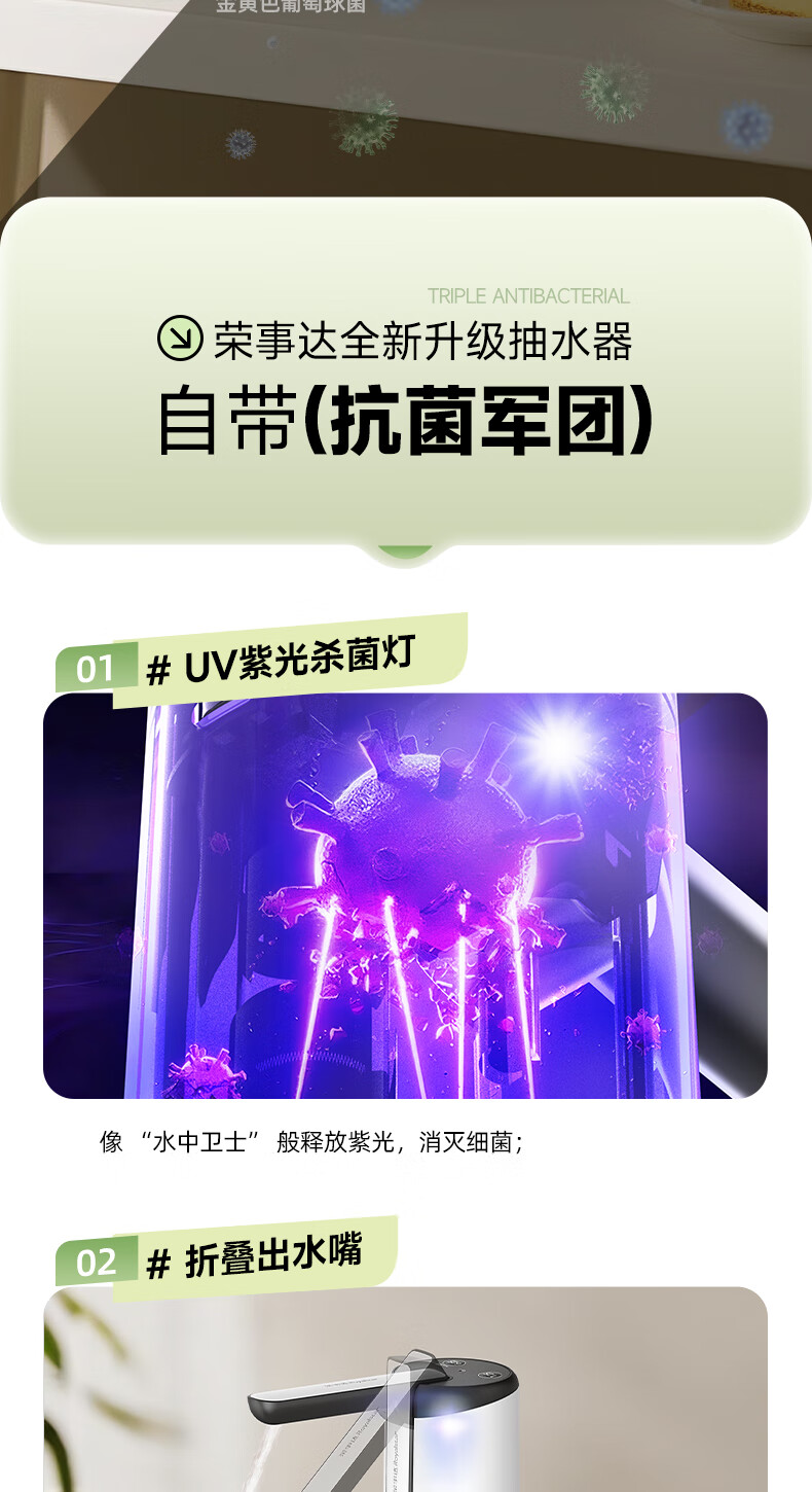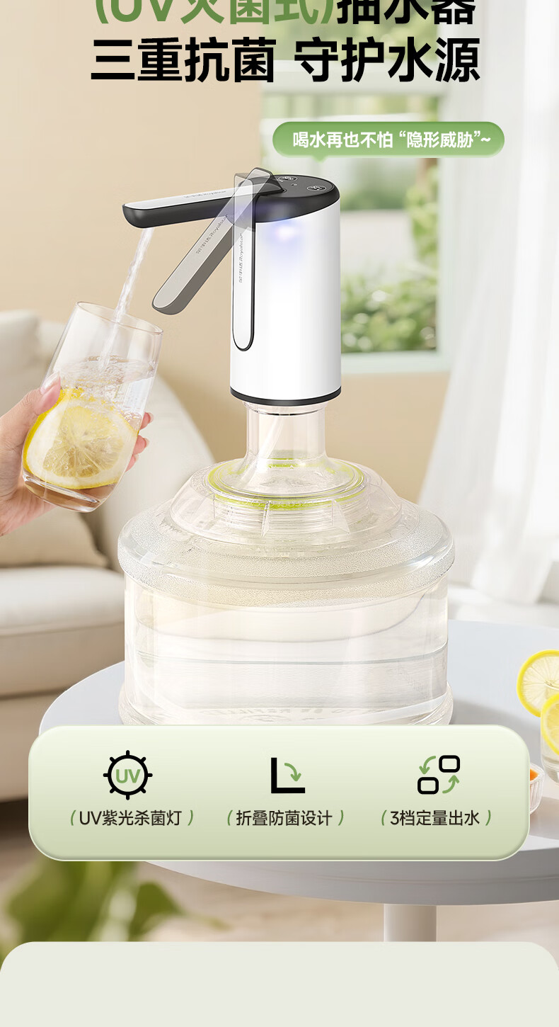 荣事达抽水器桶装水饮水机抽水泵电动吸水器水桶压水器取水器自动上水器 【强推消菌灯】可抑菌+折叠