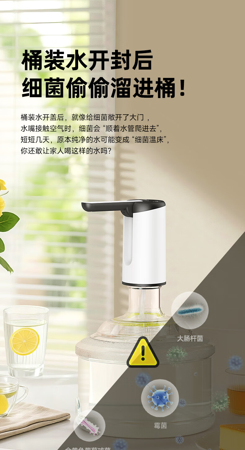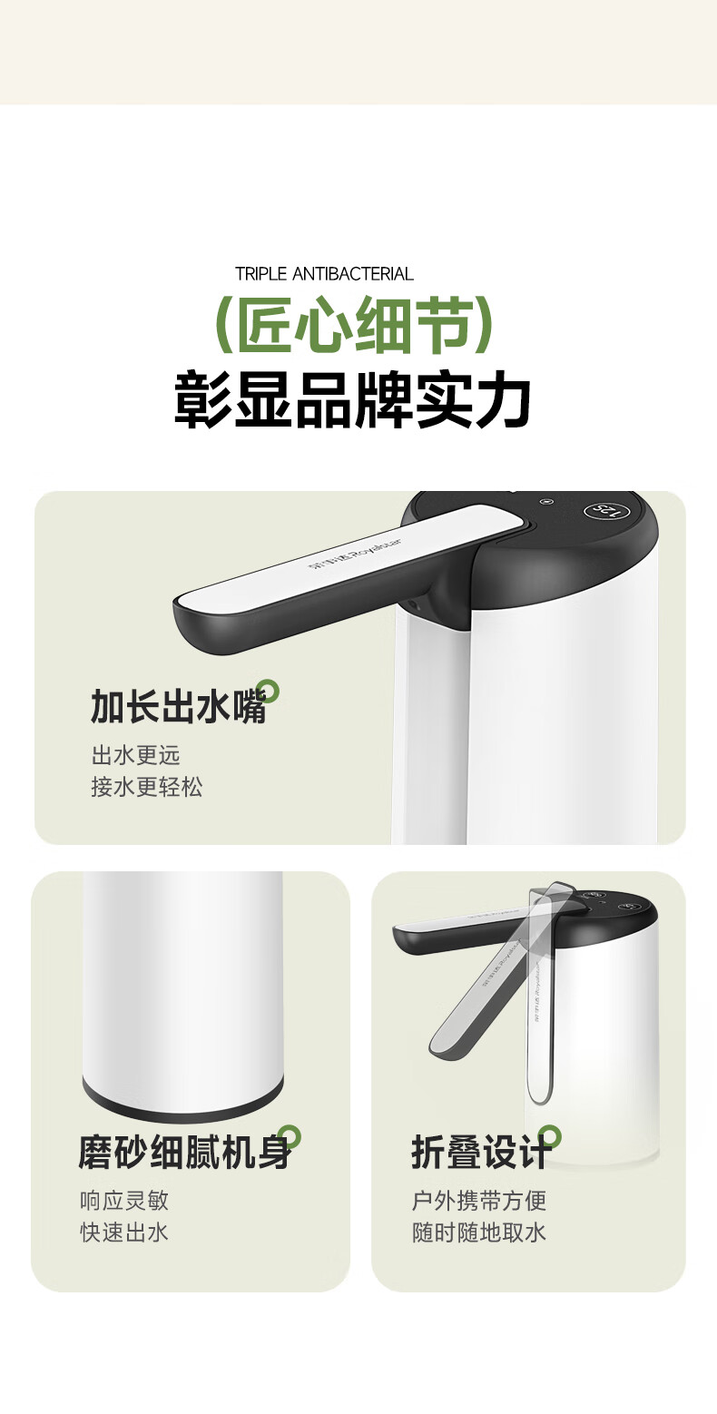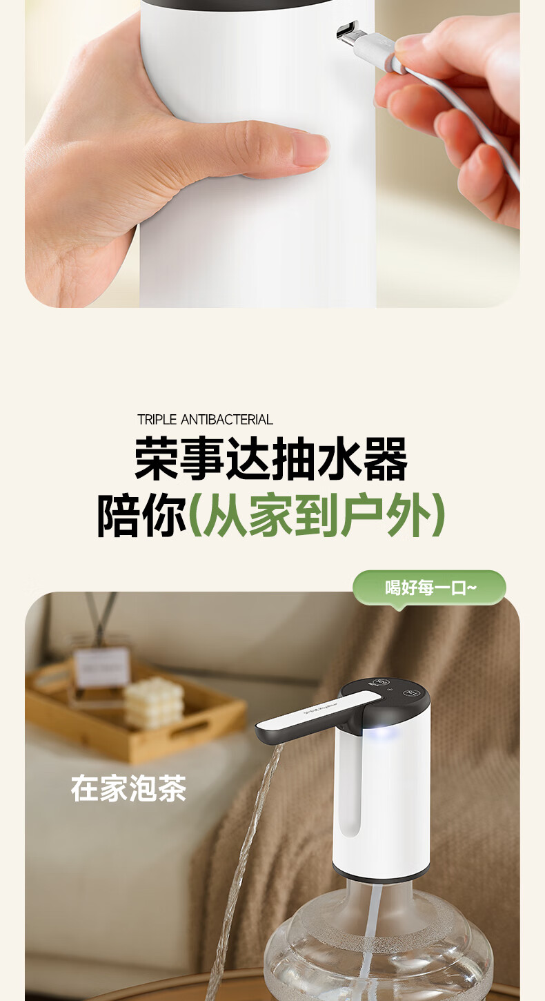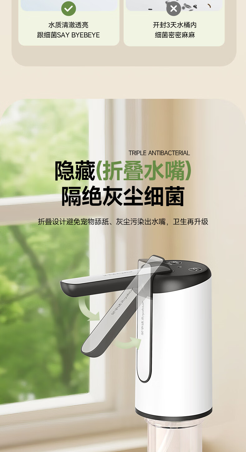 荣事达抽水器桶装水饮水机抽水泵电动吸水器水桶压水器取水器自动上水器 【强推消菌灯】可抑菌+折叠