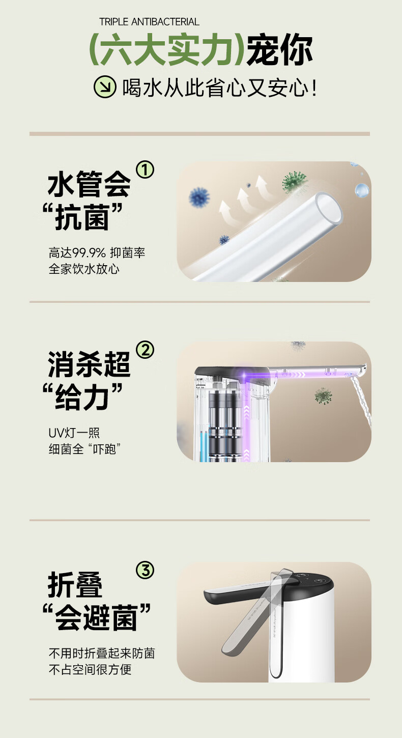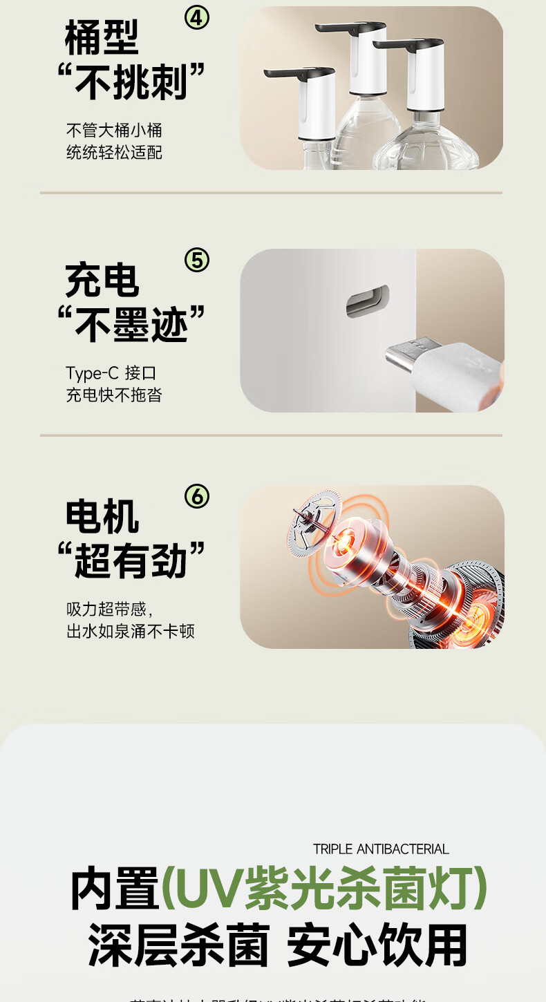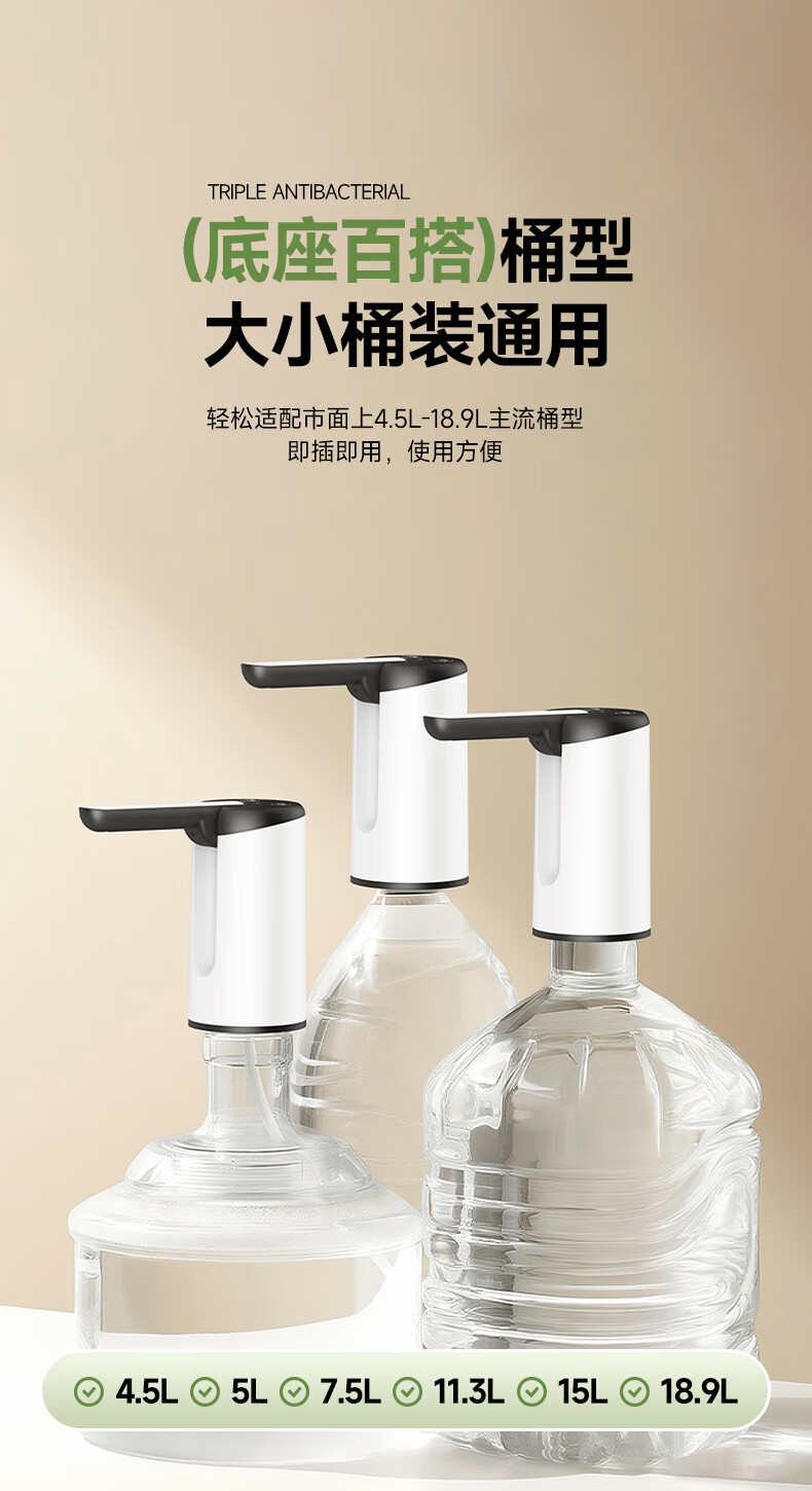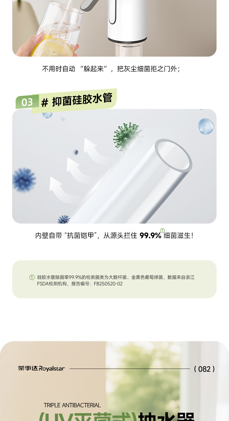 荣事达抽水器桶装水饮水机抽水泵电动吸水器水桶压水器取水器自动上水器 【强推消菌灯】可抑菌+折叠