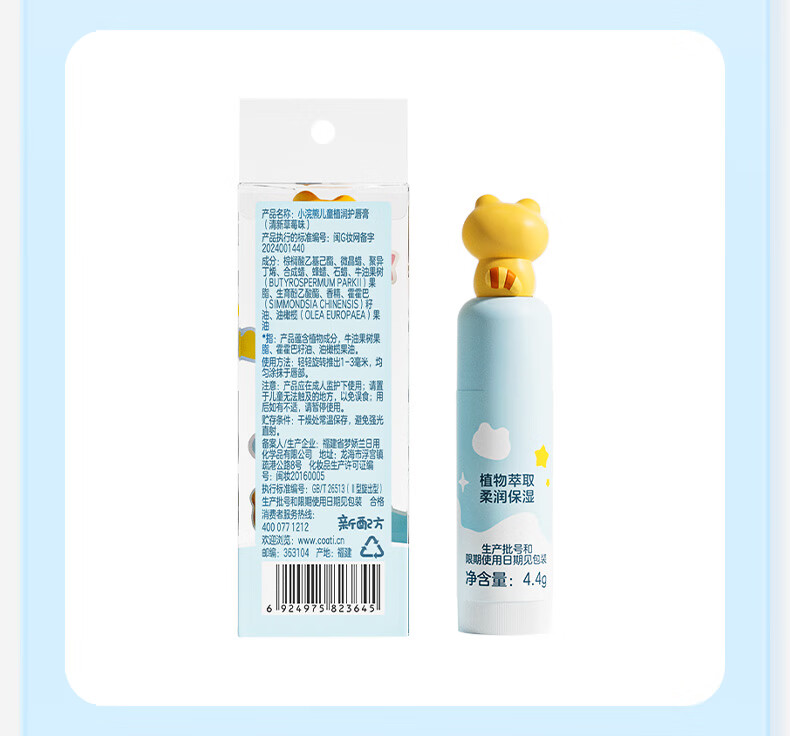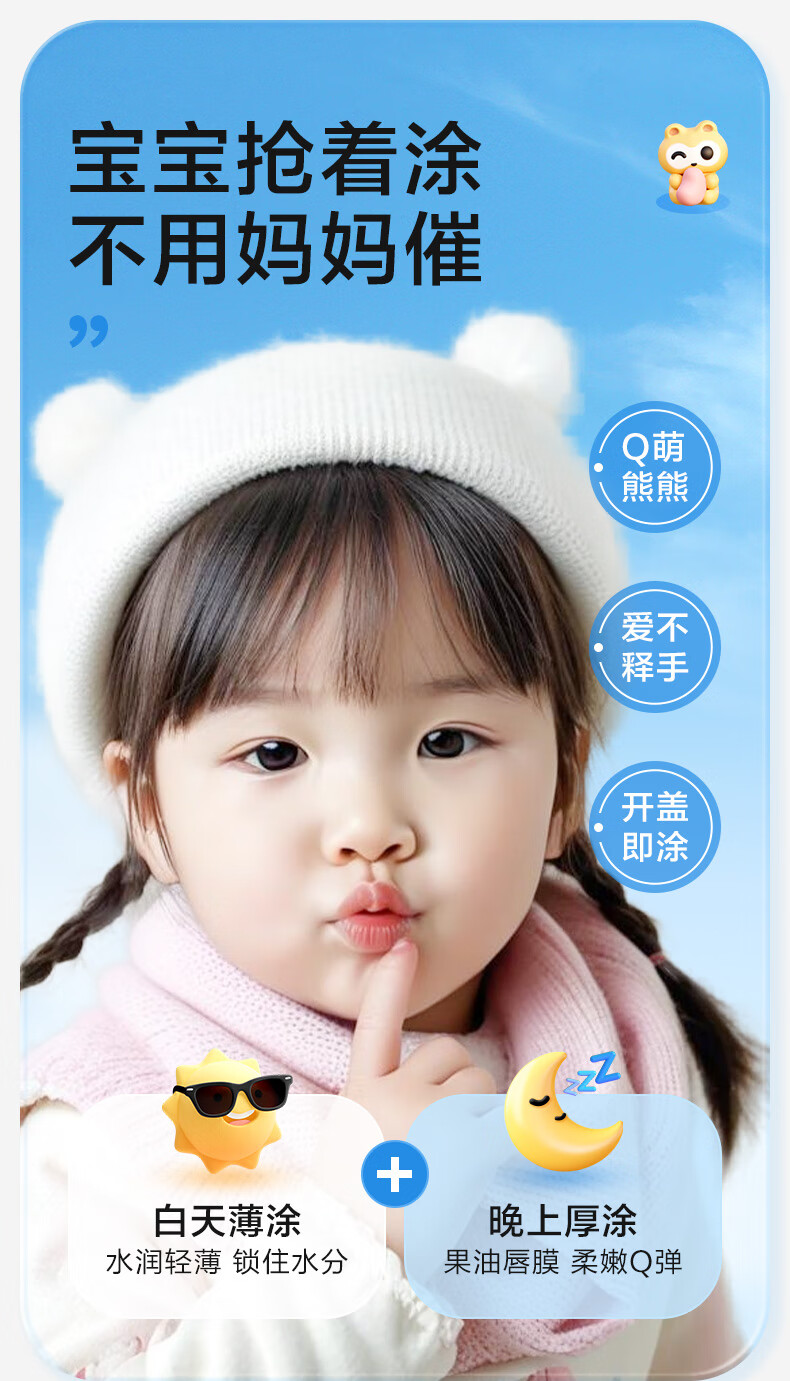 小浣熊儿童植润护唇膏清新草莓味保湿滋润防干裂婴儿润唇膏宝宝护唇膏 【2支】润唇膏香橙味3.8g