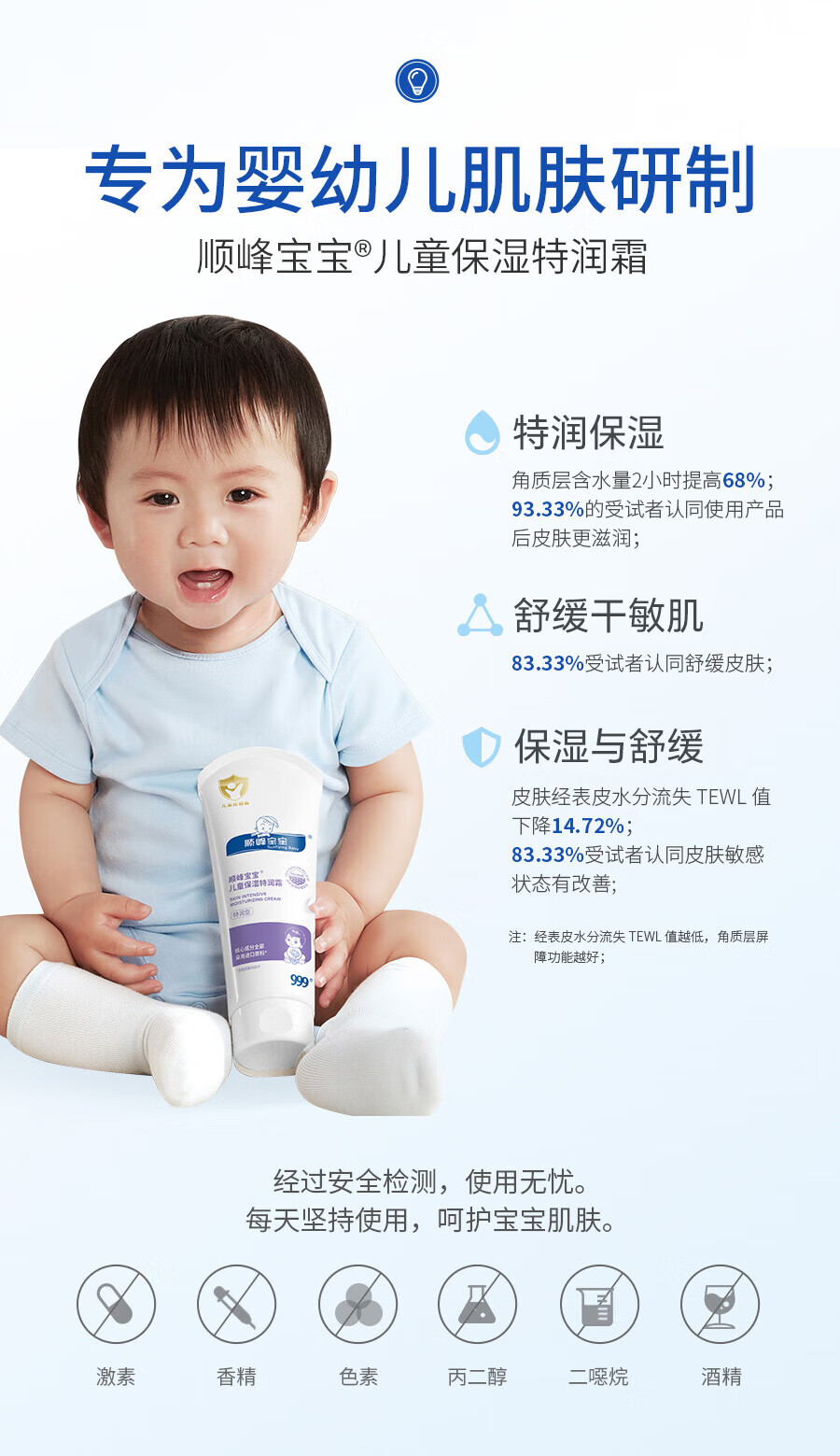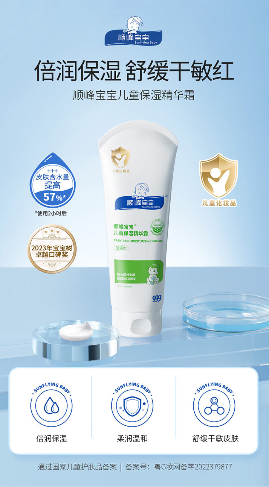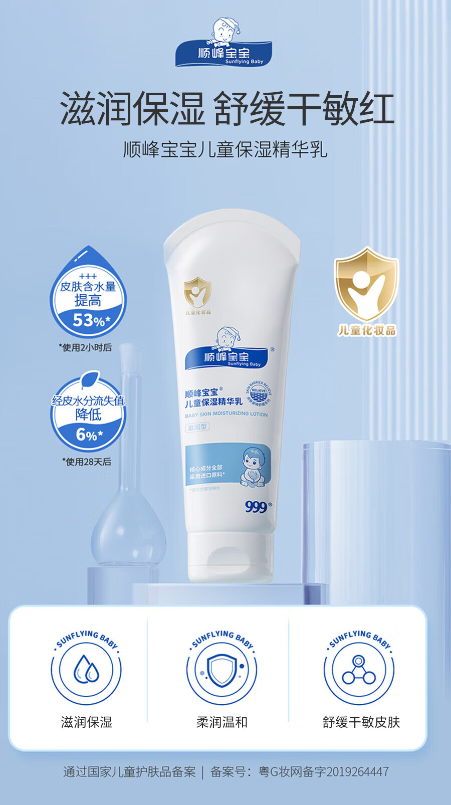 顺峰宝宝面霜100g保湿精华霜保湿特润霜儿童婴幼儿温和润肤护肤秋冬补水 精华乳100g(清爽滋润)