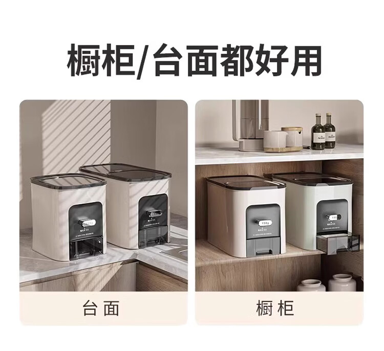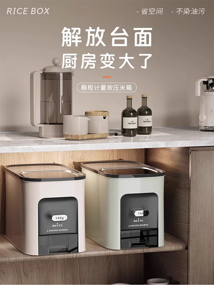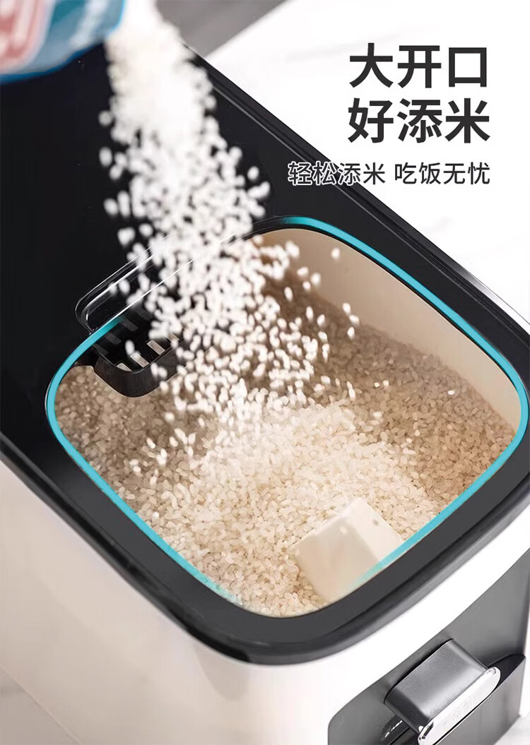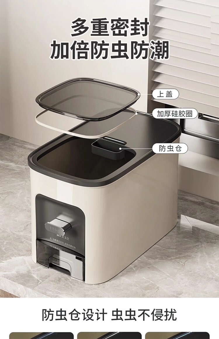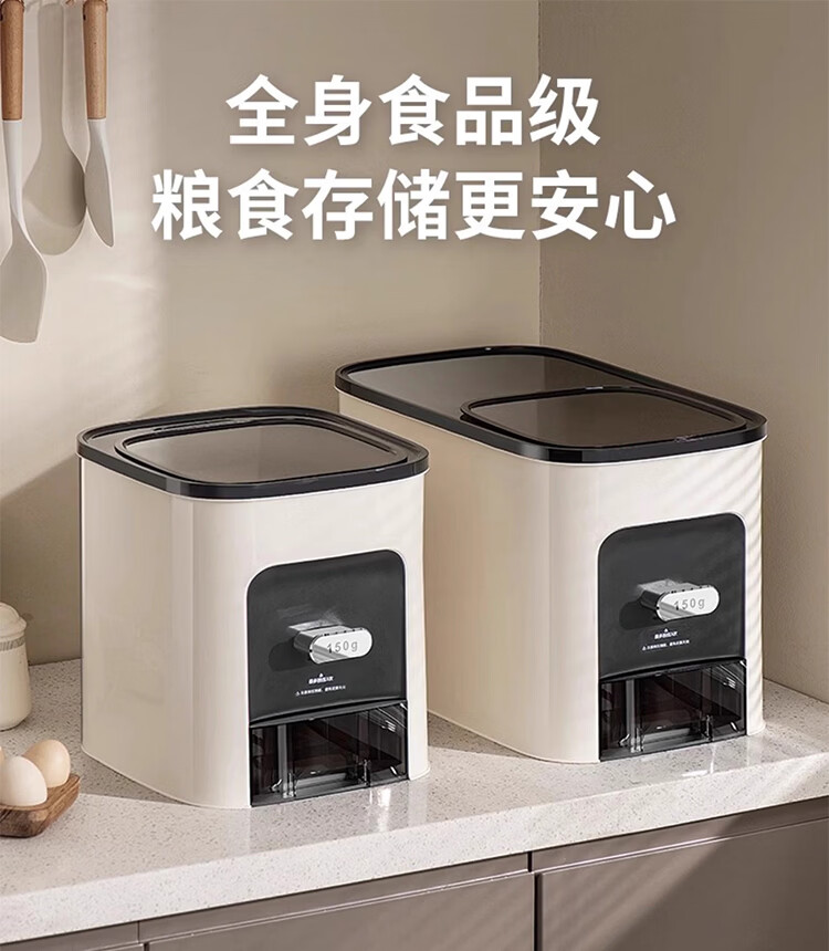 筏芯德国米桶20斤装2025新款防虫防潮家用密封食品级米箱嵌入式米缸 【不卡米 定量取米】20斤装奶油白 橱柜计量米箱