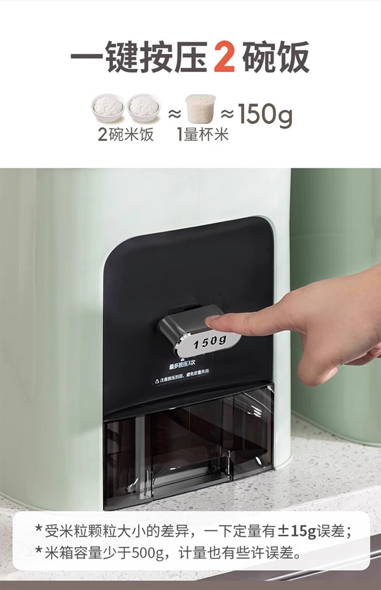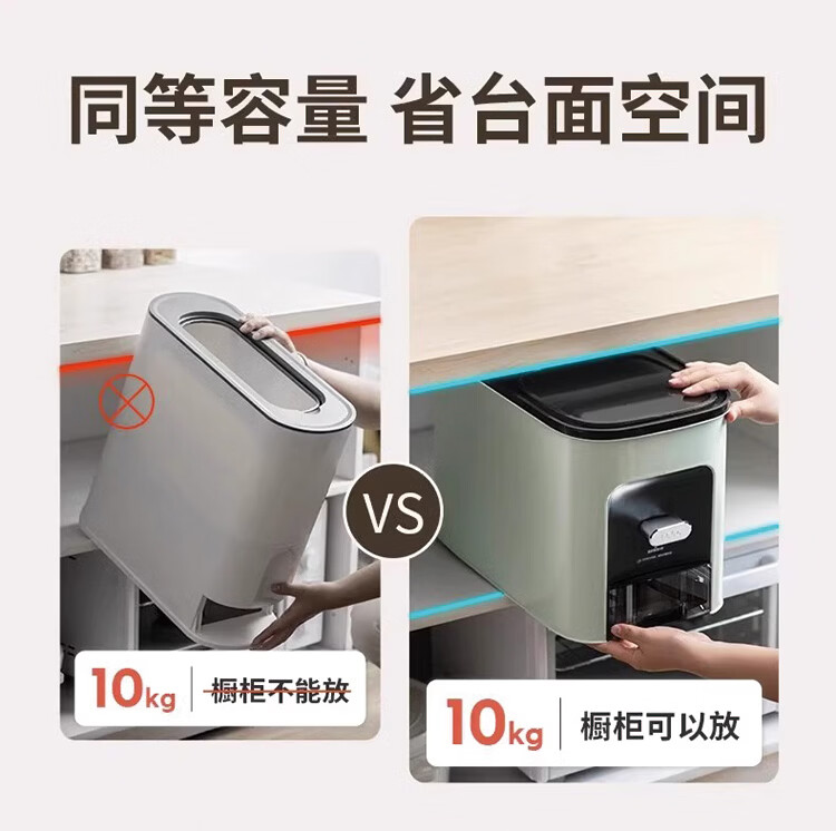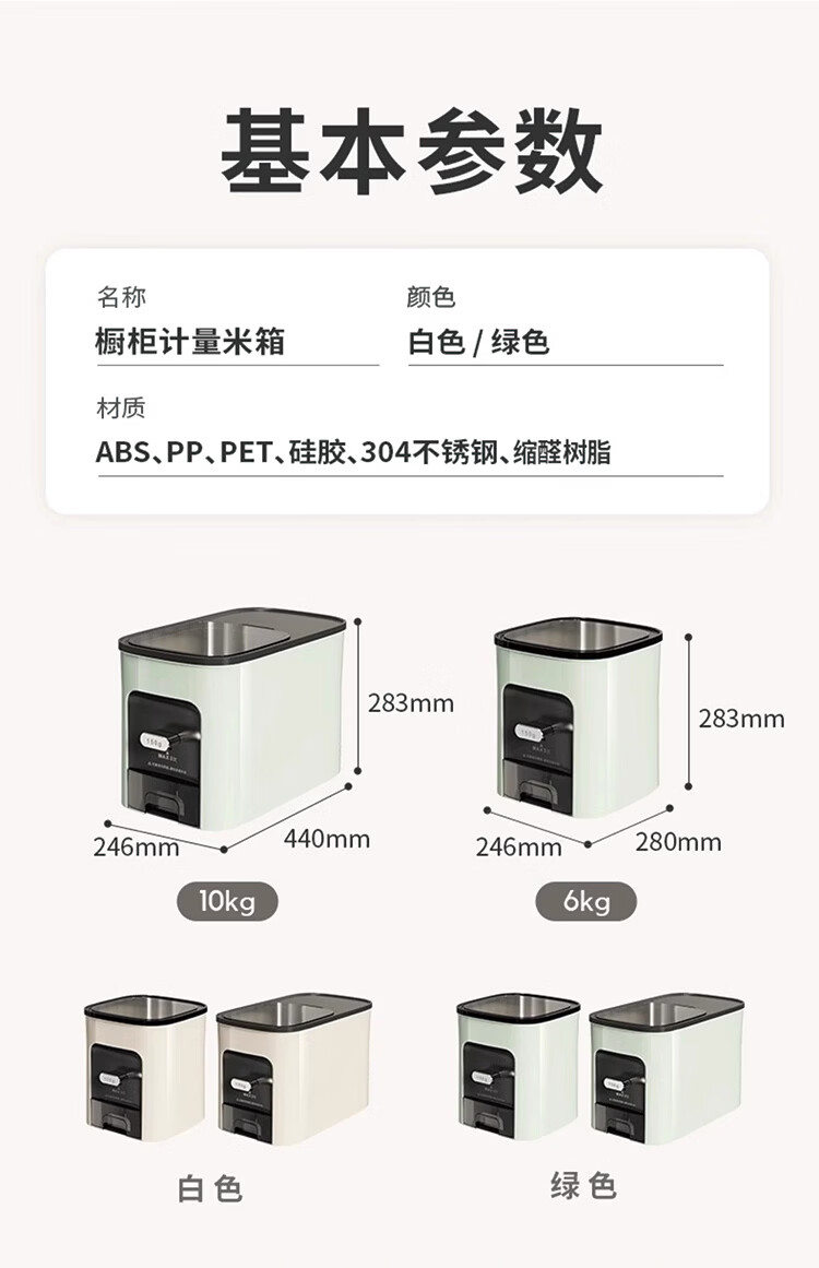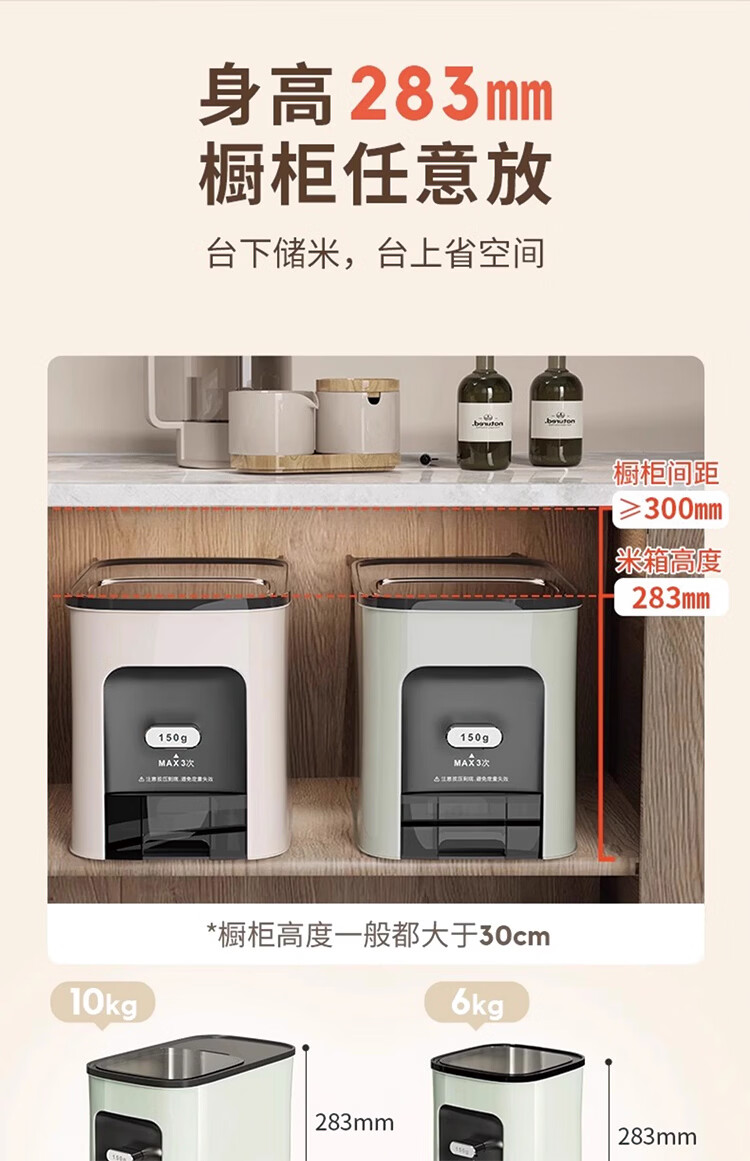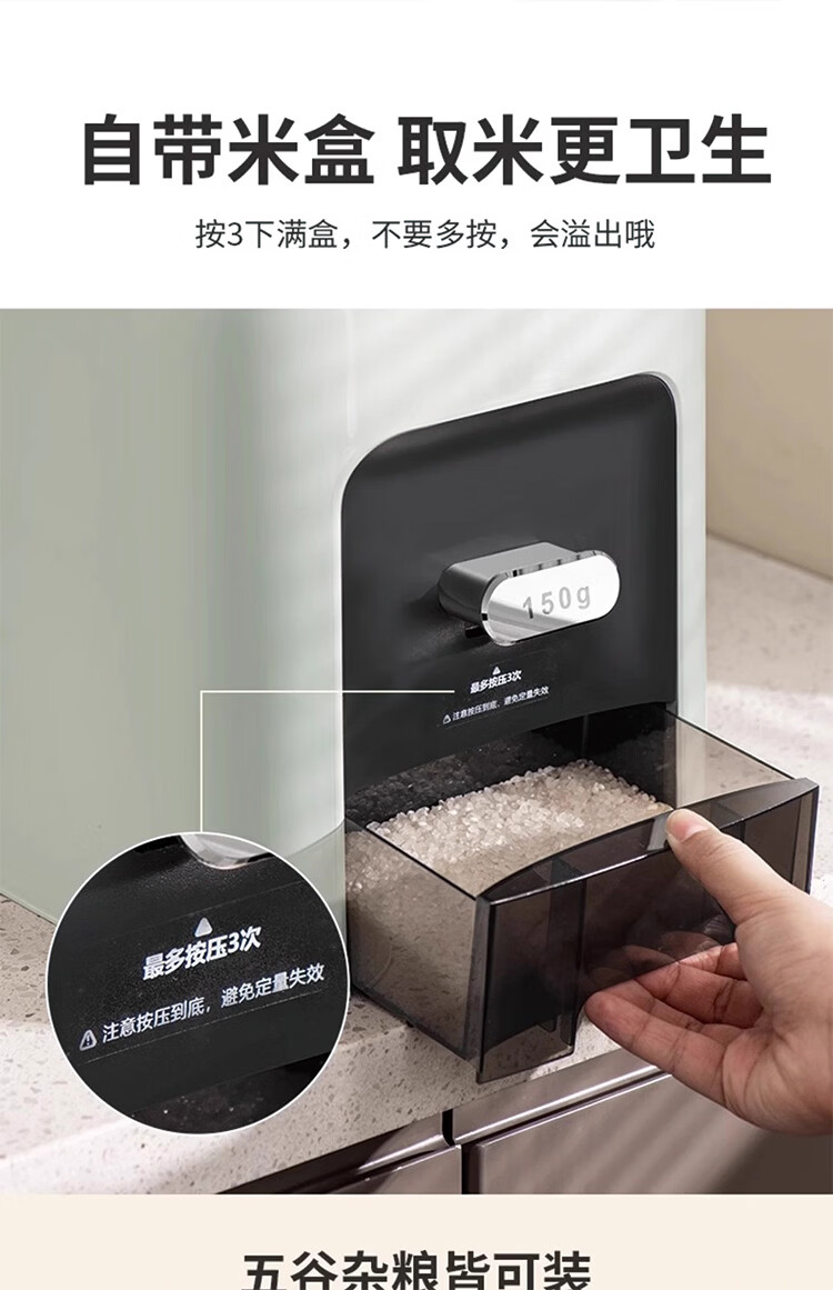 筏芯德国米桶20斤装2025新款防虫防潮家用密封食品级米箱嵌入式米缸 【不卡米 定量取米】20斤装奶油白 橱柜计量米箱