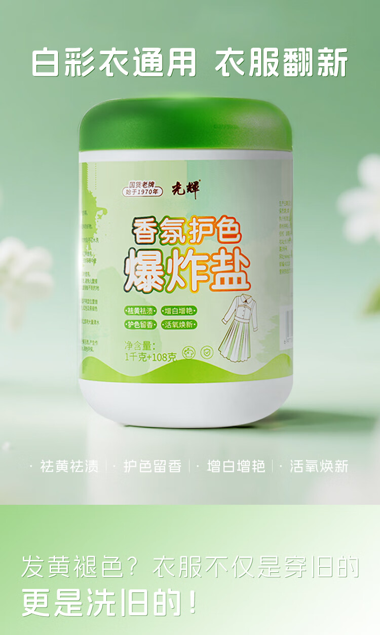 光輝香氛爆炸盐彩漂粉漂白剂儿童衣物去渍剂去污去黄增白增艳 1108克:家庭实惠大桶装