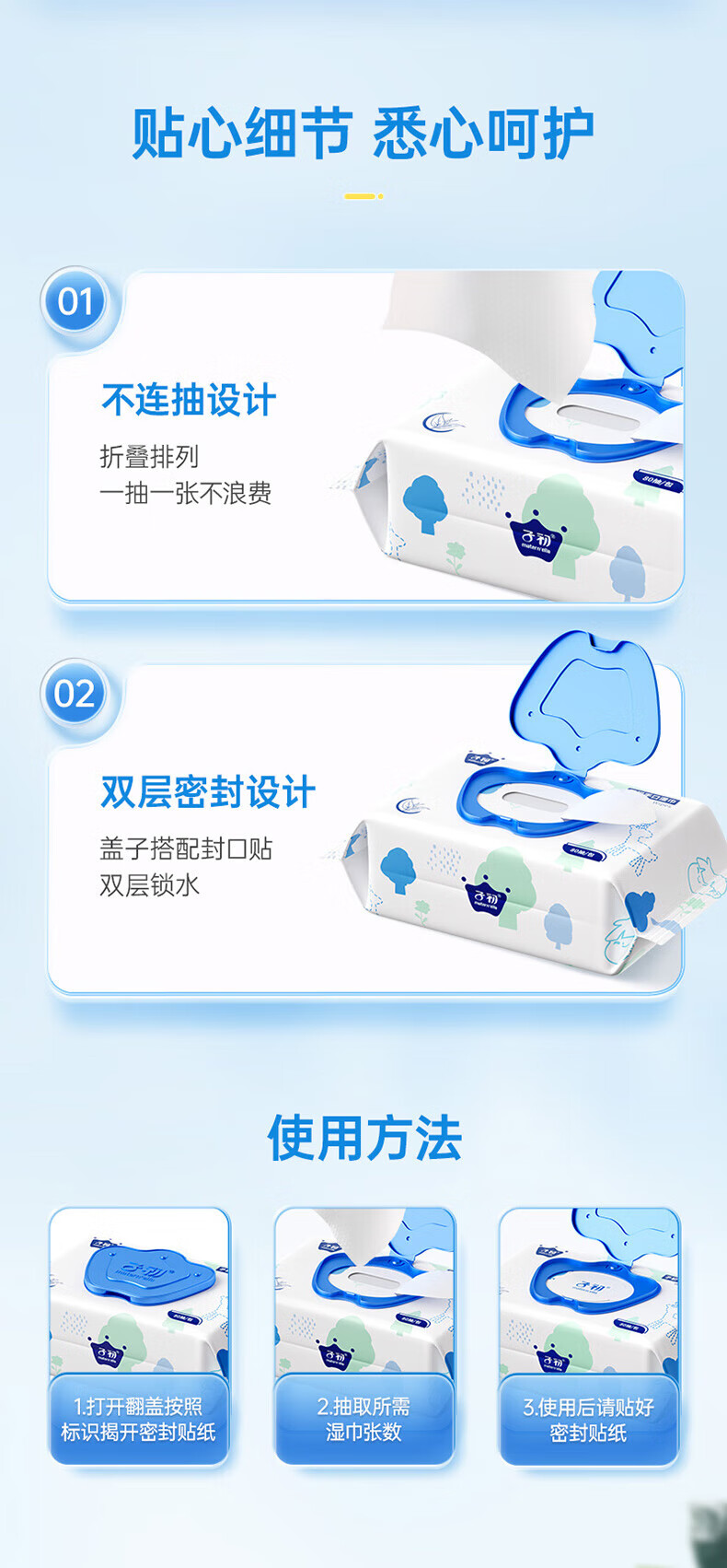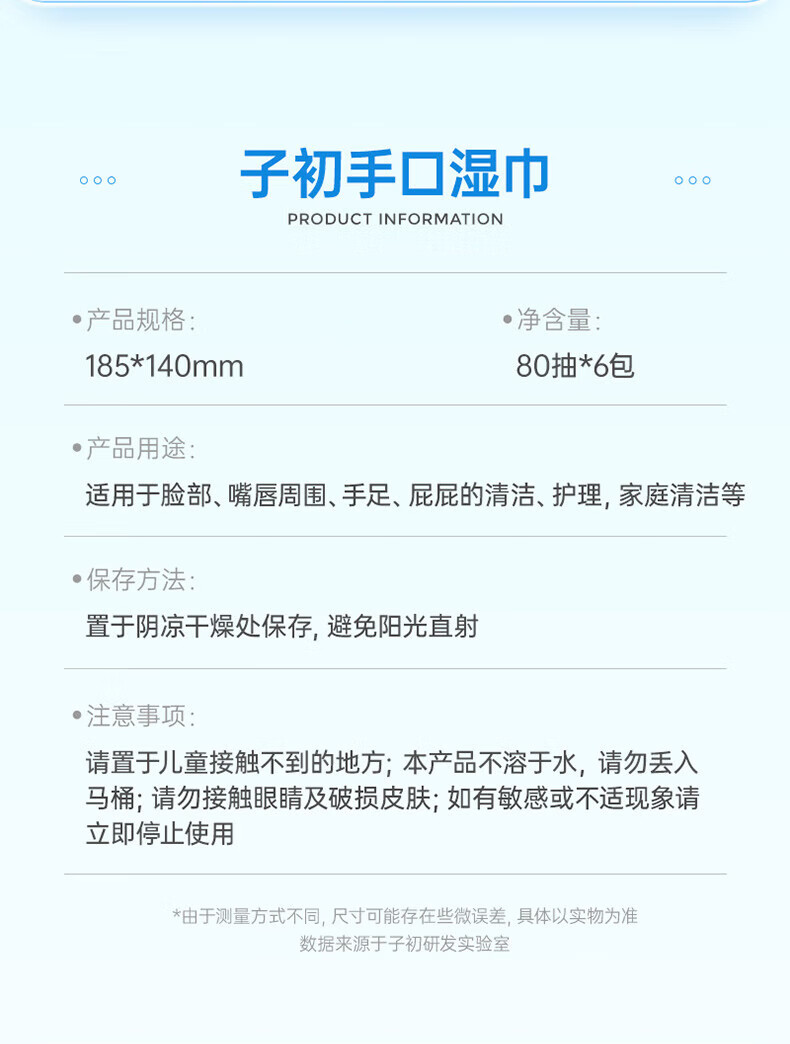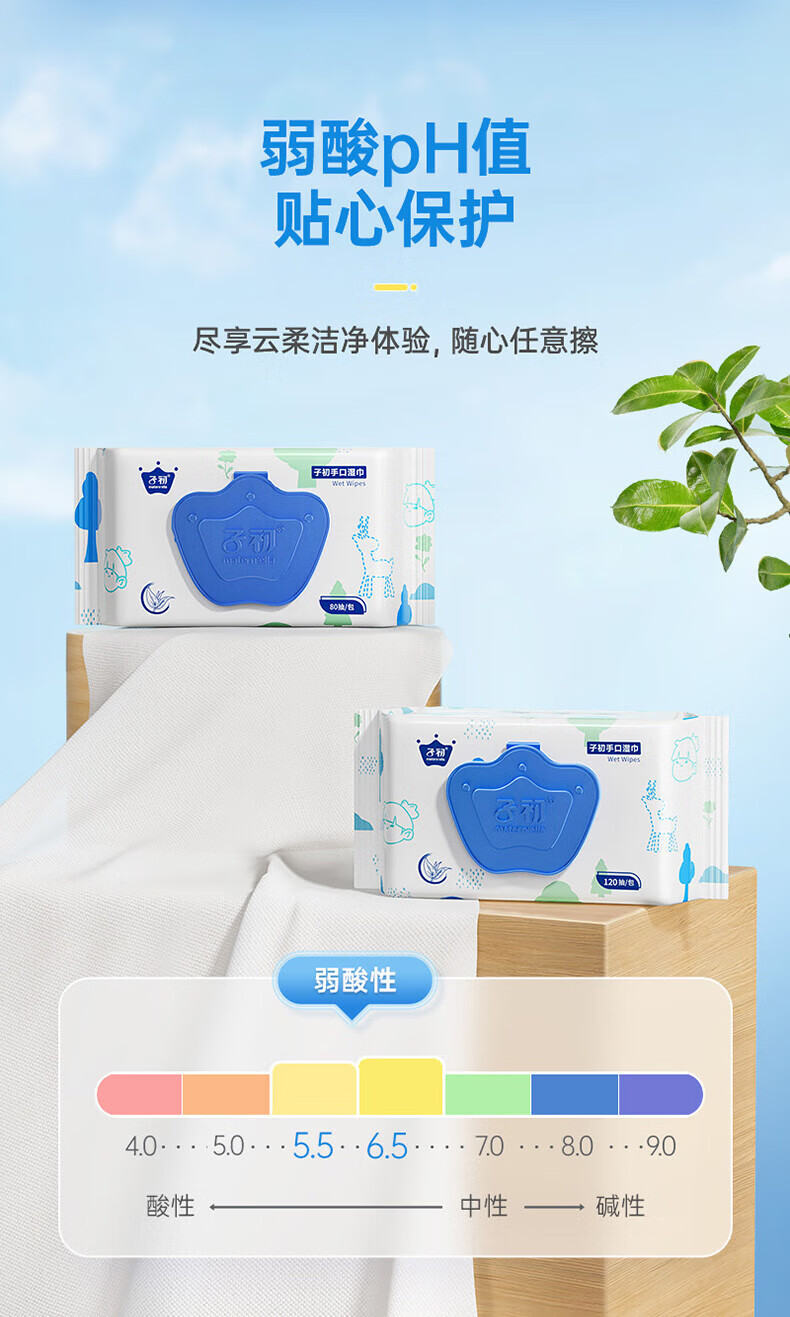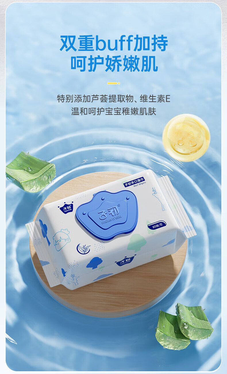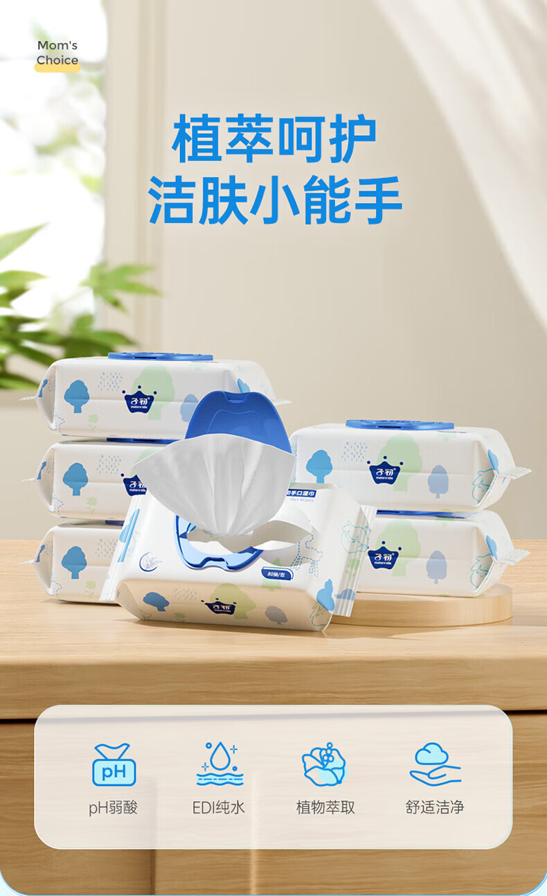 子初婴儿湿巾 新生儿湿纸巾 宝宝手口柔湿巾80抽*6包