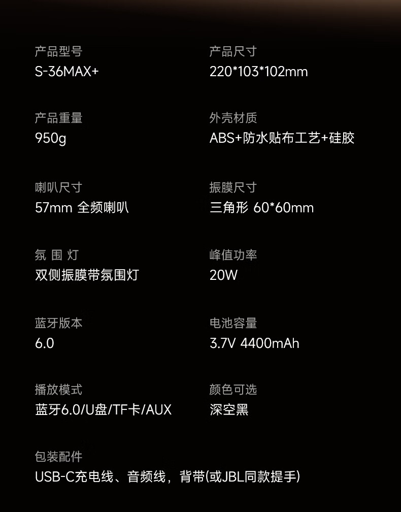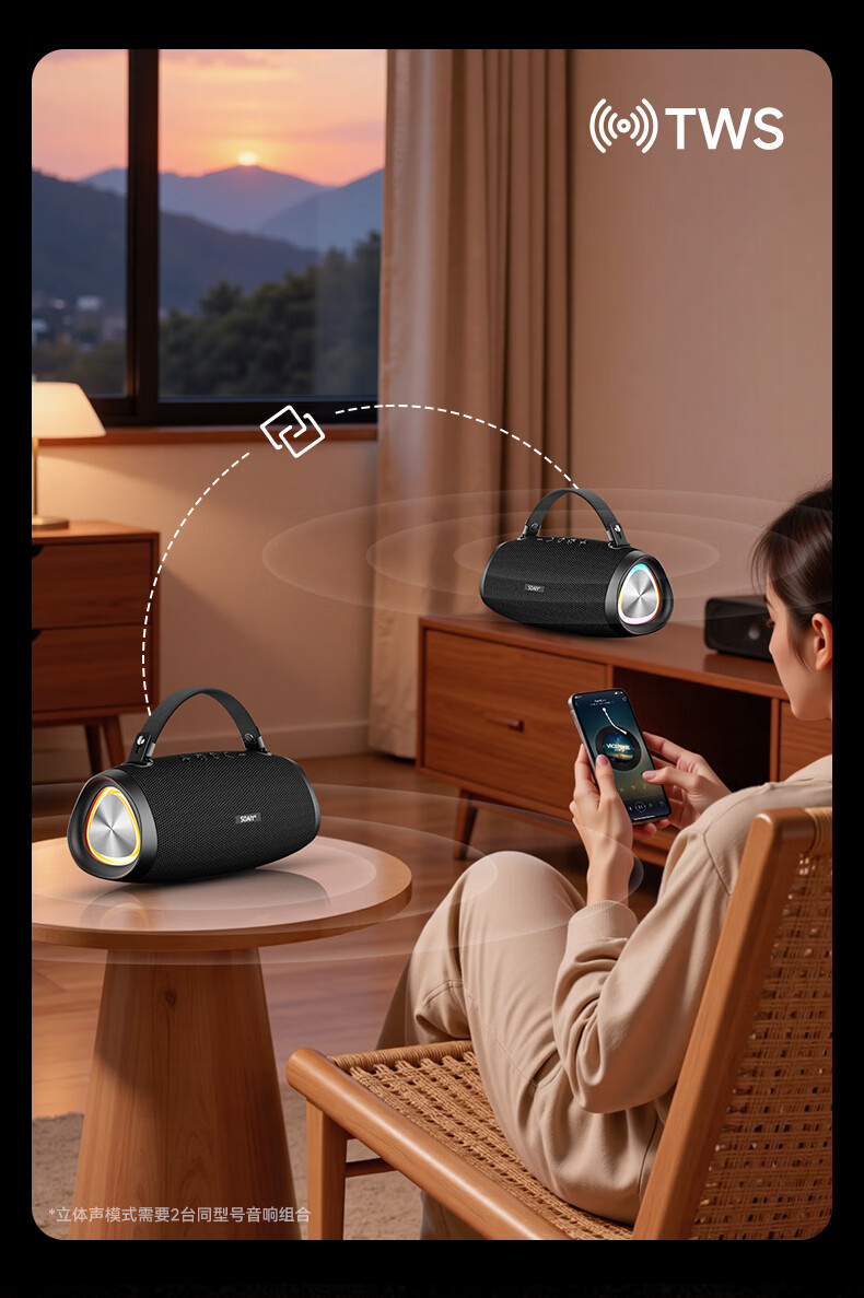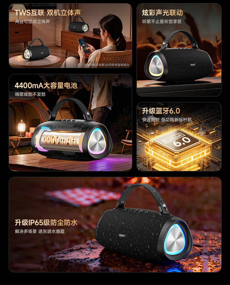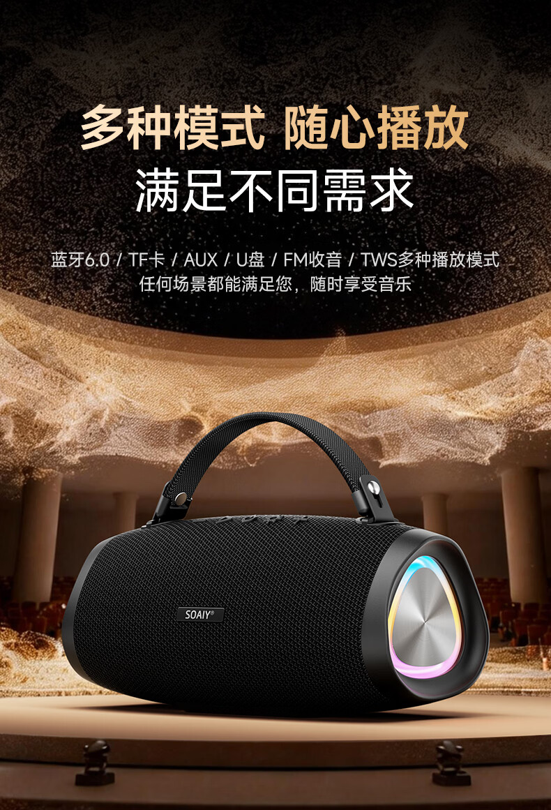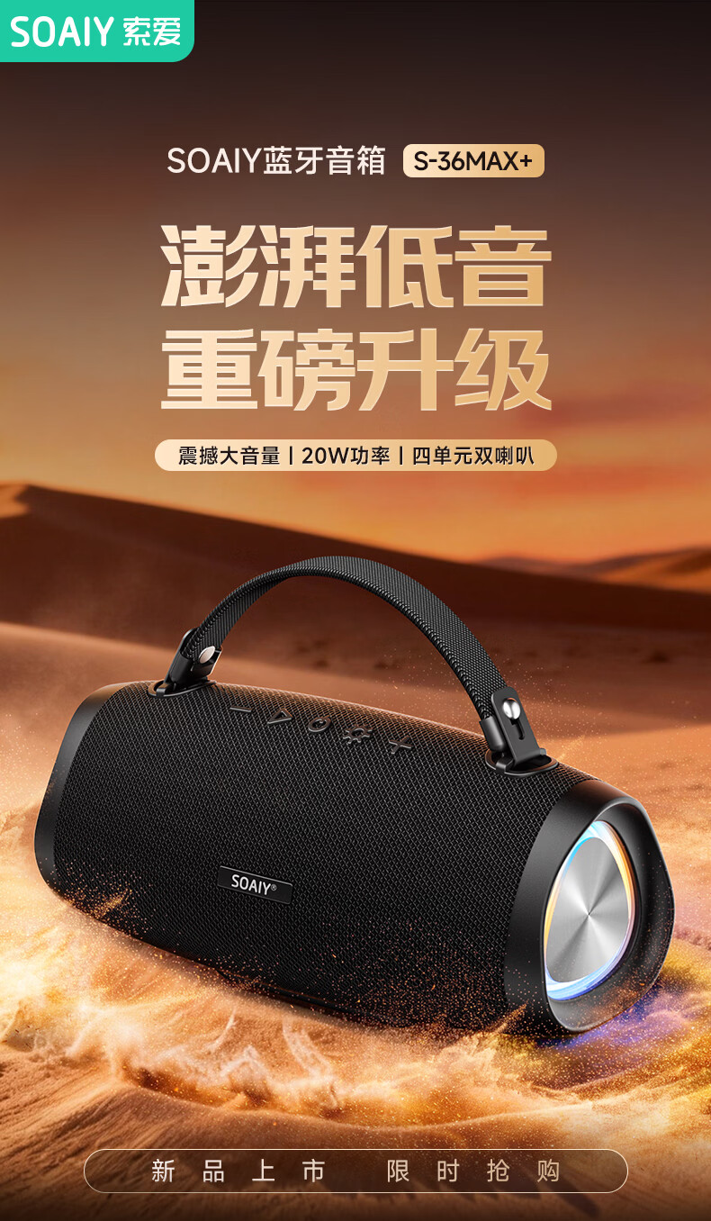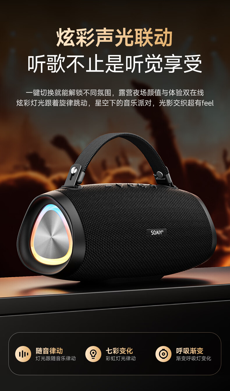 索爱(soaiy)S36MAX旗舰款大功率无线蓝牙音箱户外露营便携防水小音响广场舞车载电脑低音炮收款U盘高音质礼物