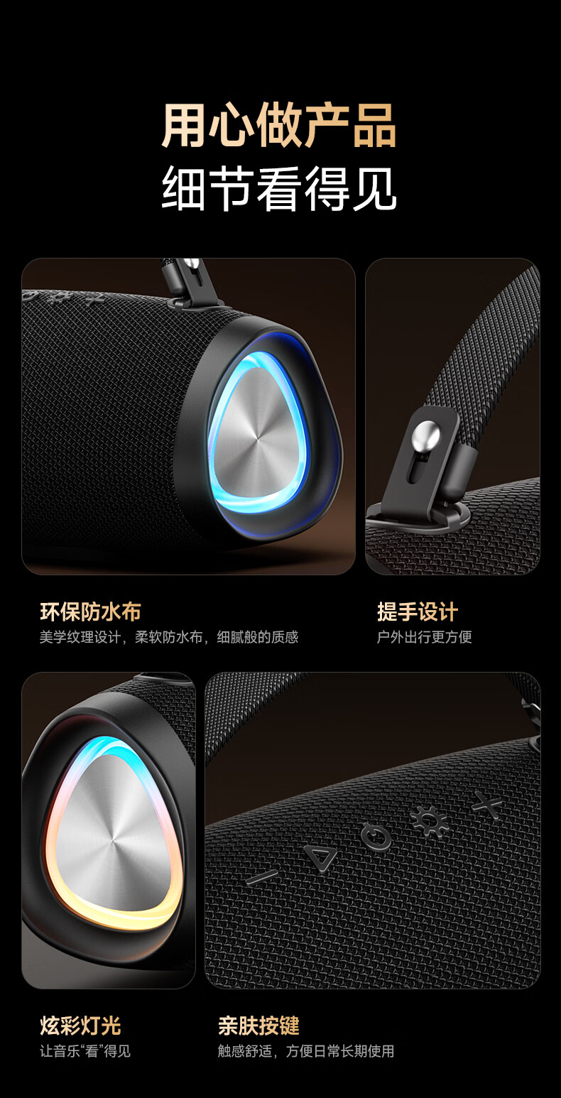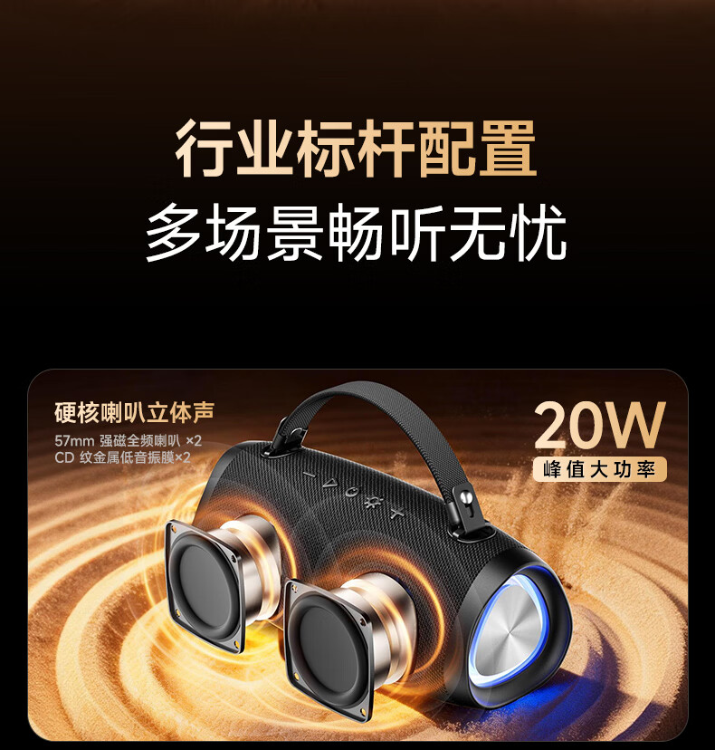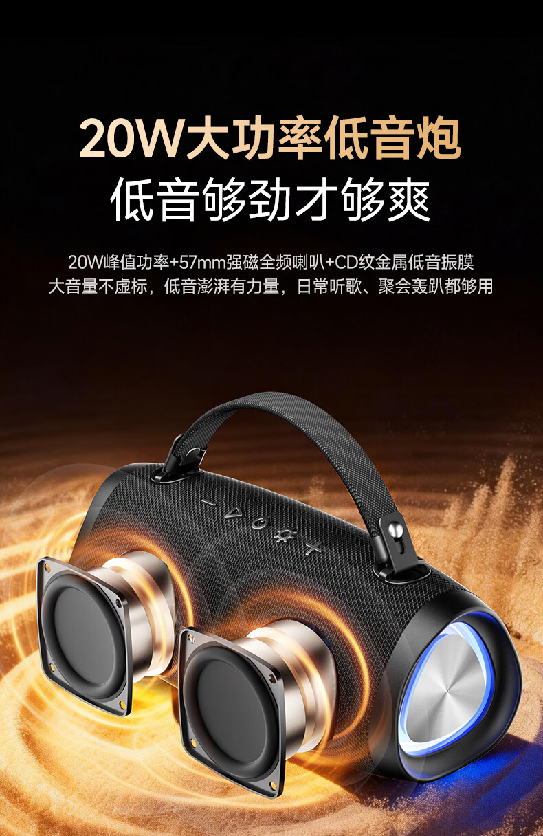 【严选直发】【立体大音量】手提蓝牙音箱迷你家用音响便携式插卡电脑桌面低音炮户外旅行骑行便携 360°全景环绕音+精致小巧便携+多模式播放-曜石黑