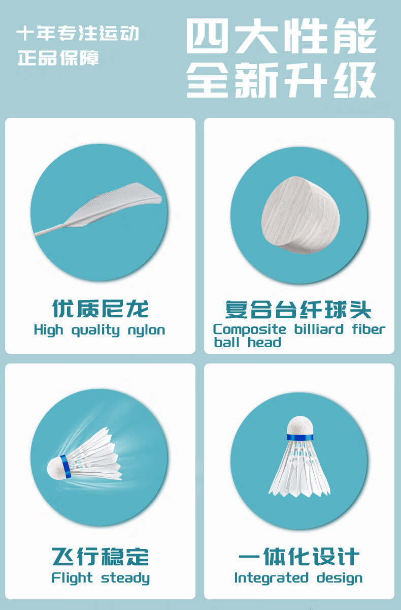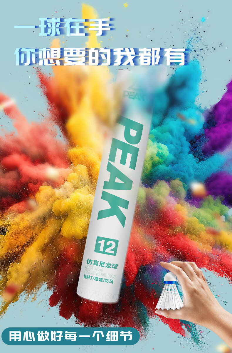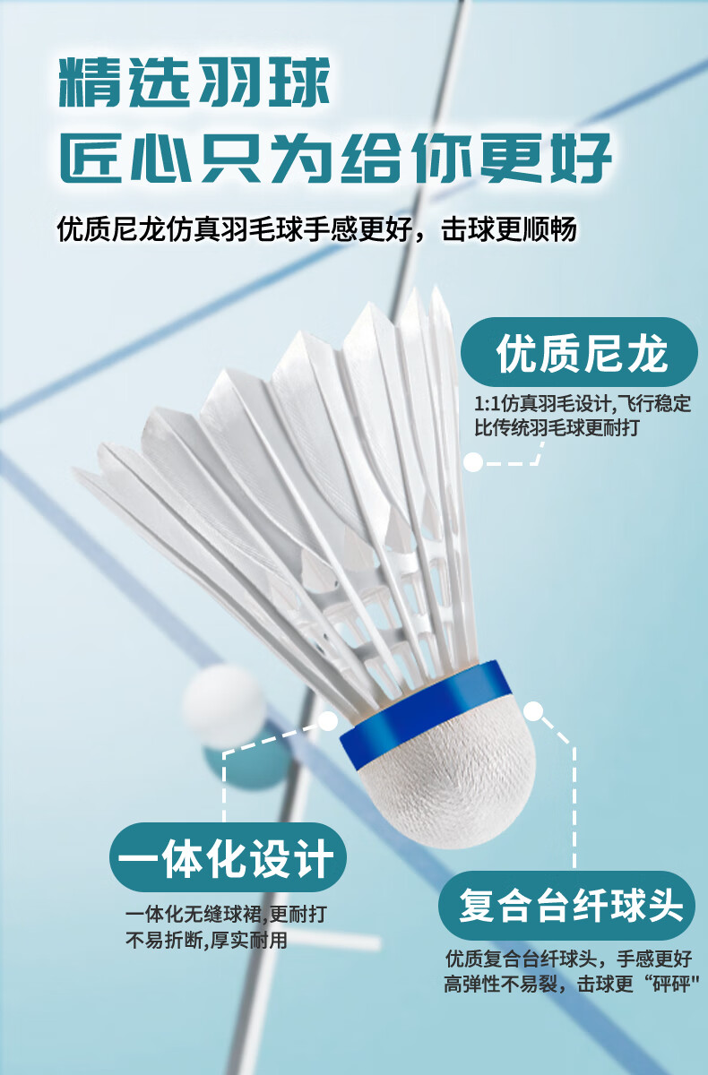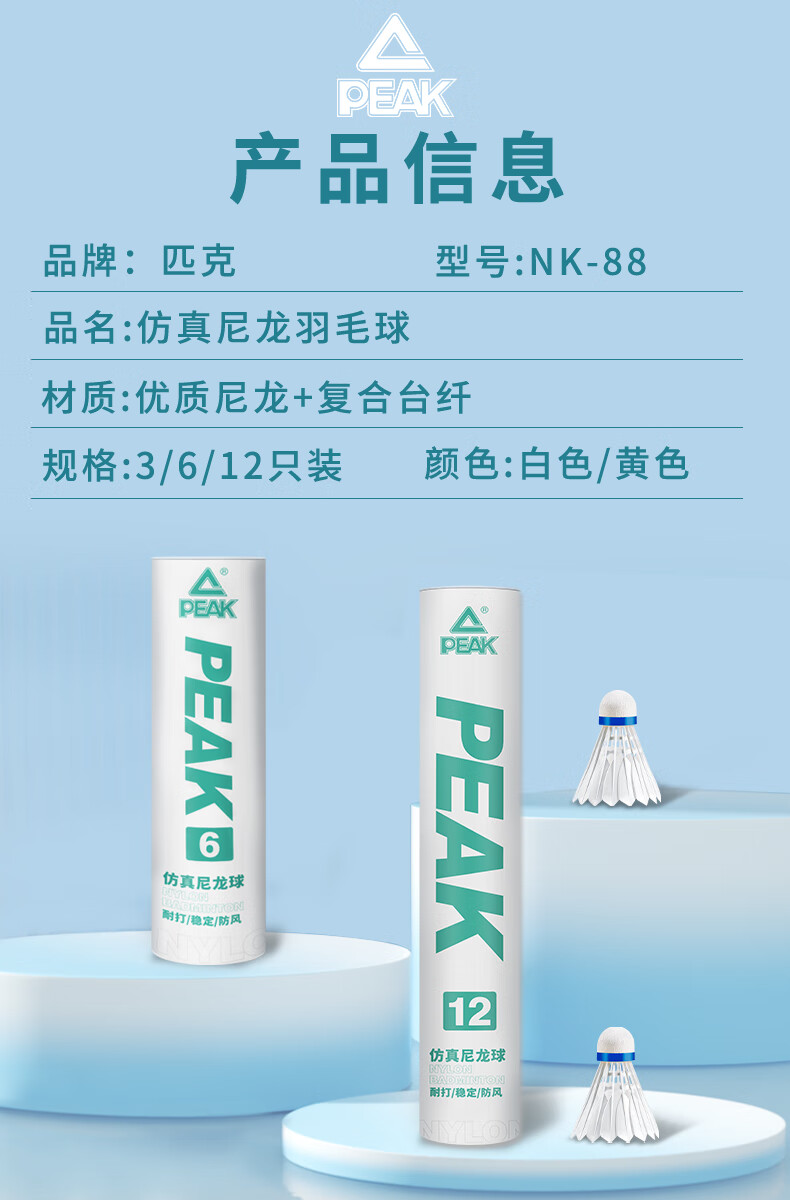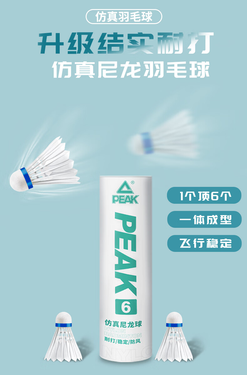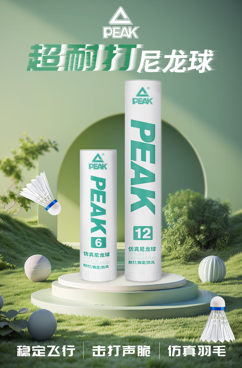 匹克羽毛球仿真尼龙球超耐打不烂室内室外防风胶球专业训练比赛塑料球 12只装/台纤球头超耐打/白色 1筒 强压不变形/一个顶六个