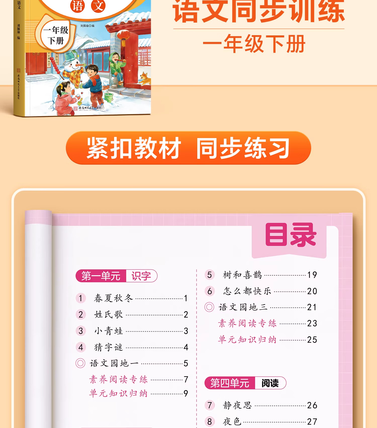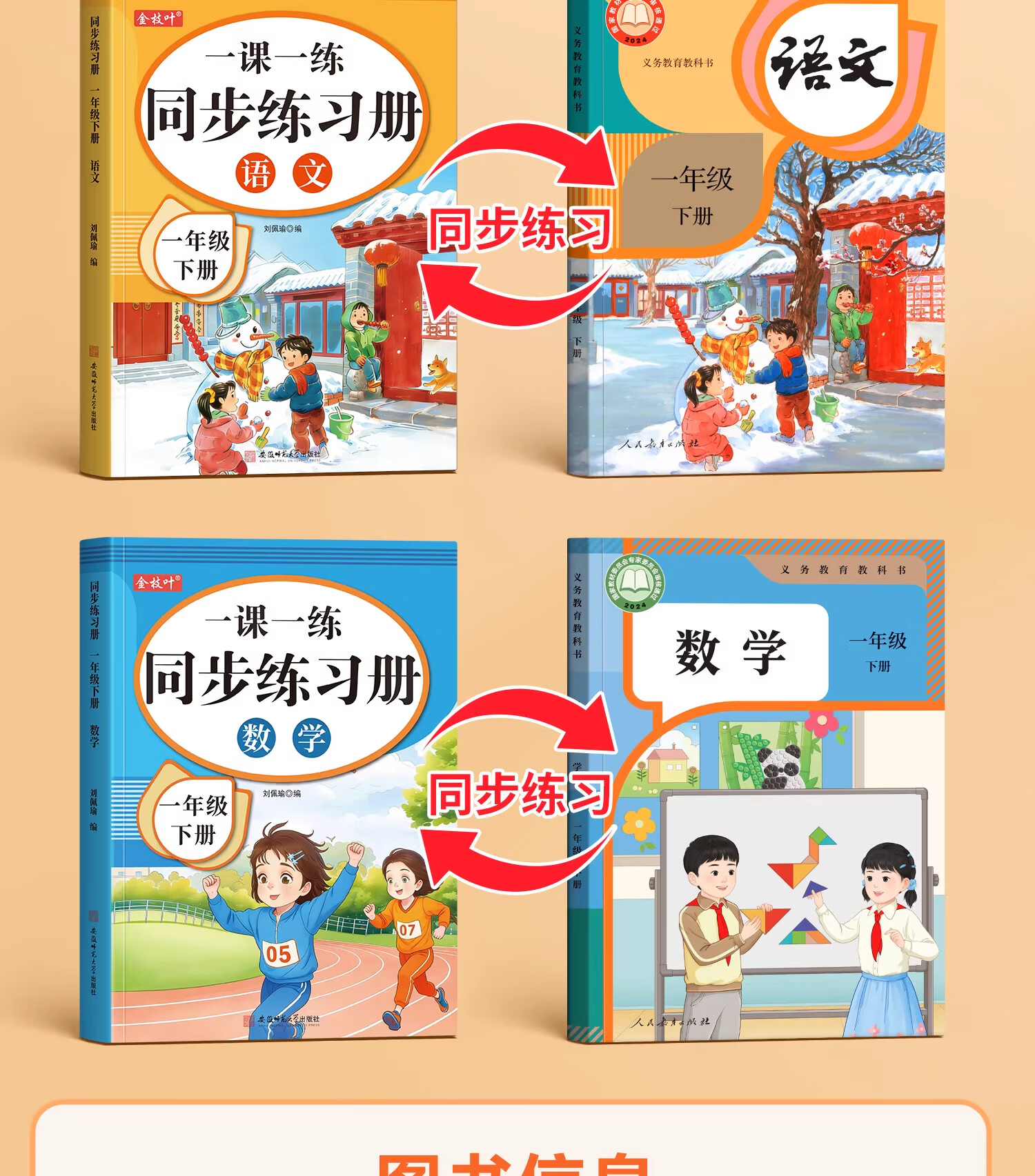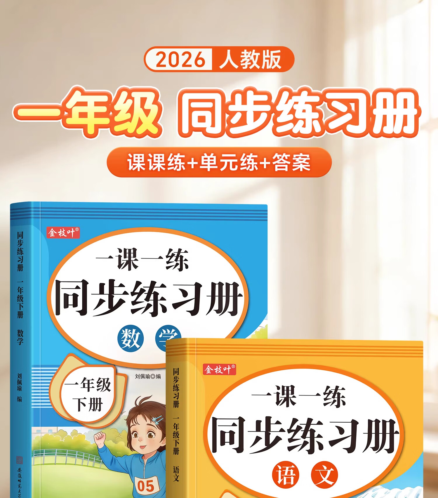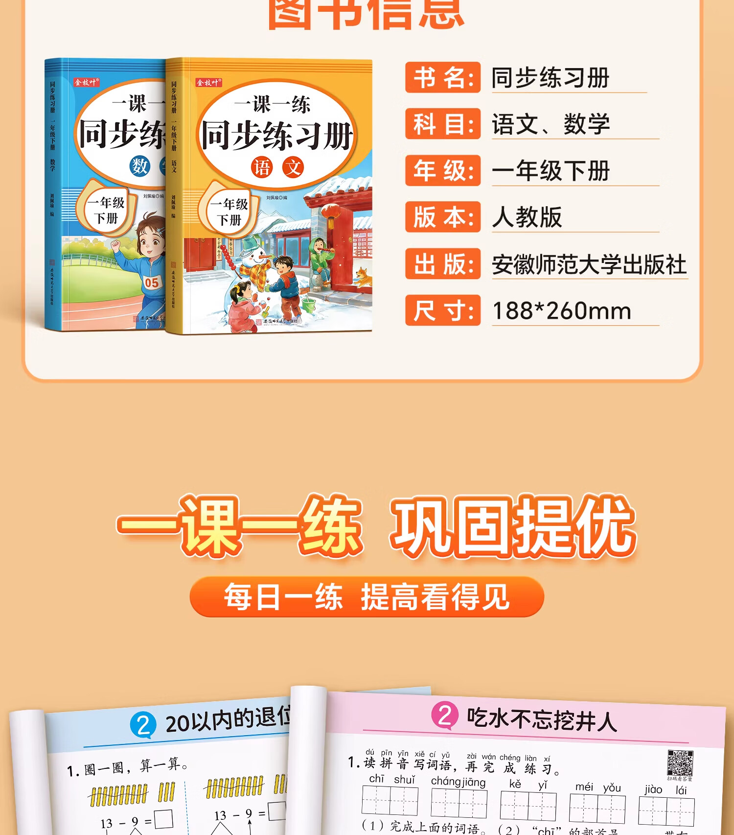 金枝叶一年级下册语文数学同步练习册人教版全套同步训练小学教材同步一课一练专项练习题课时作业小学生语数测试卷全套每日一练 一年级下册【语+数】同步练习册