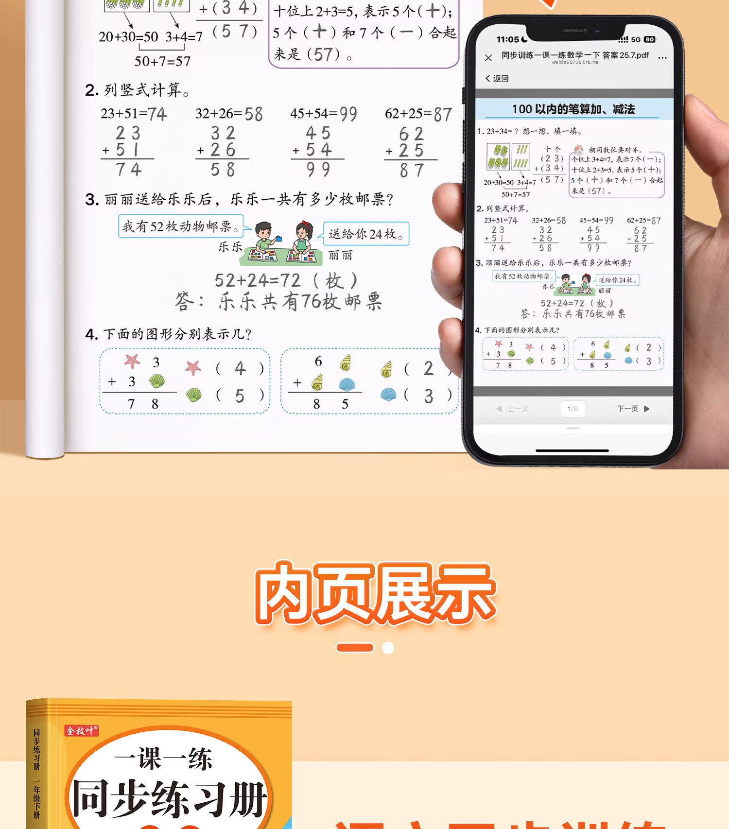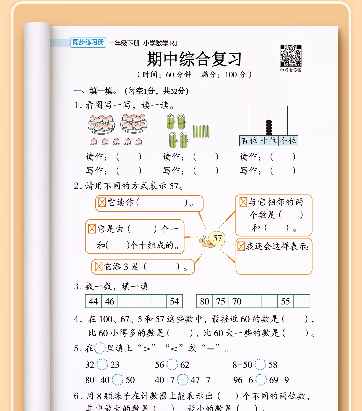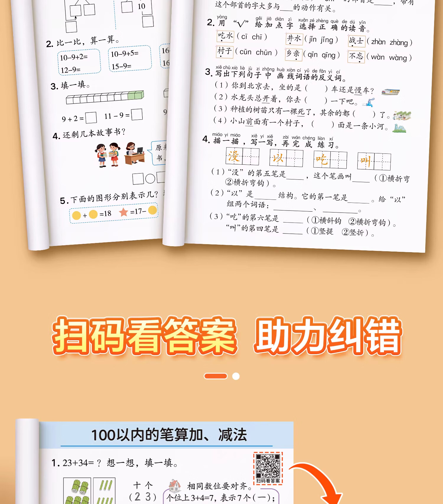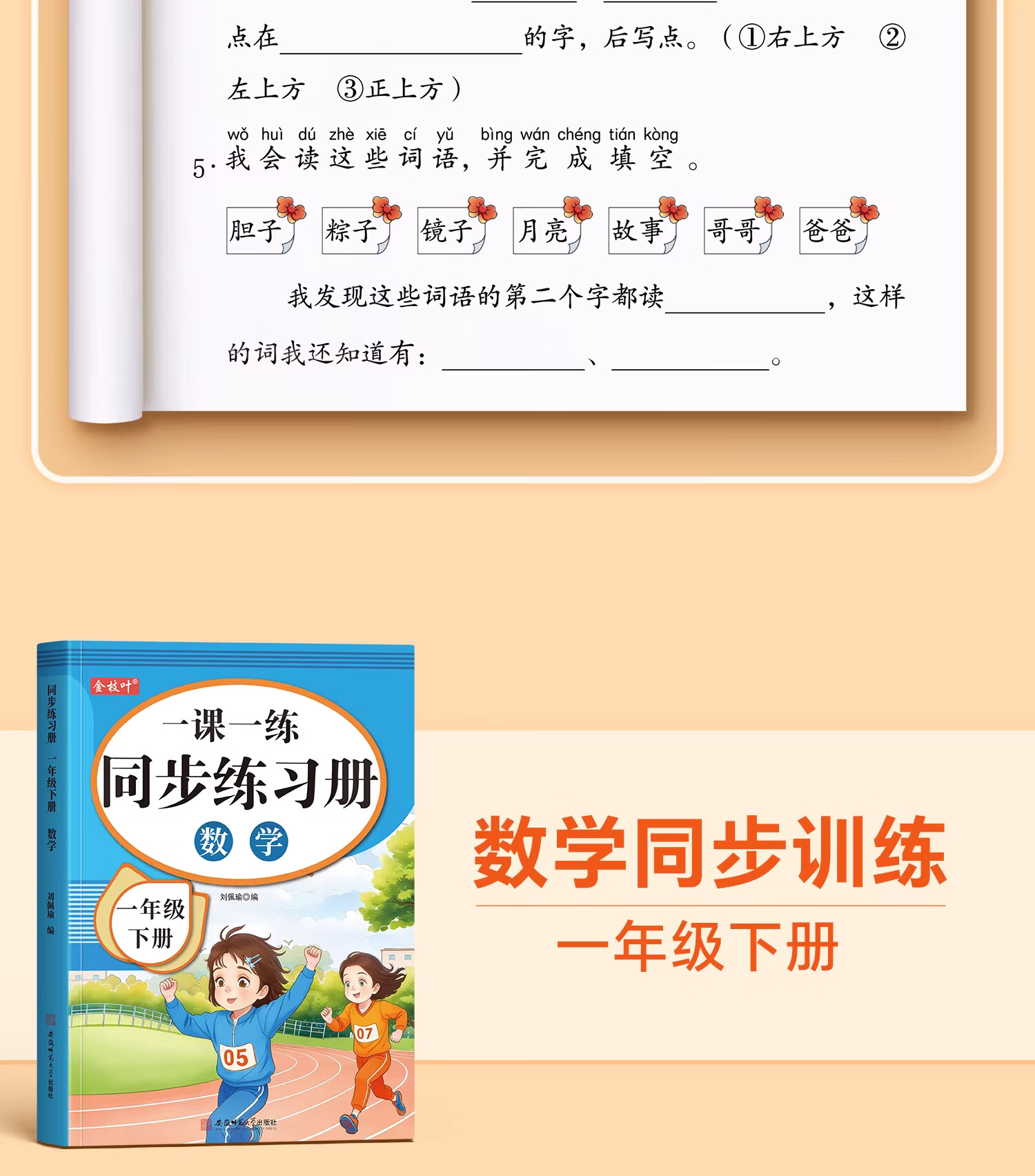 金枝叶一年级下册语文数学同步练习册人教版全套同步训练小学教材同步一课一练专项练习题课时作业小学生语数测试卷全套每日一练 一年级下册【语+数】同步练习册