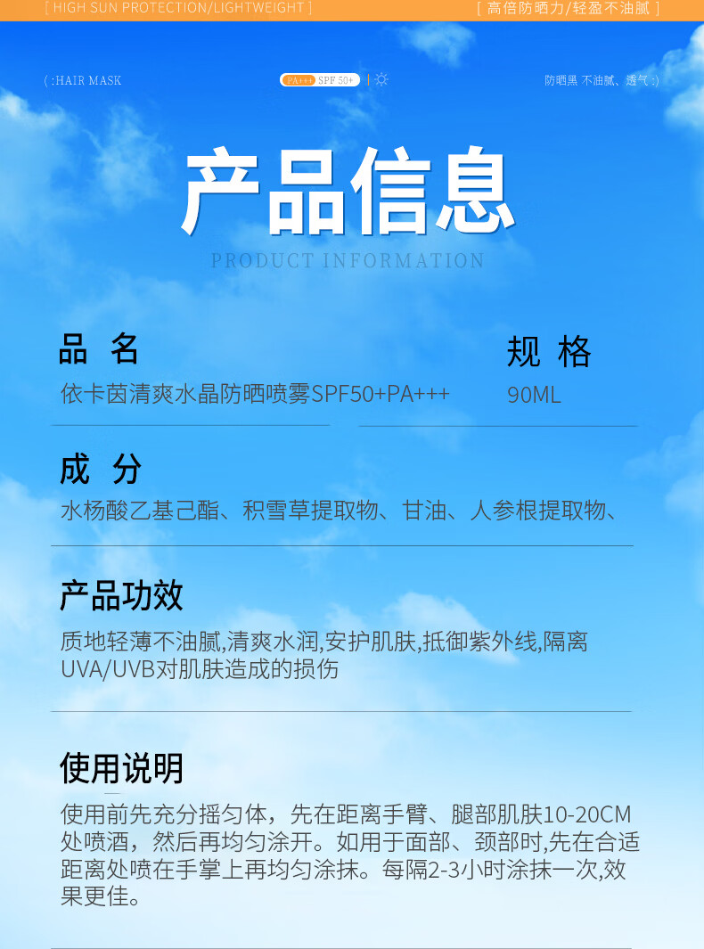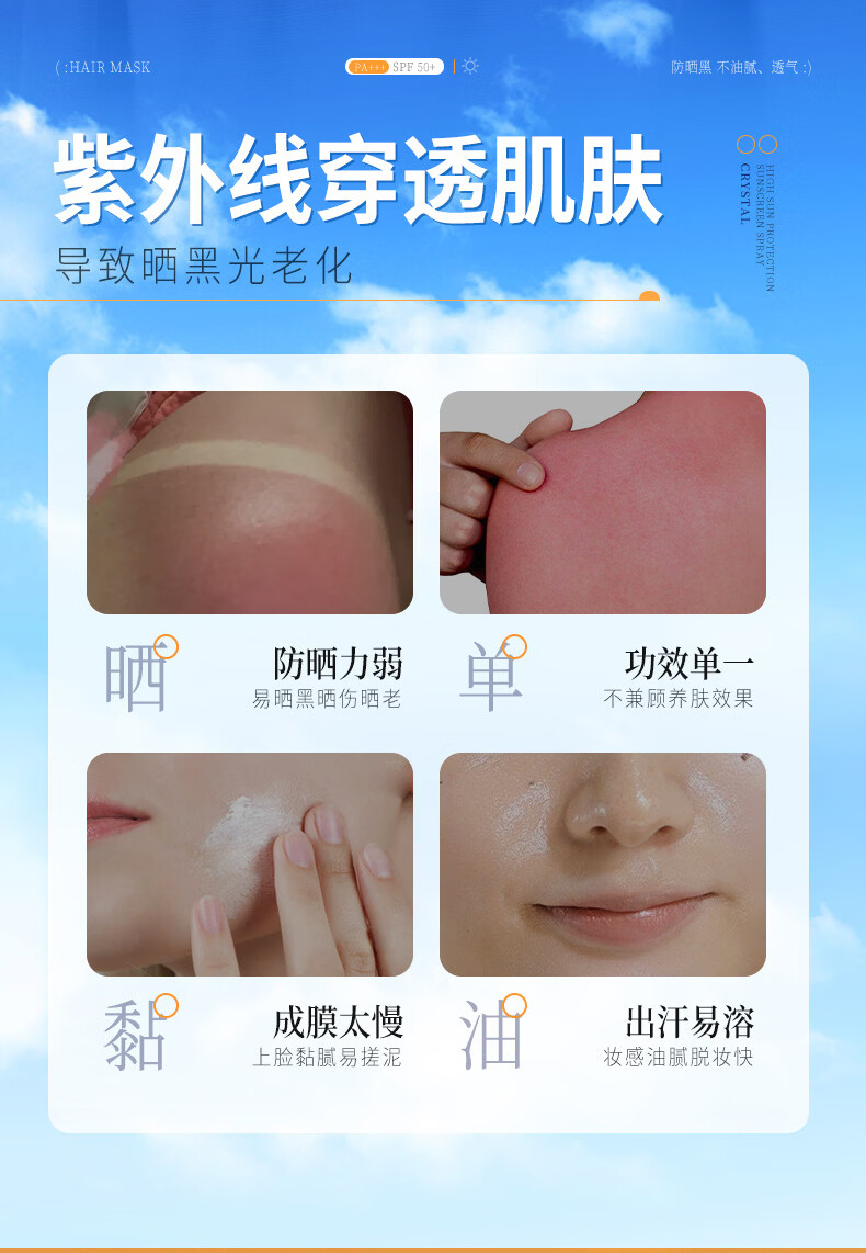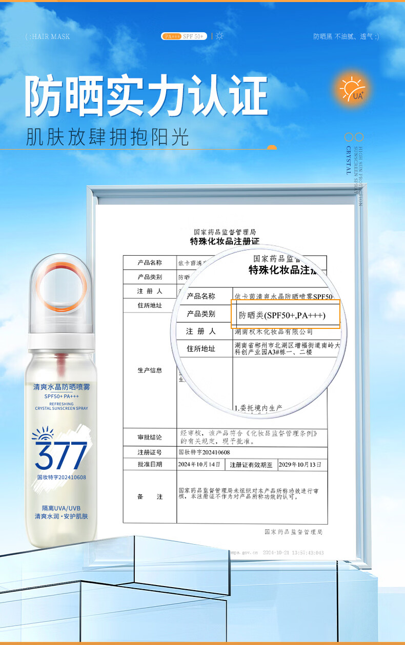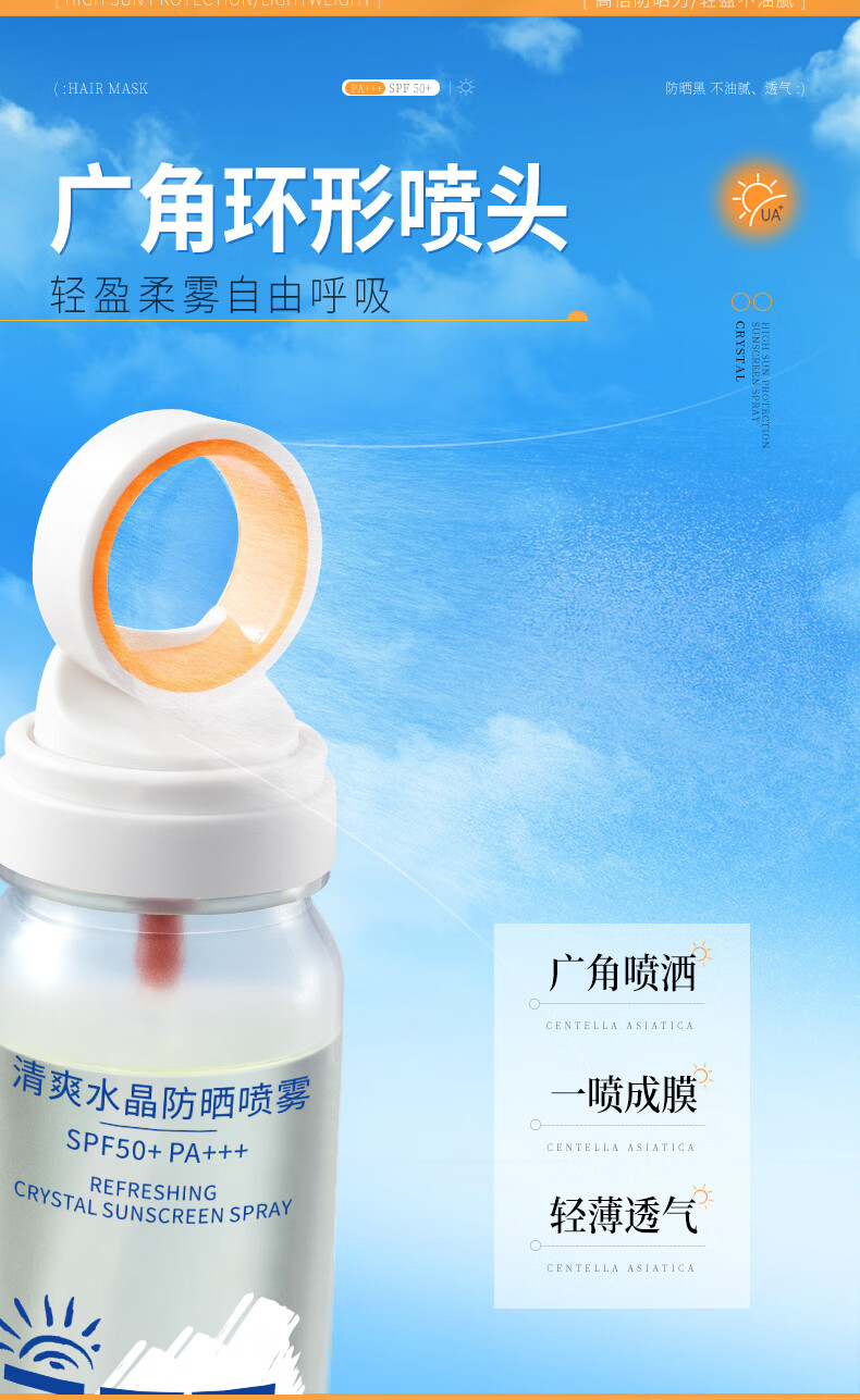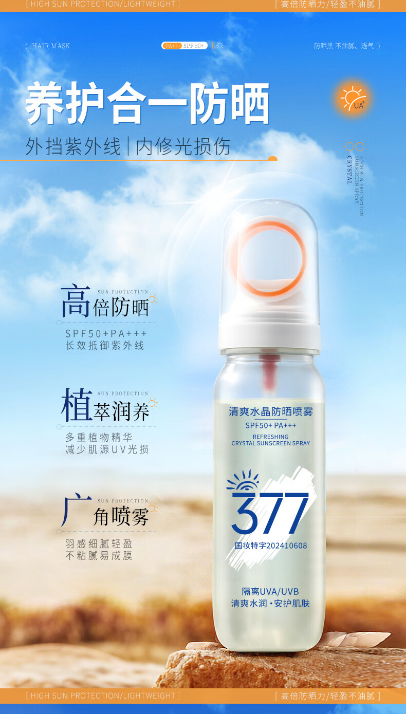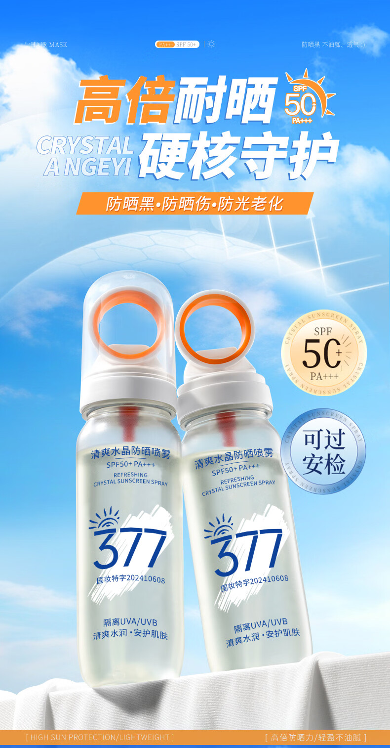 VSZE透明防晒喷雾377美白防晒防水防汗防紫外线男女士防晒霜军训专用 【透明新升级】377美白防晒喷雾90ml*2瓶