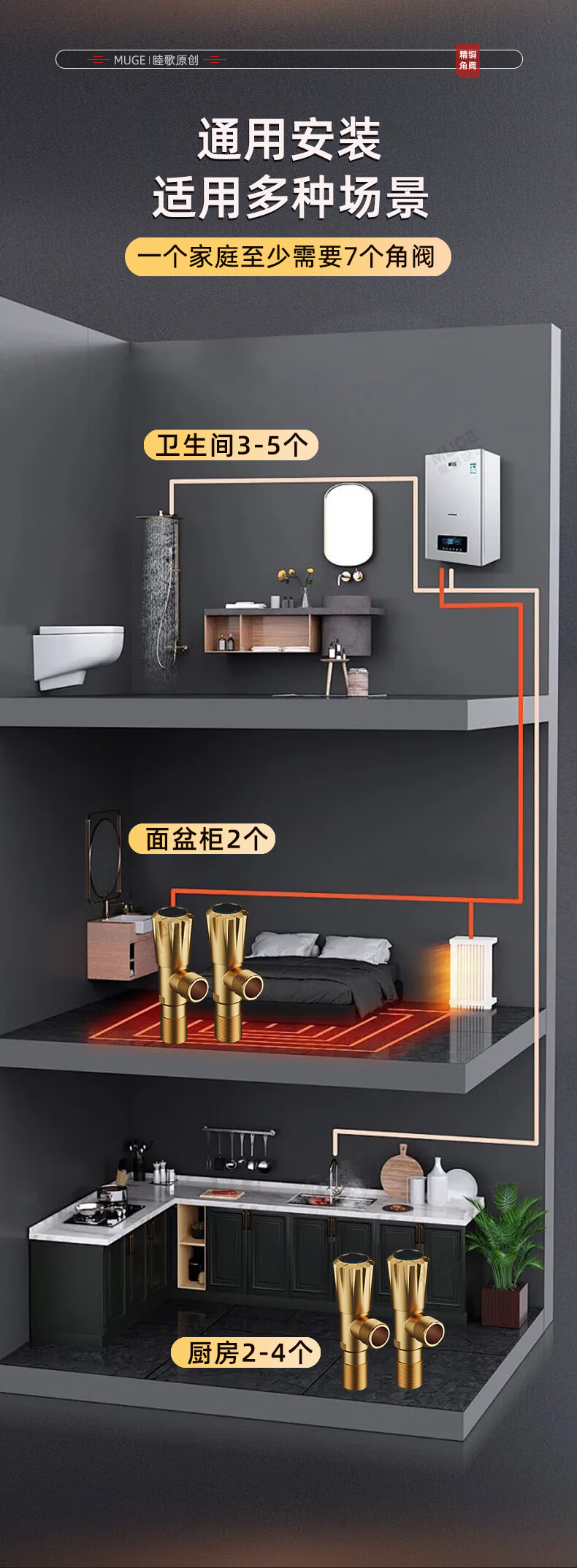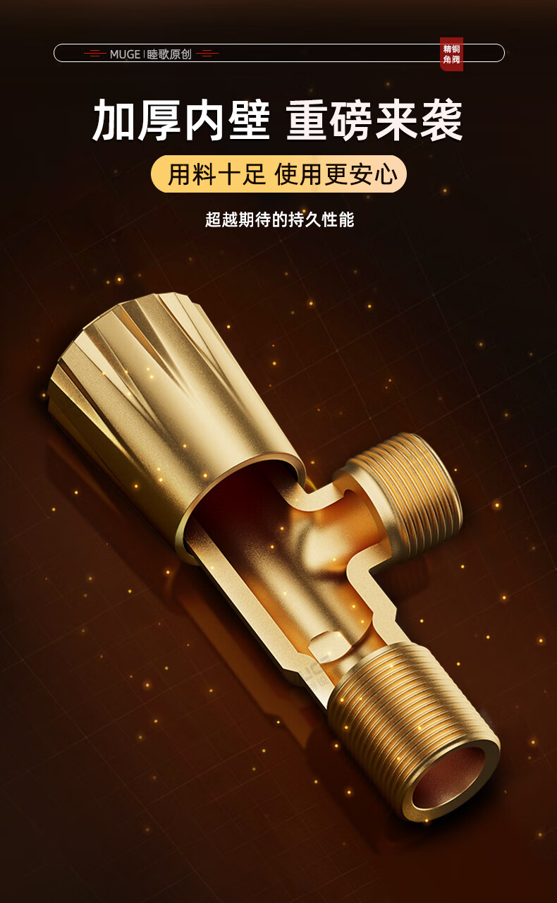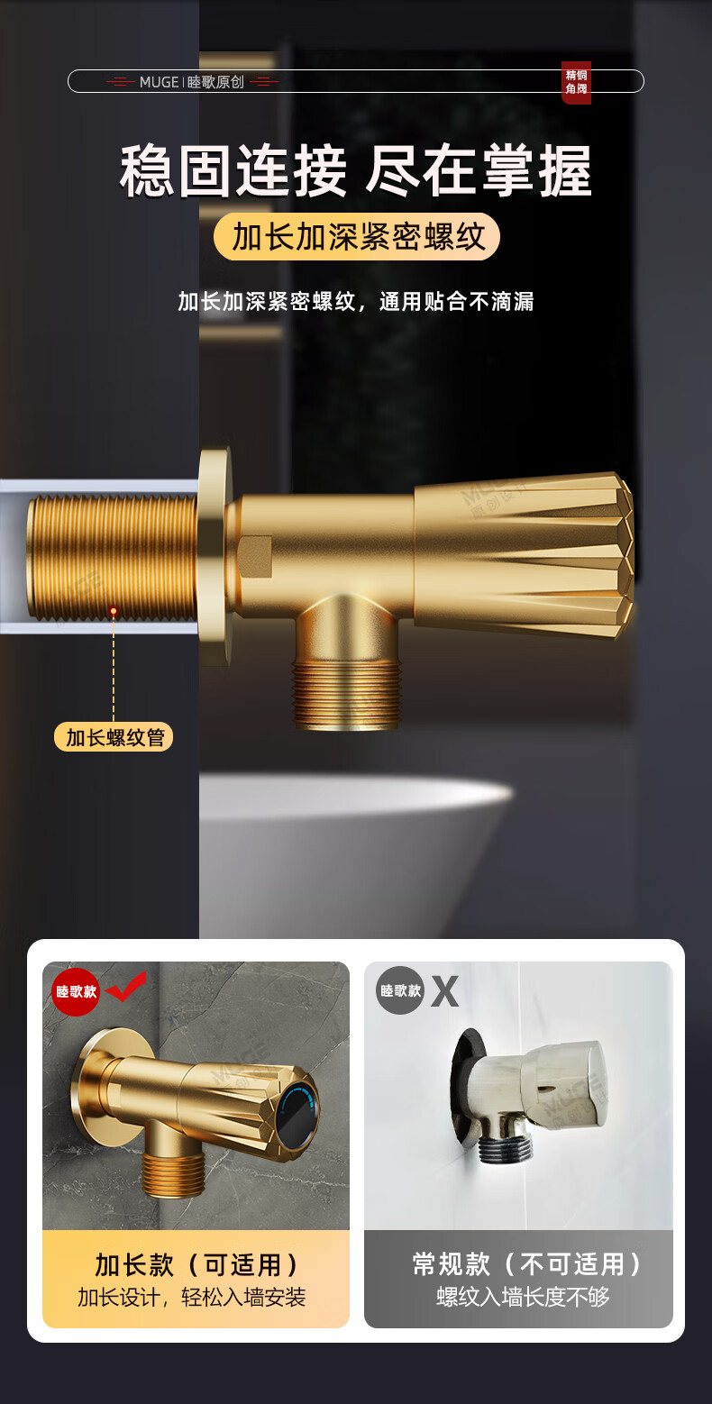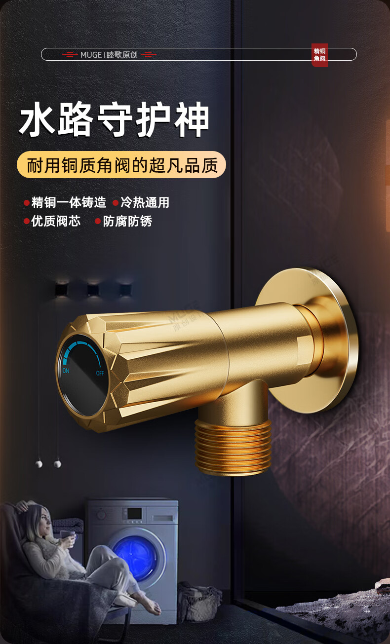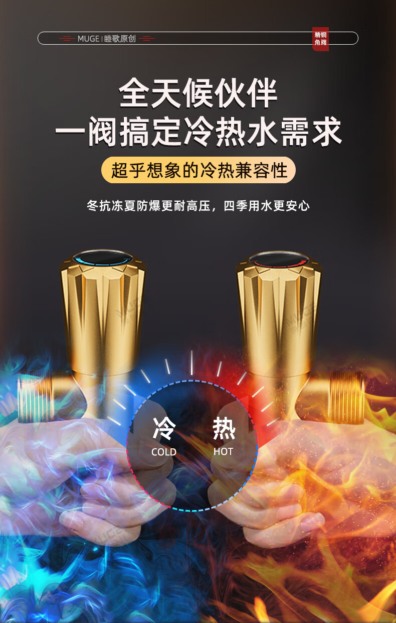 睦歌(MUGE)四分热水器冷热水角阀全铜三角阀全开大流量止水阀门开关球阀套装 1蓝1红【全铜加厚】4分接口通用角阀