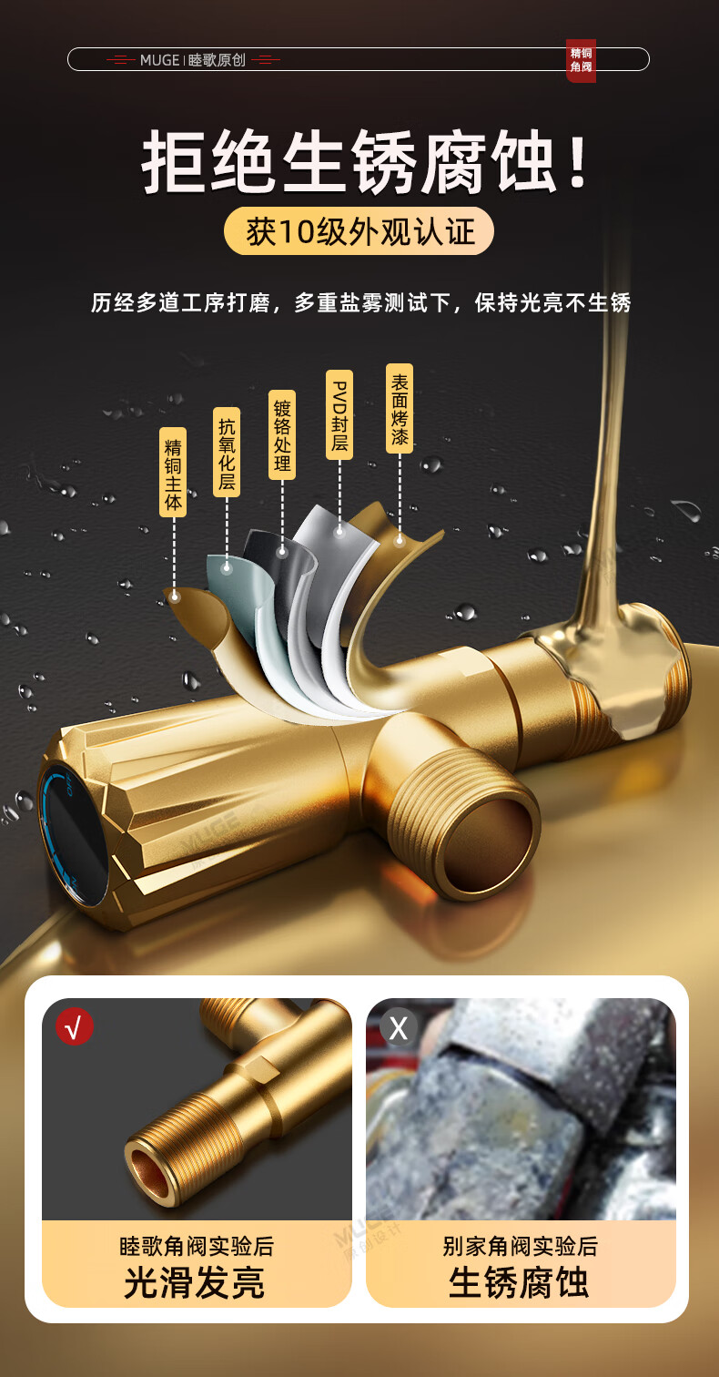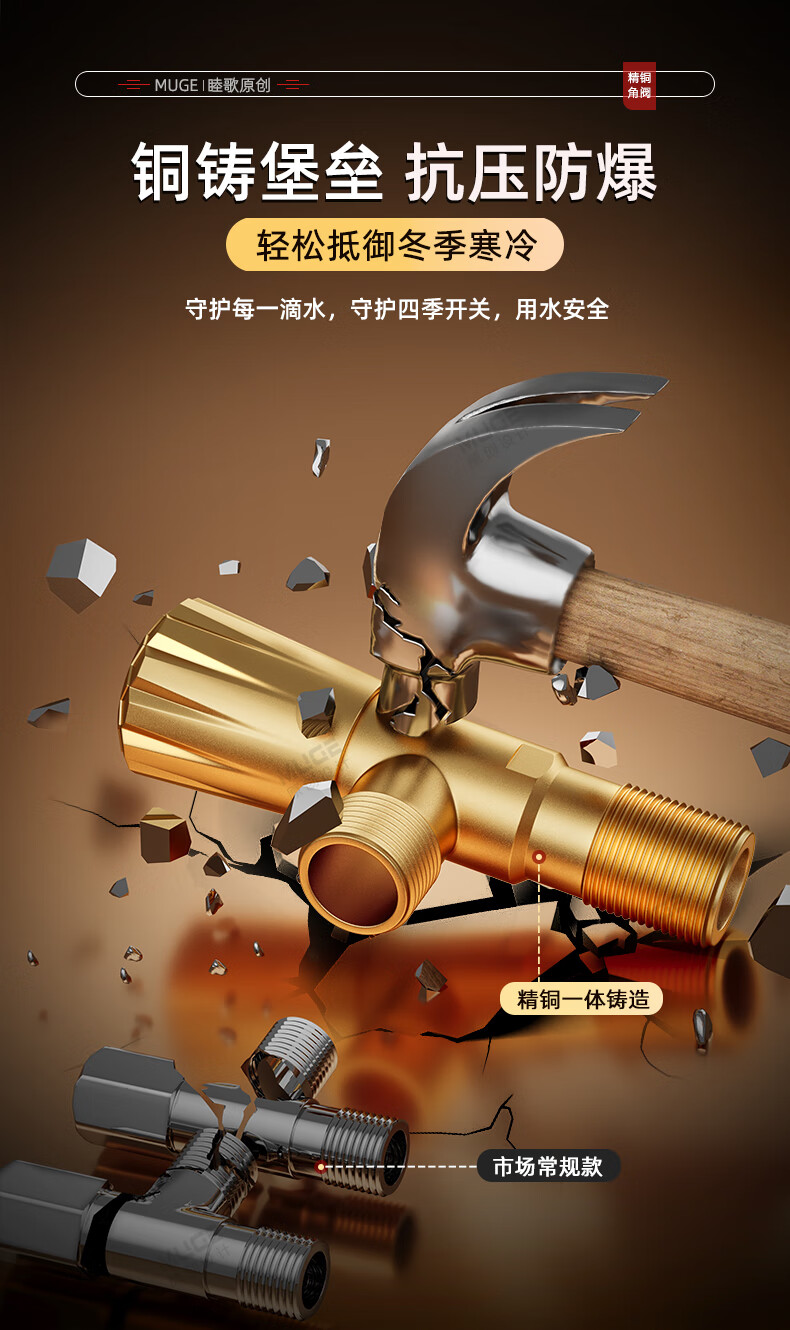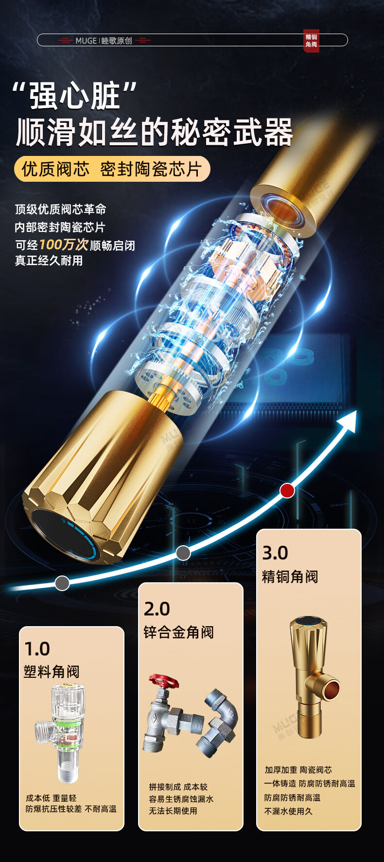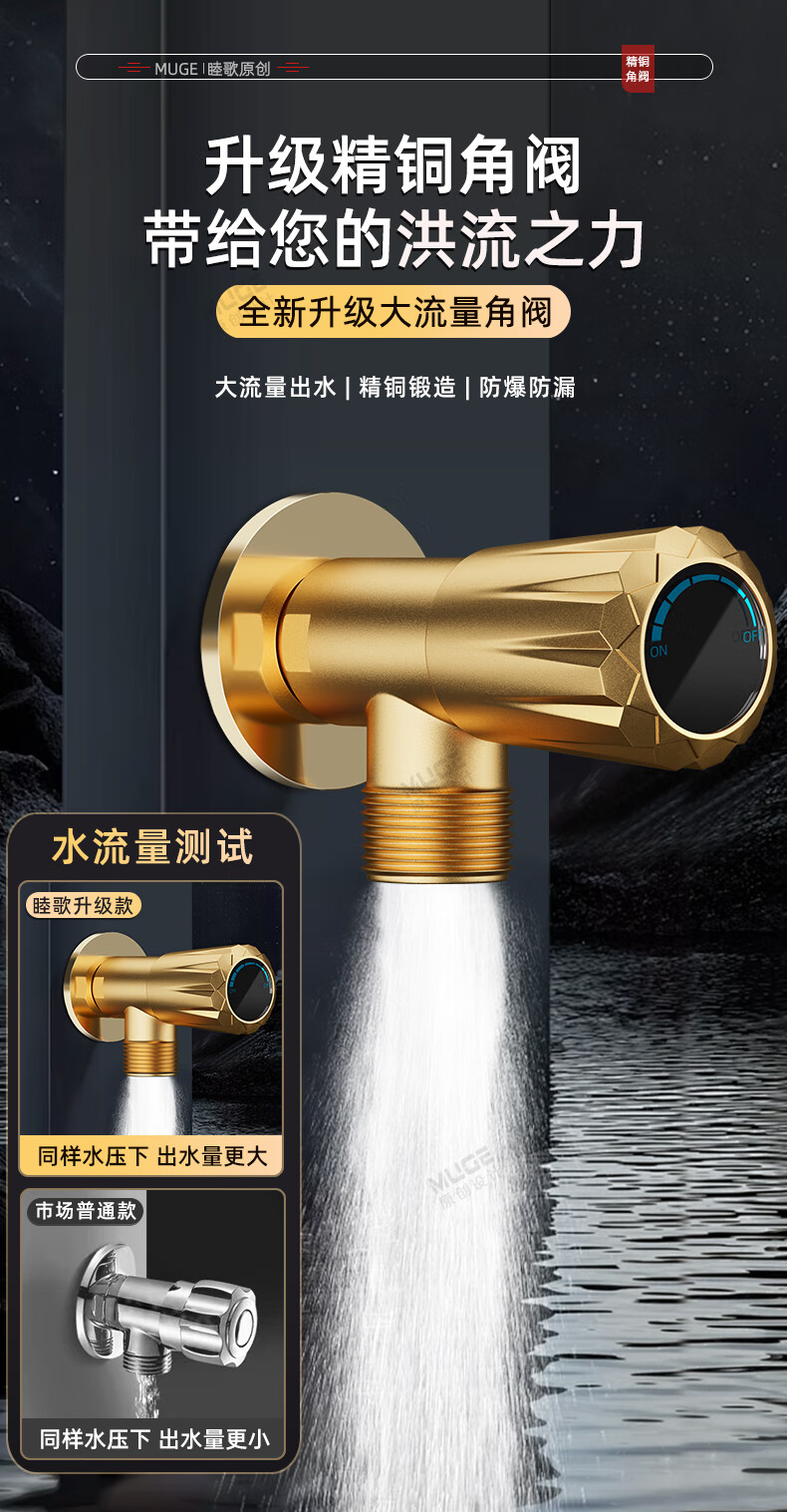 睦歌(MUGE)四分热水器冷热水角阀全铜三角阀全开大流量止水阀门开关球阀套装 1蓝1红【全铜加厚】4分接口通用角阀