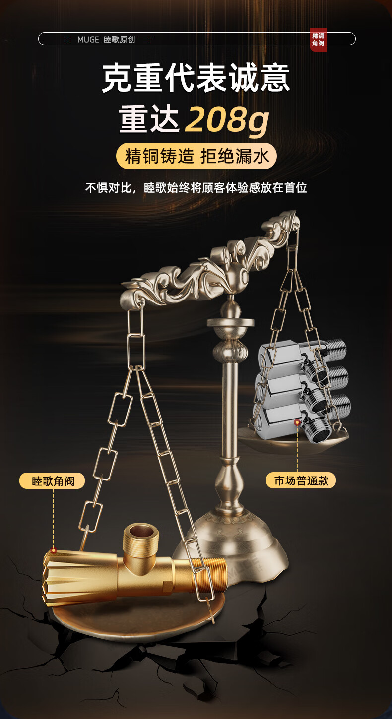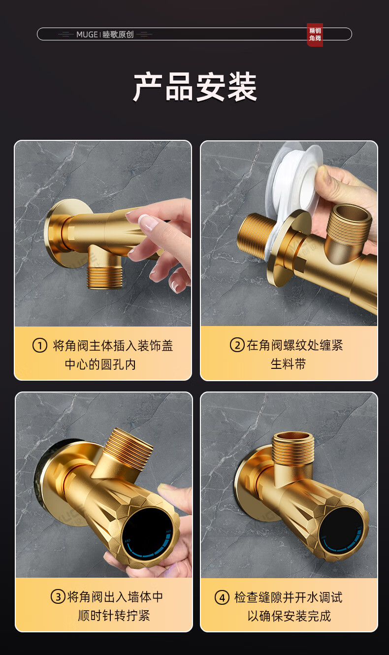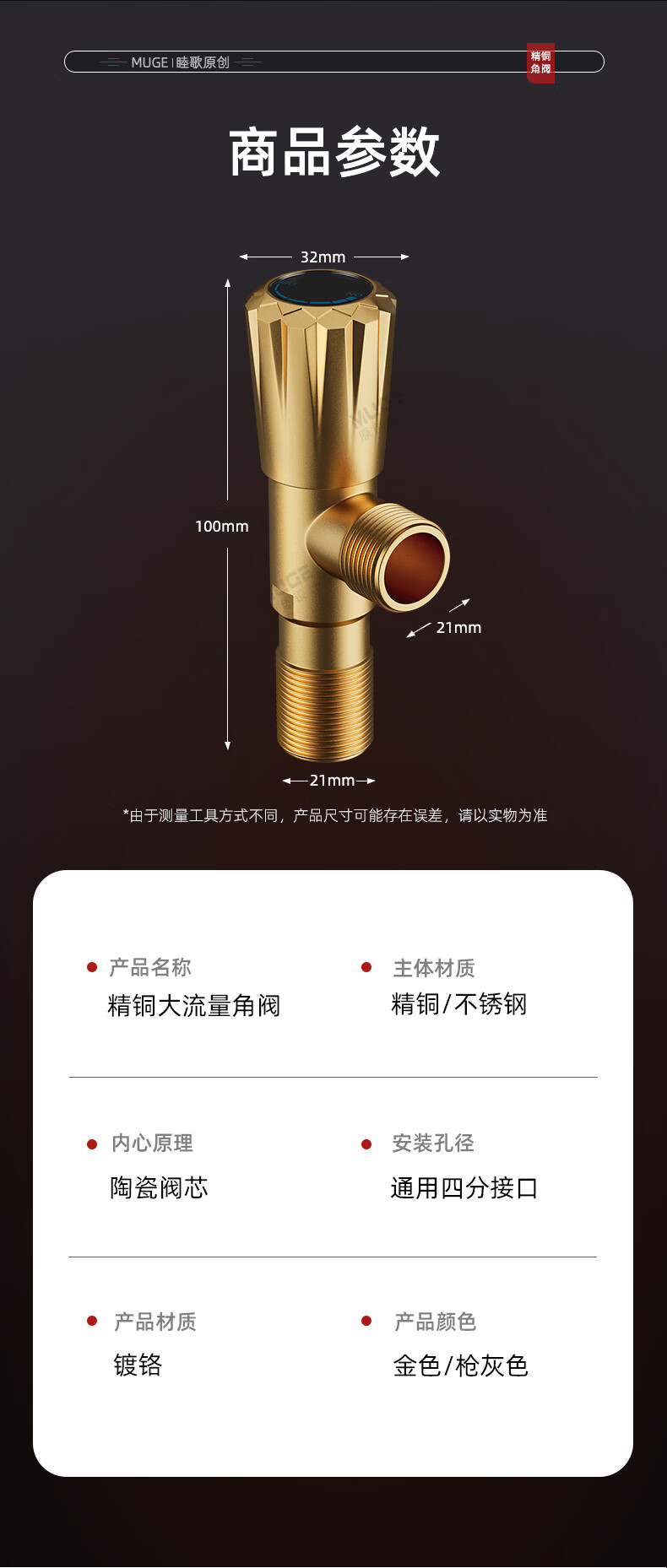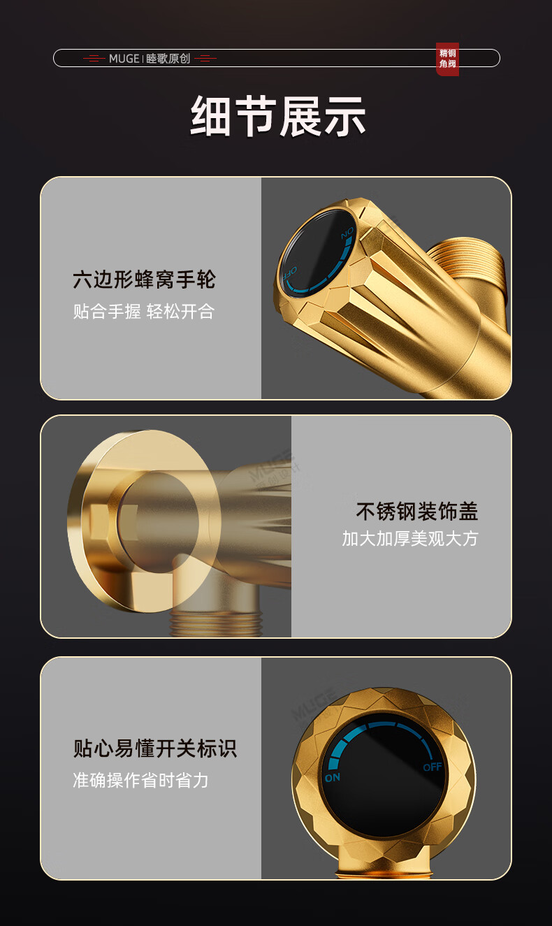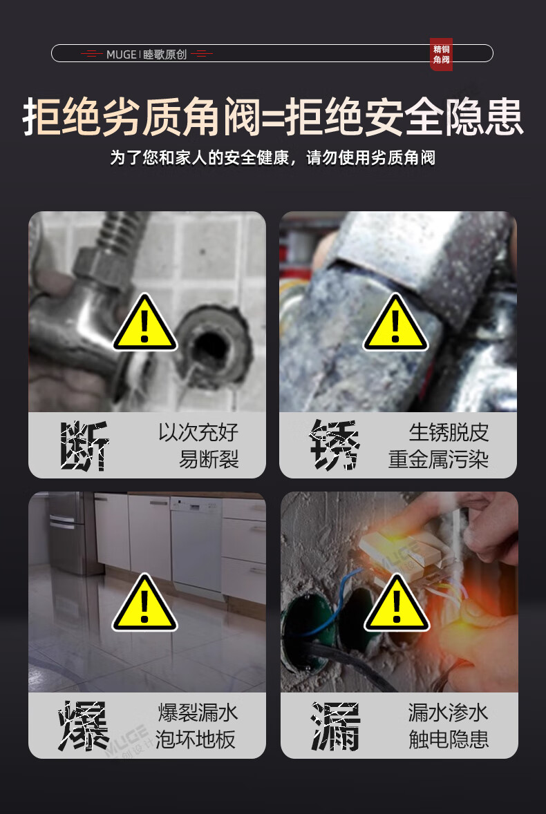 睦歌(MUGE)四分热水器冷热水角阀全铜三角阀全开大流量止水阀门开关球阀套装 1蓝1红【全铜加厚】4分接口通用角阀