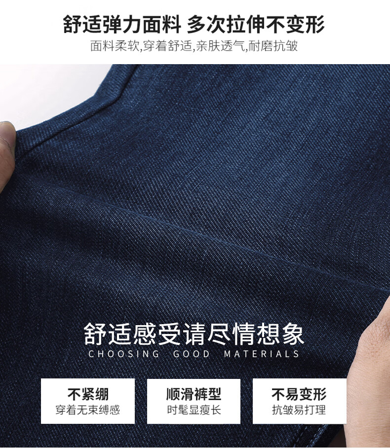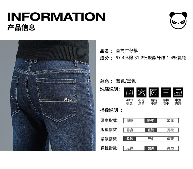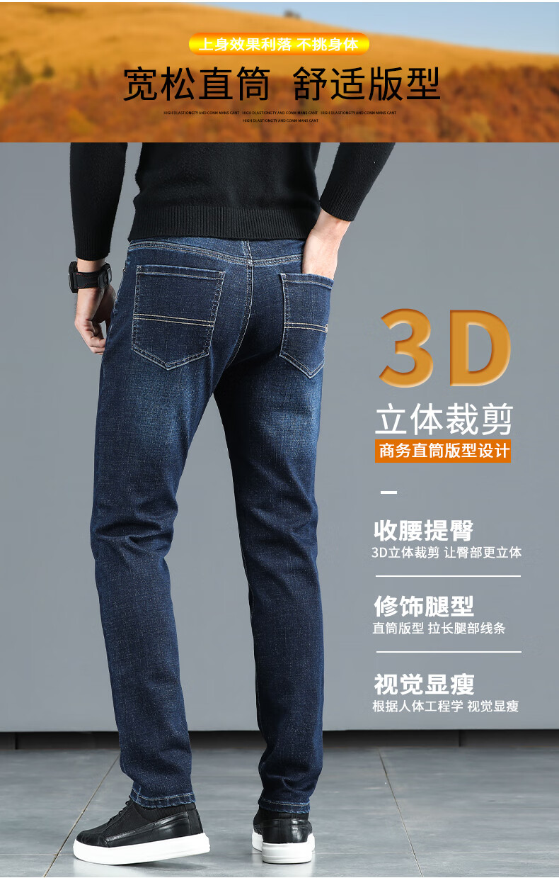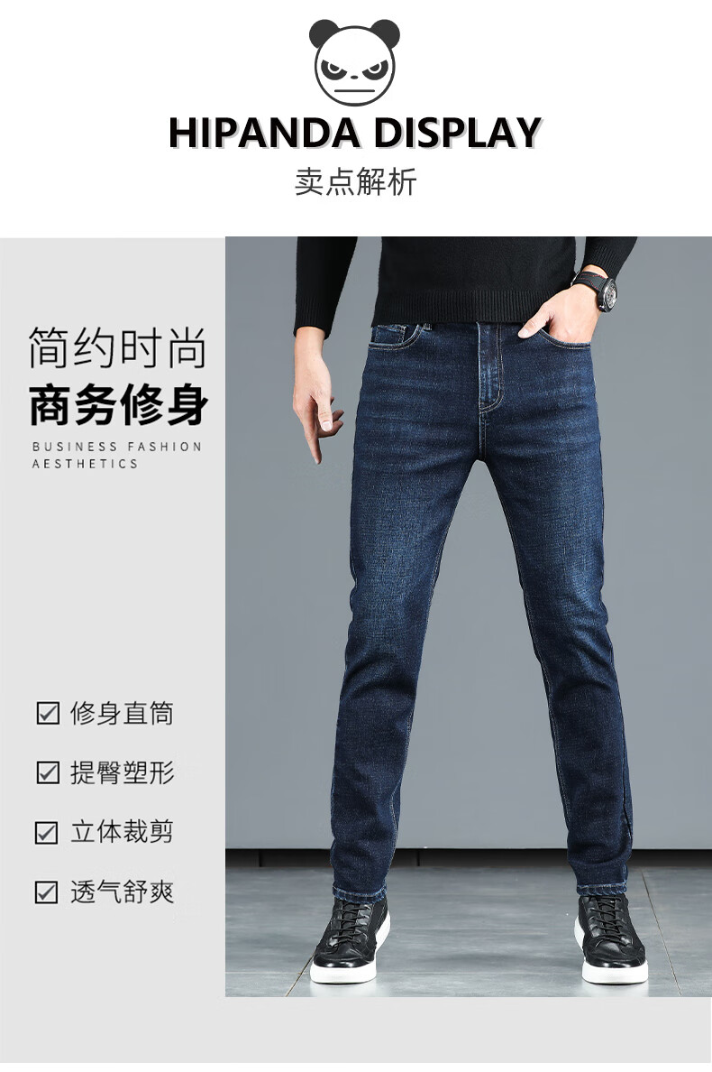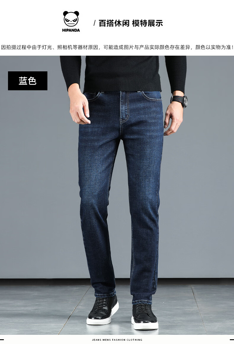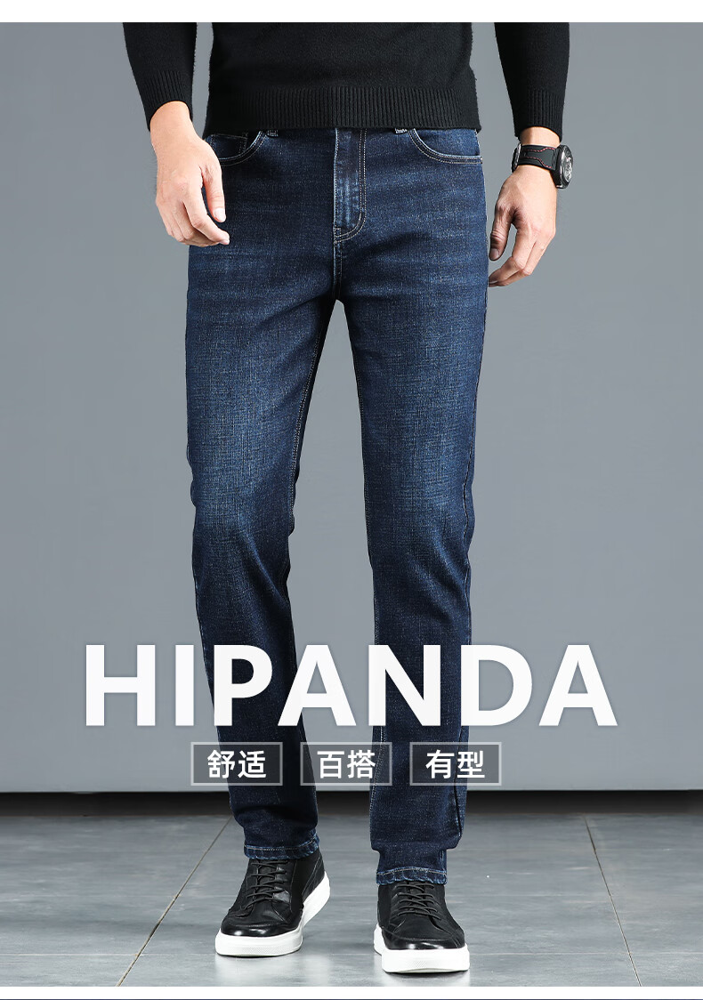 HIPANDA你好熊猫牛仔裤2025秋冬新款百搭休闲弹力直筒长裤男款裤子 深蓝色 33