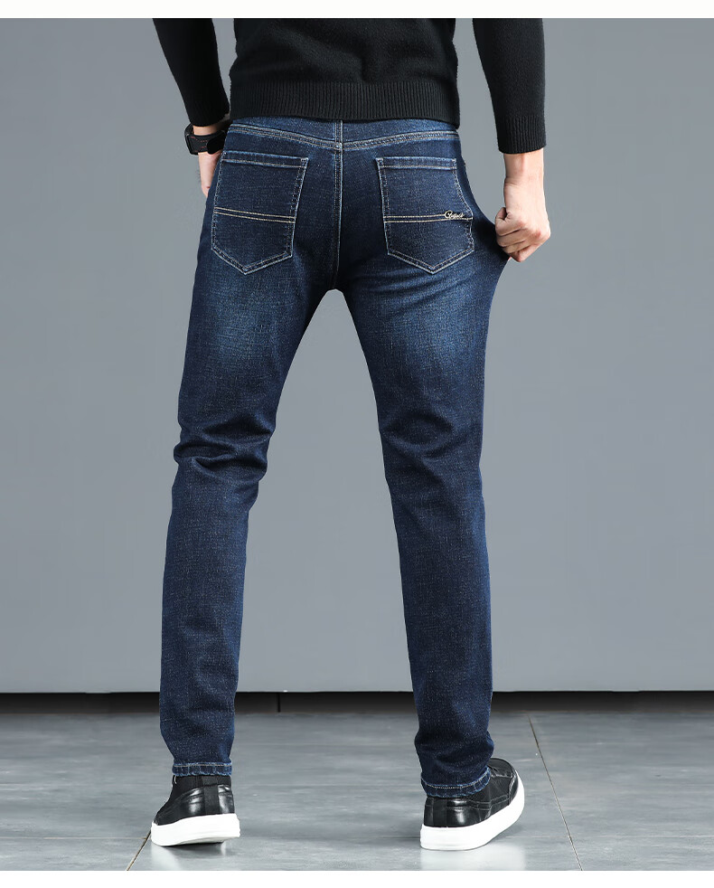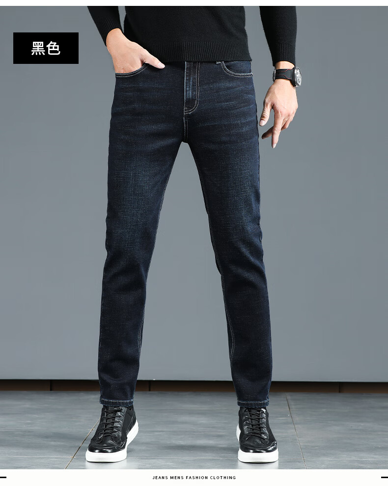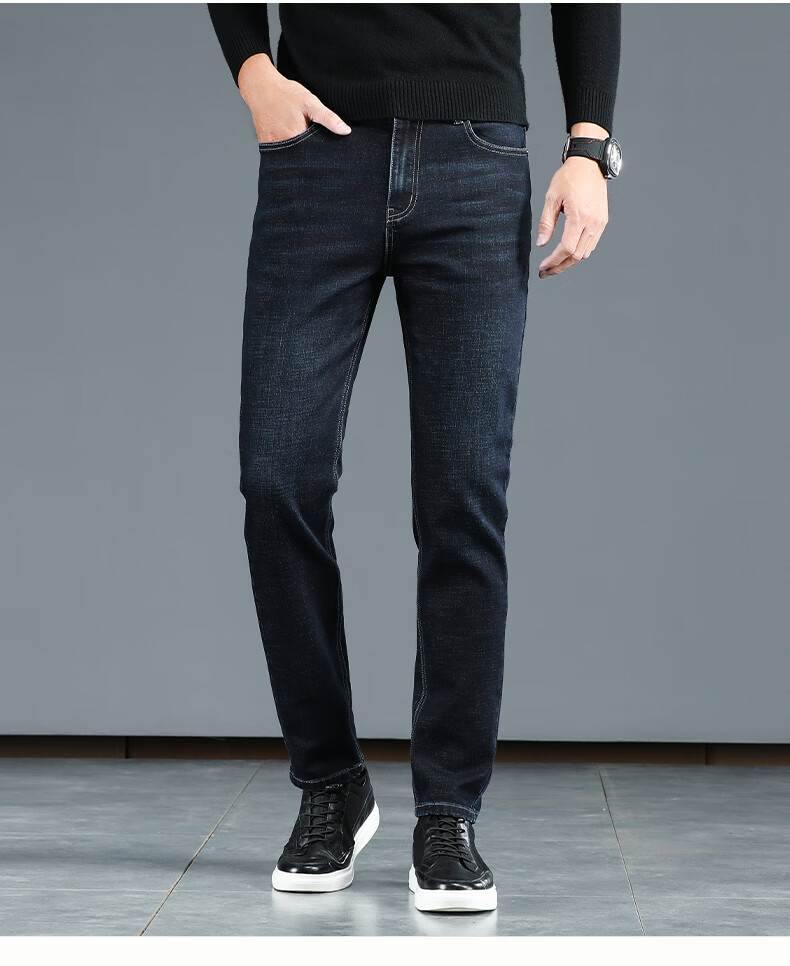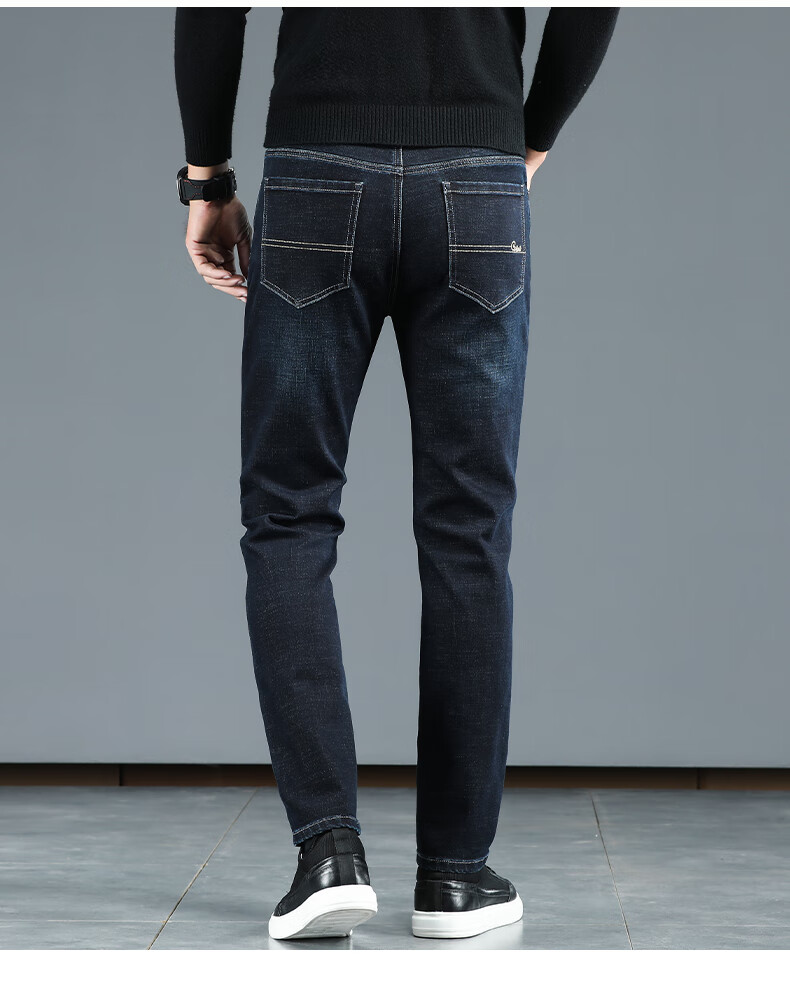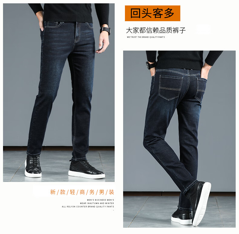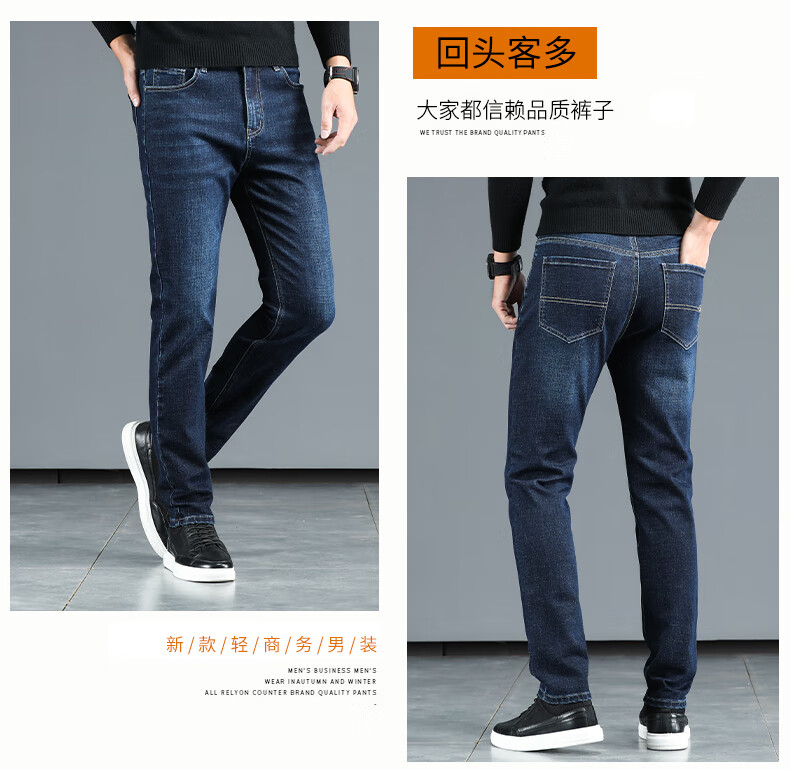 HIPANDA你好熊猫牛仔裤2025秋冬新款百搭休闲弹力直筒长裤男款裤子 深蓝色 33
