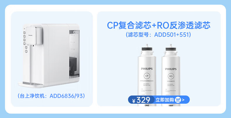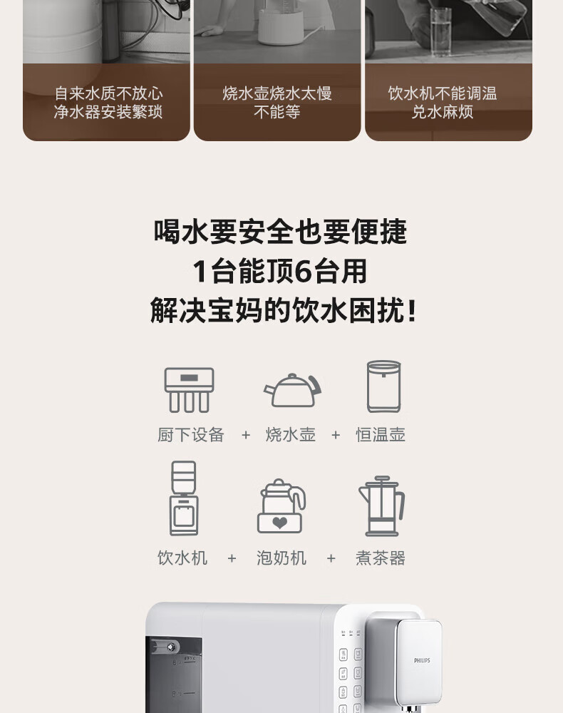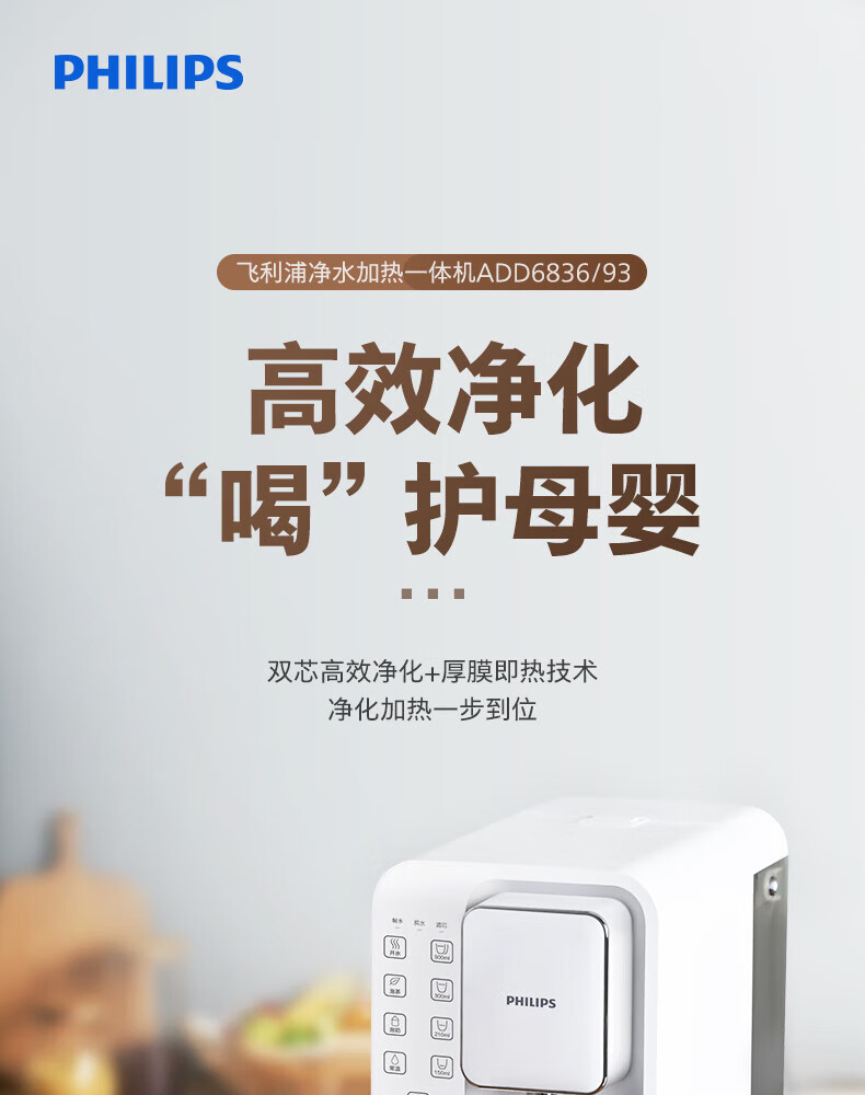 飞利浦(PHILIPS)净水器家用 台式免安装即热直饮一体净水器反渗透净水机5L大水箱ADD6836/93 企业年会送礼年底采购