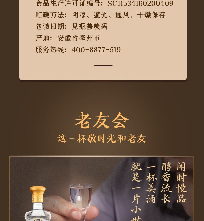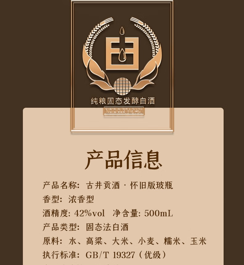 古井贡酒 怀旧版玻瓶 浓香型白酒 42度 500mL*6瓶 整箱装 口粮酒