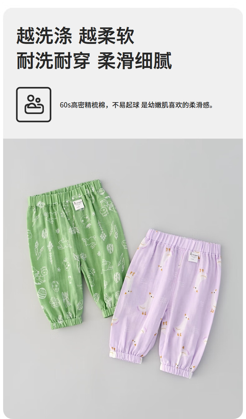 童泰夏季3月-4岁婴儿男女防蚊裤束口裤TS31Q430 黄色 73cm