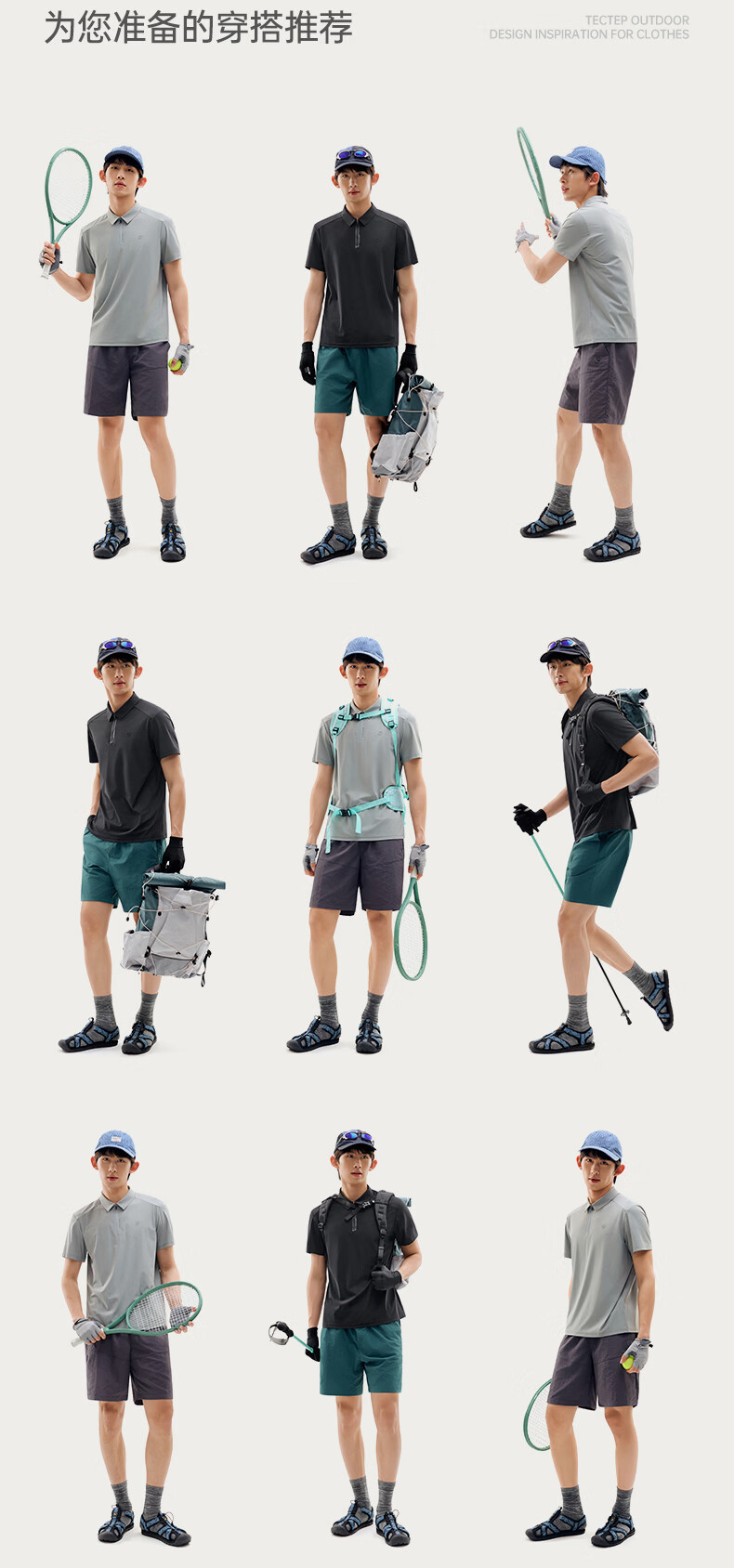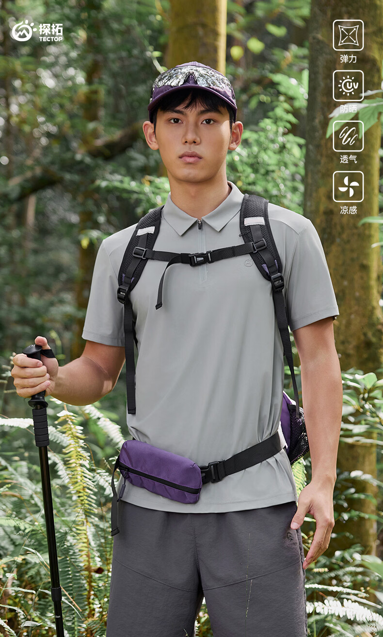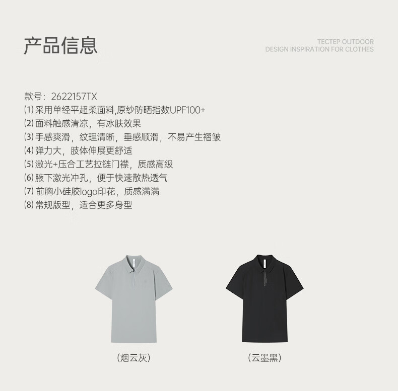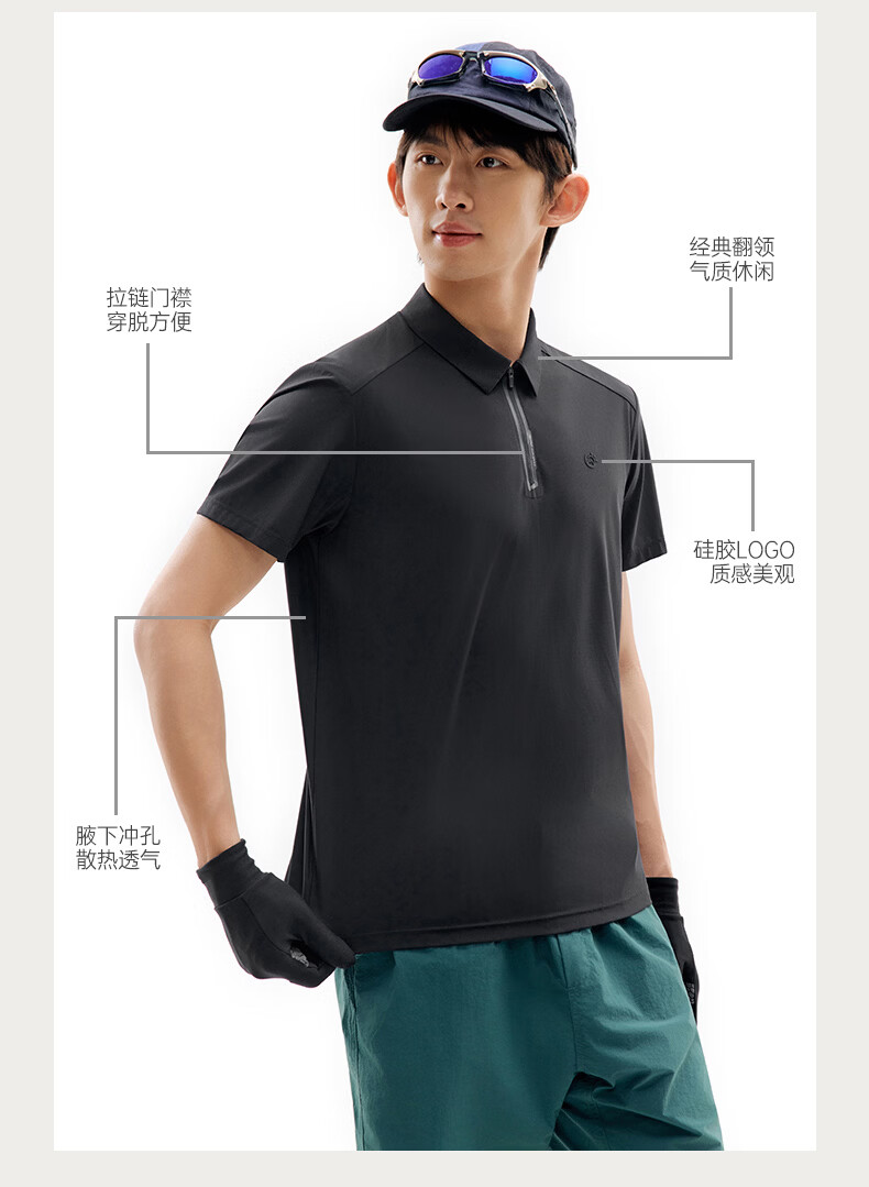 探拓(TECTOP)26新款户外防晒短袖T恤男夏季速干衣冰肤透气polo衫 云墨黑 S