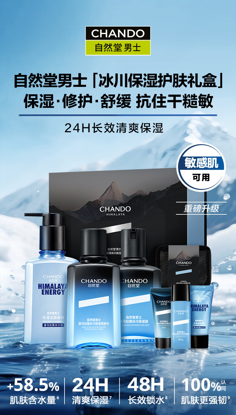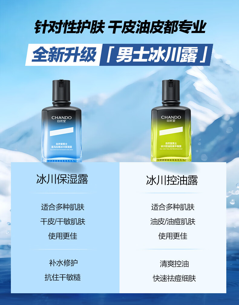 自然堂男士护肤品套装保湿清爽不黏腻焕亮肤色温和不刺激送男友生日礼物 【换季推荐】冰川保湿露+控油露(早控油晚补水)