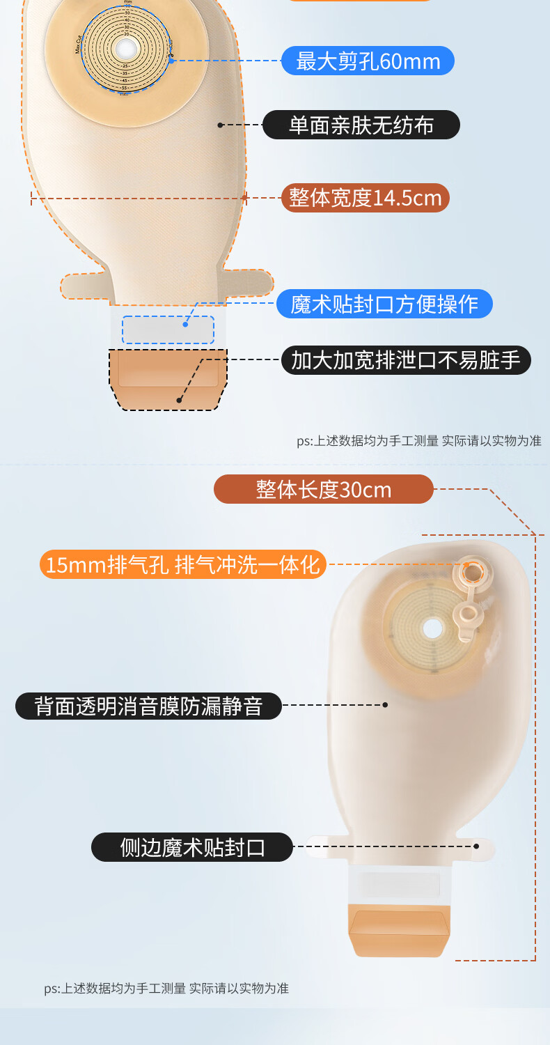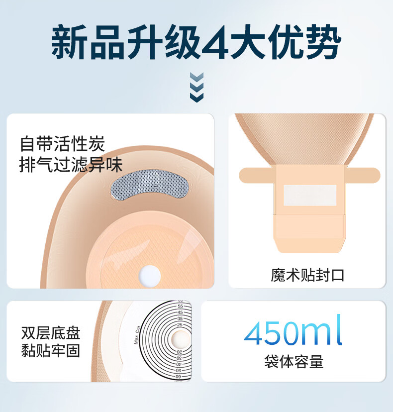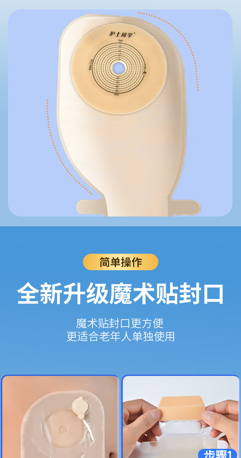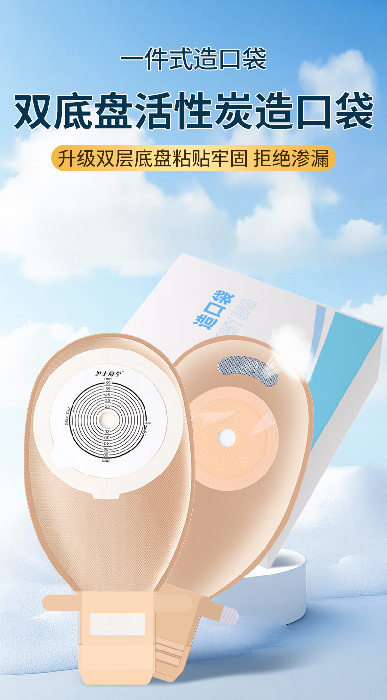 护士同学一件式造口袋可排气碳片除味医用直肠改道肛肠袋一次性大便造瘘袋 升级款双层底盘魔术贴【10片装】碳片除味