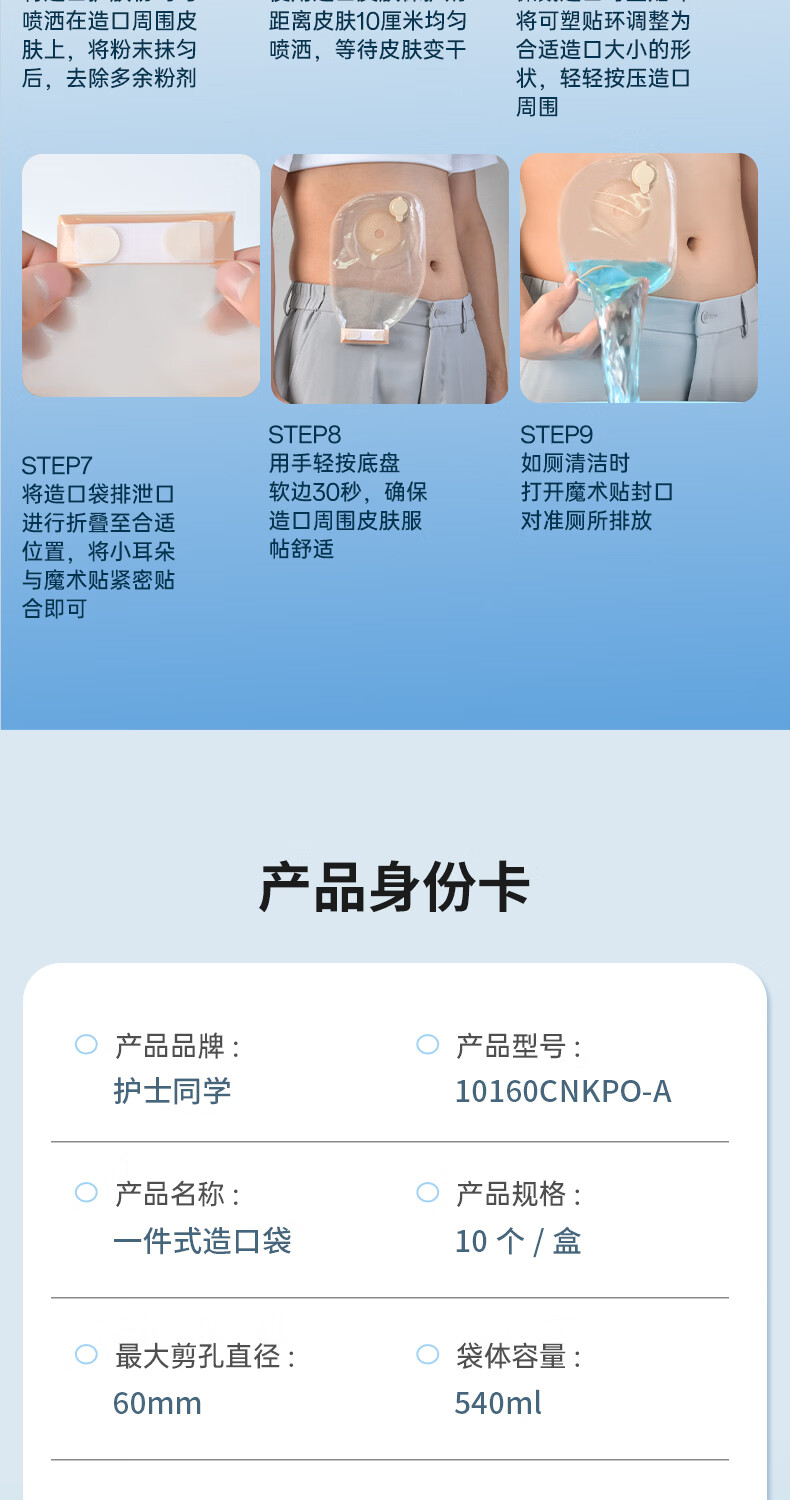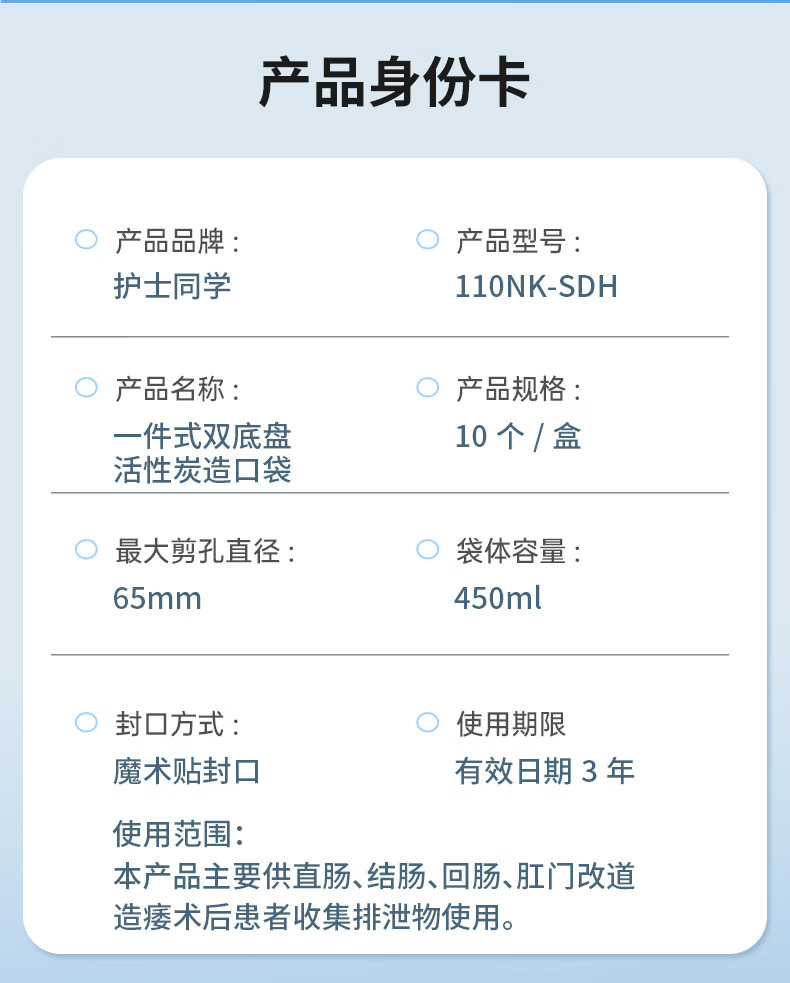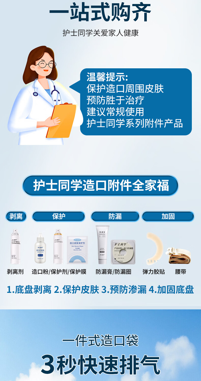 护士同学一件式造口袋可排气碳片除味医用直肠改道肛肠袋一次性大便造瘘袋 升级款双层底盘魔术贴【10片装】碳片除味