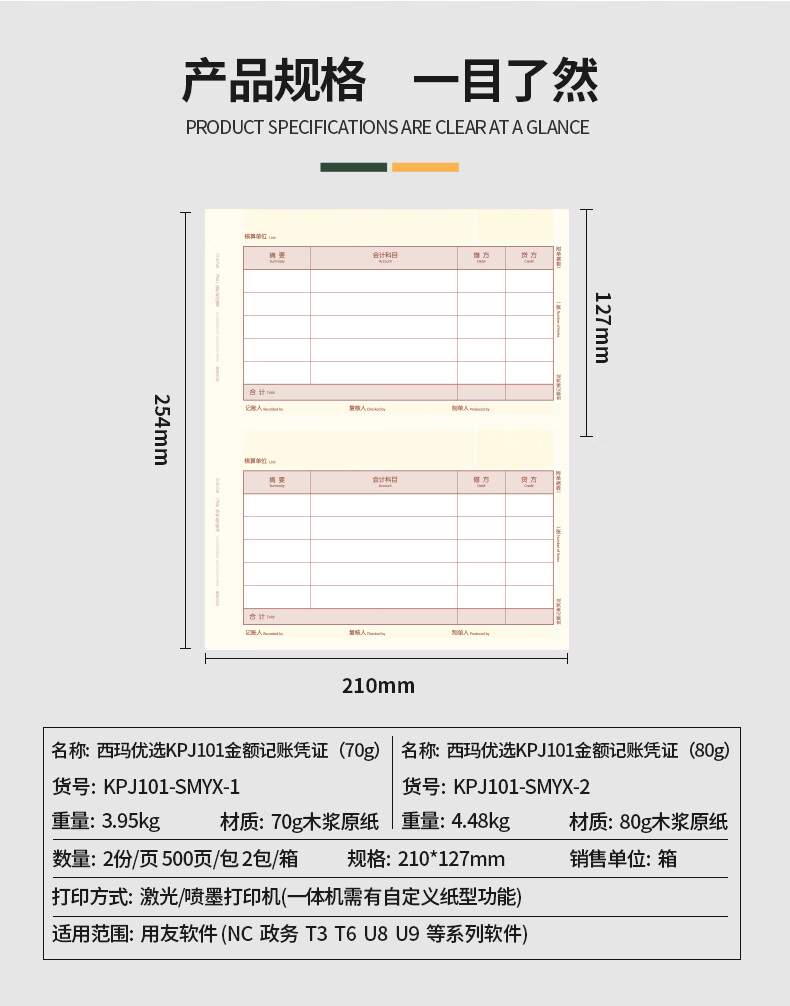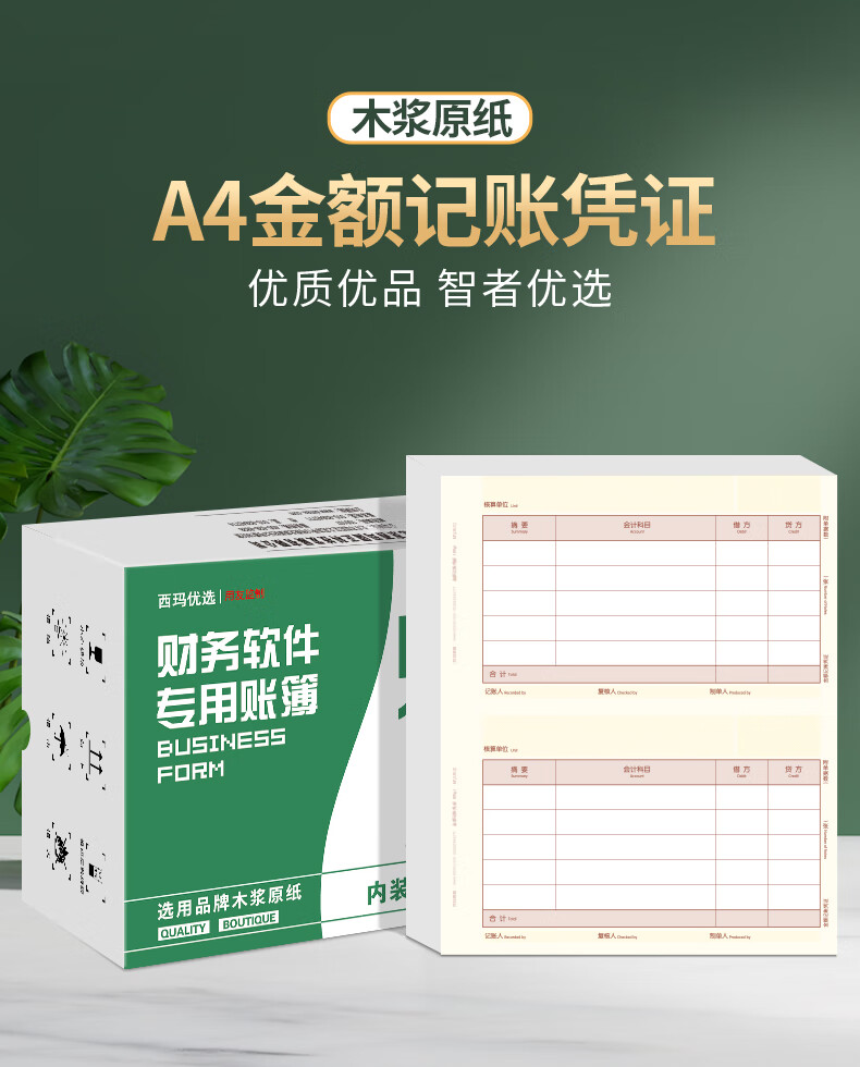 西玛(SIMAA) SKPJ101用友凭证纸A4金额记账凭证打印纸T3/T6/U8专用210*127 西玛会计记账财务办公用品凭证纸 【80g】SKPJ101记账凭证纸
